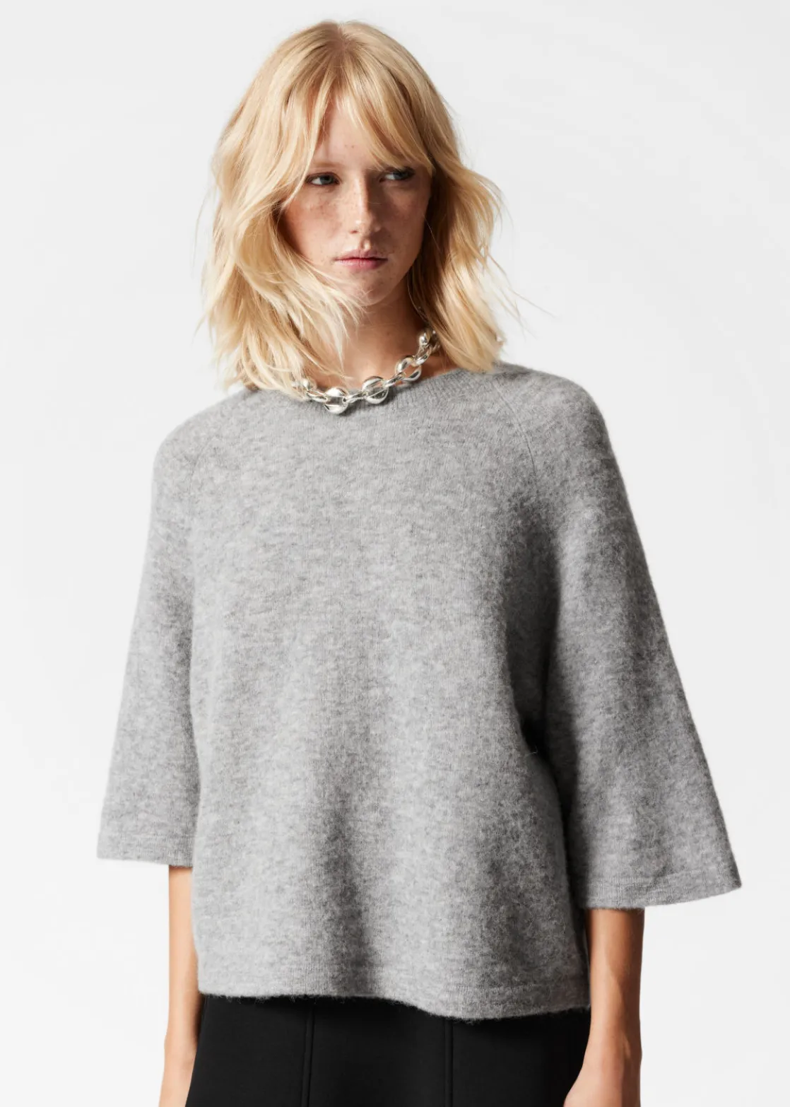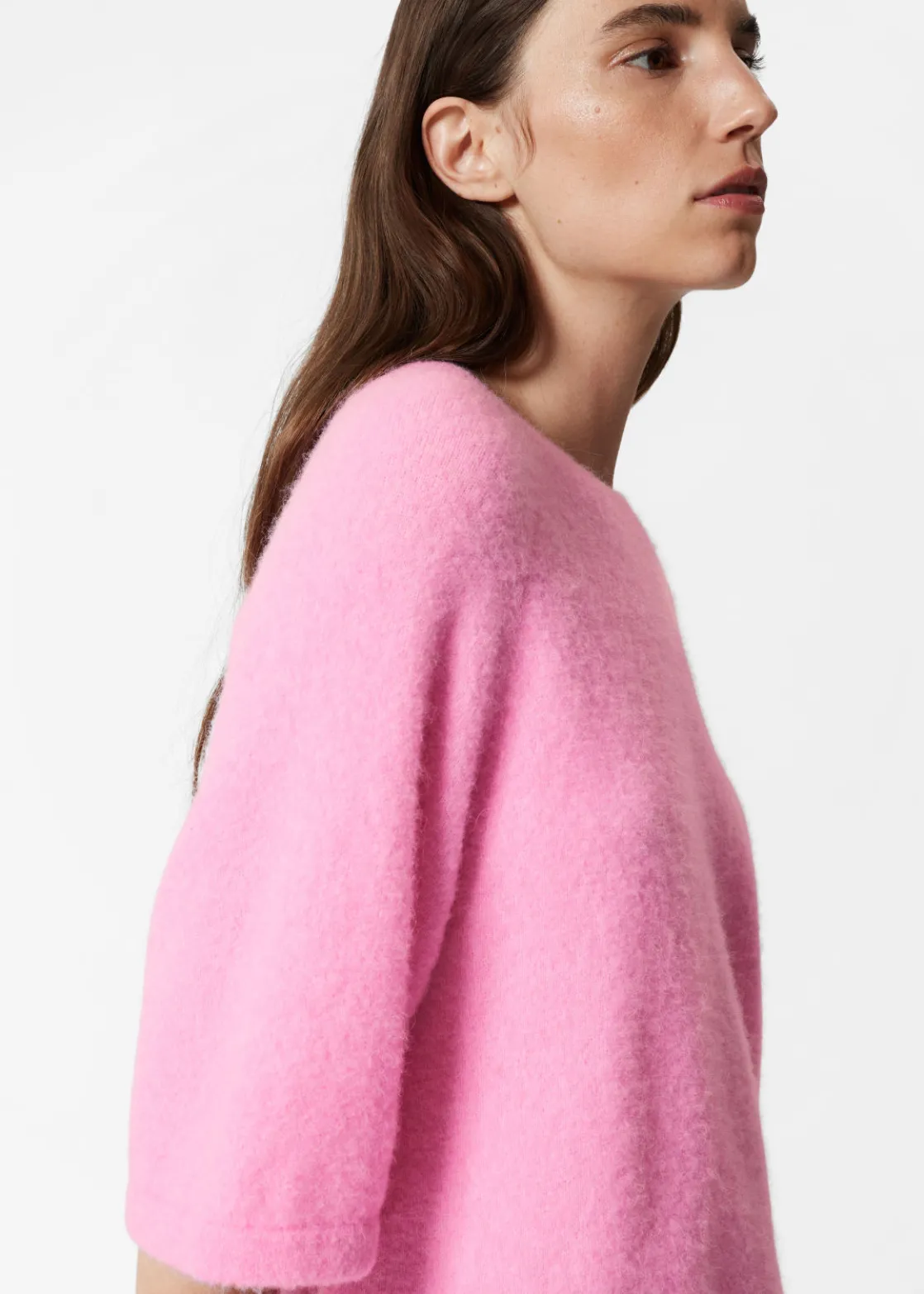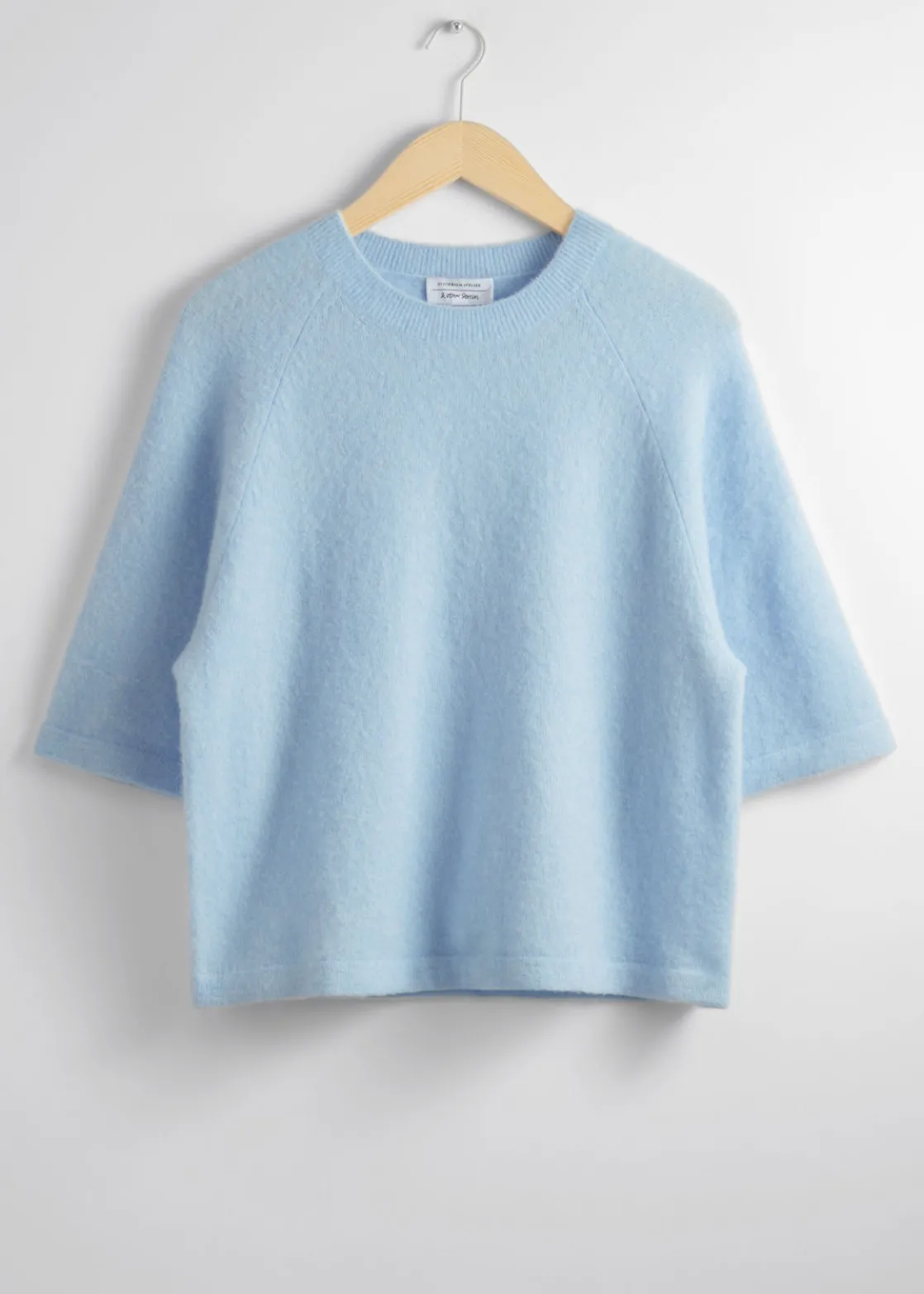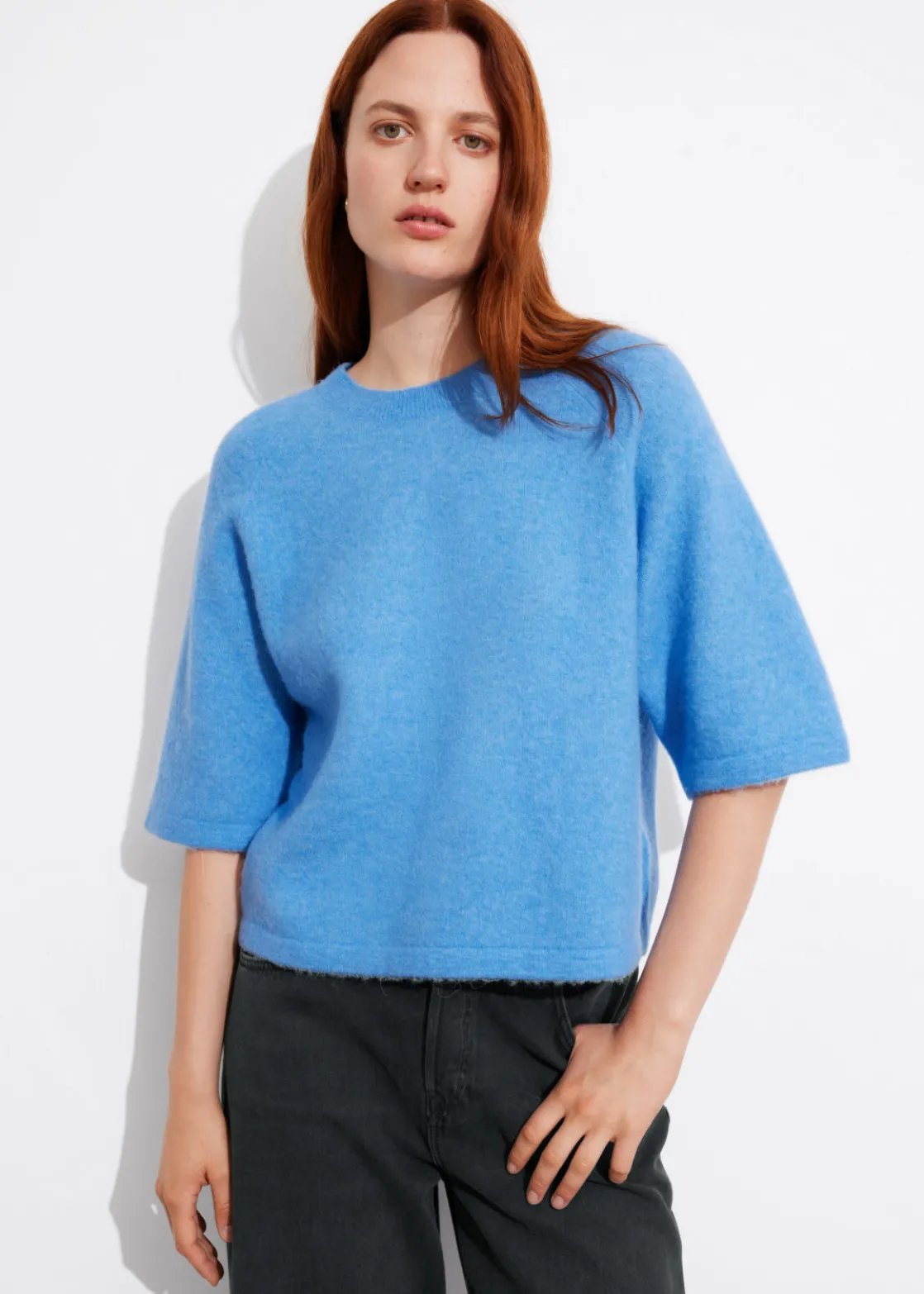 Crewneck t-shirt knitted from alpaca and merino wool.