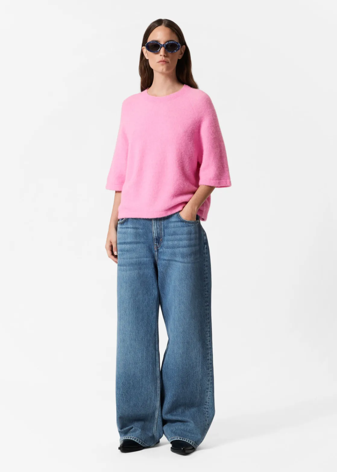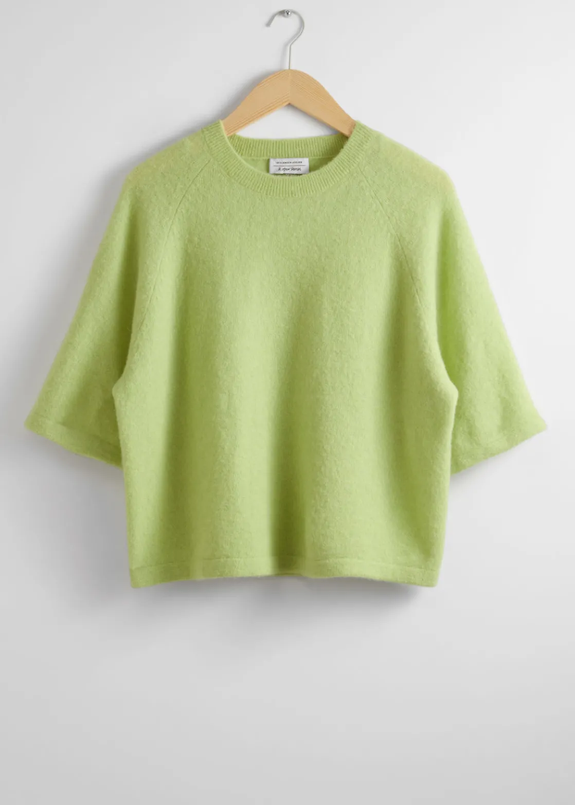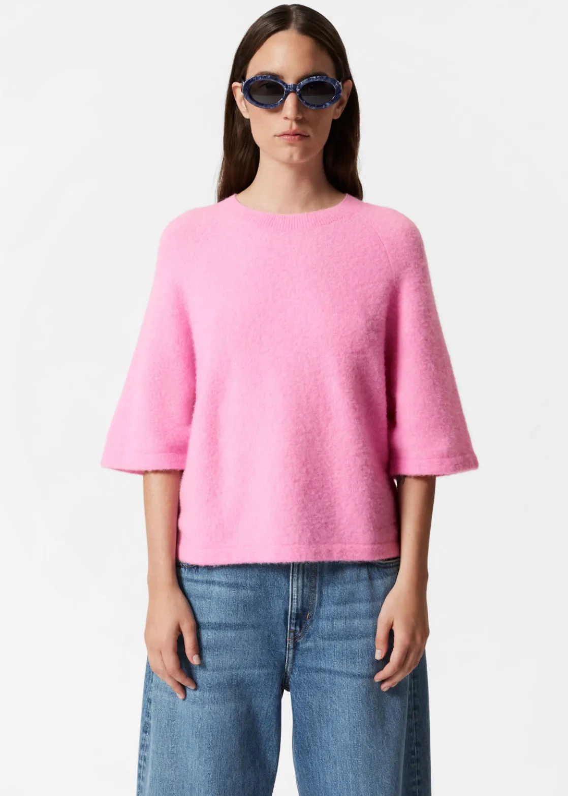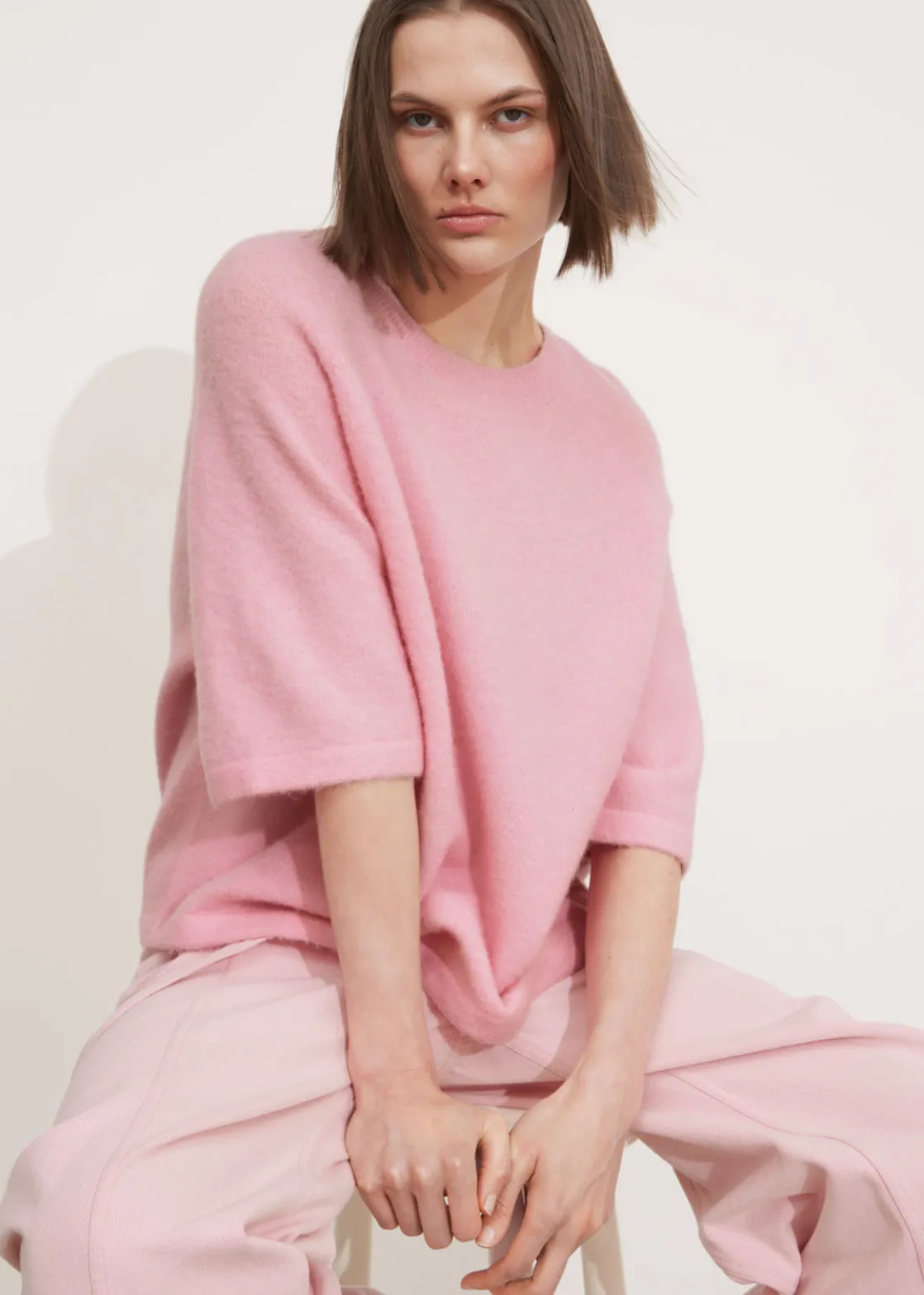 Crewneck t-shirt knitted from alpaca and merino wool.