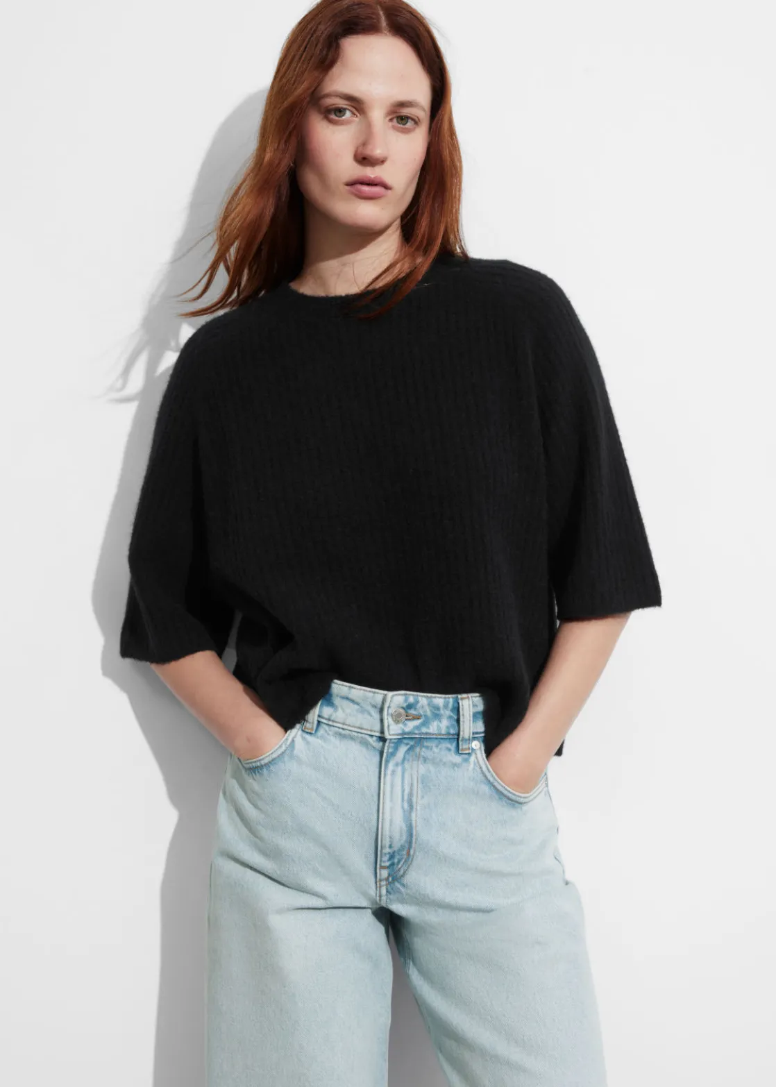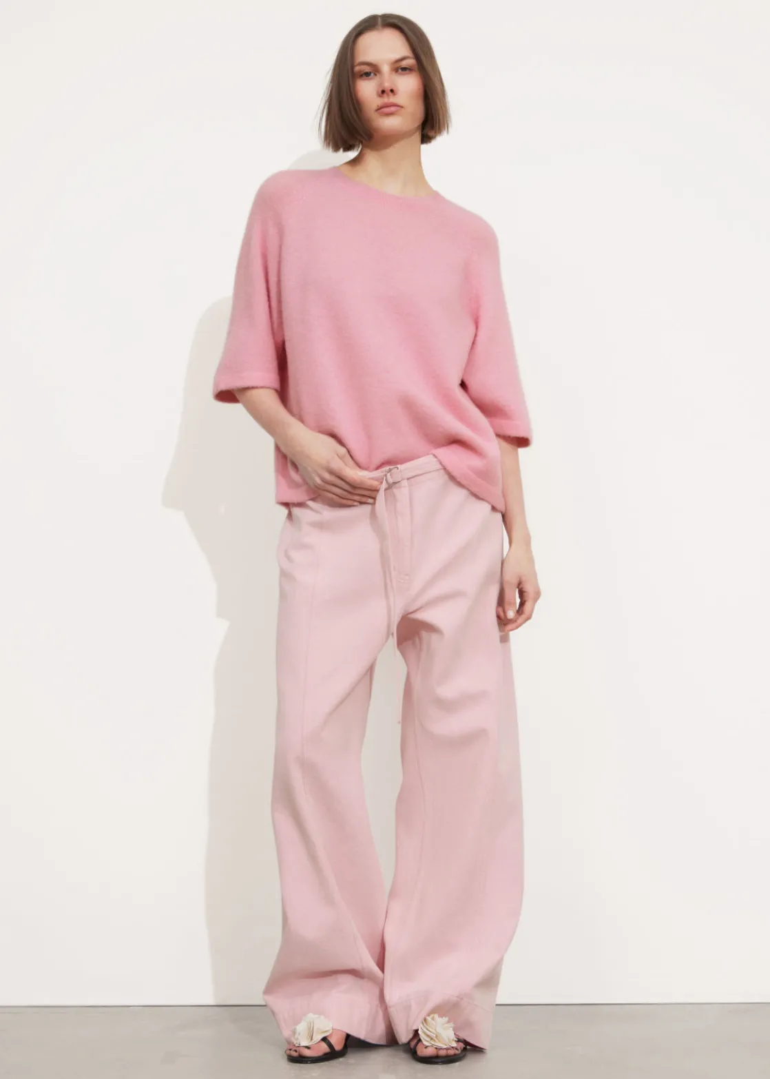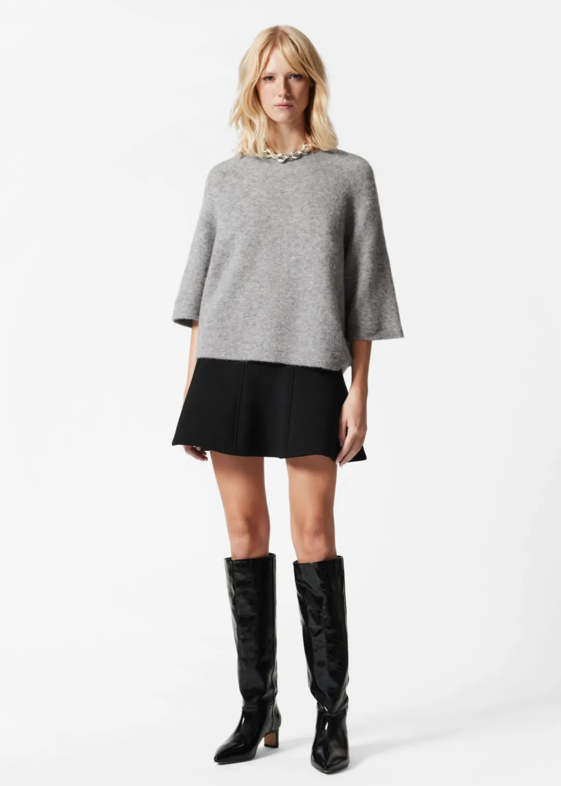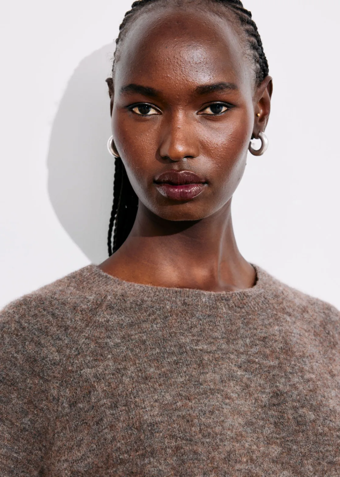 Crewneck t-shirt knitted from alpaca and merino wool.