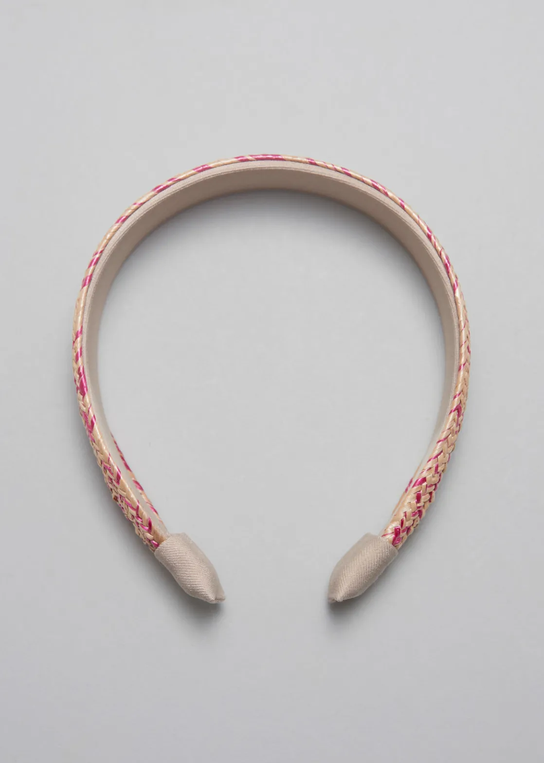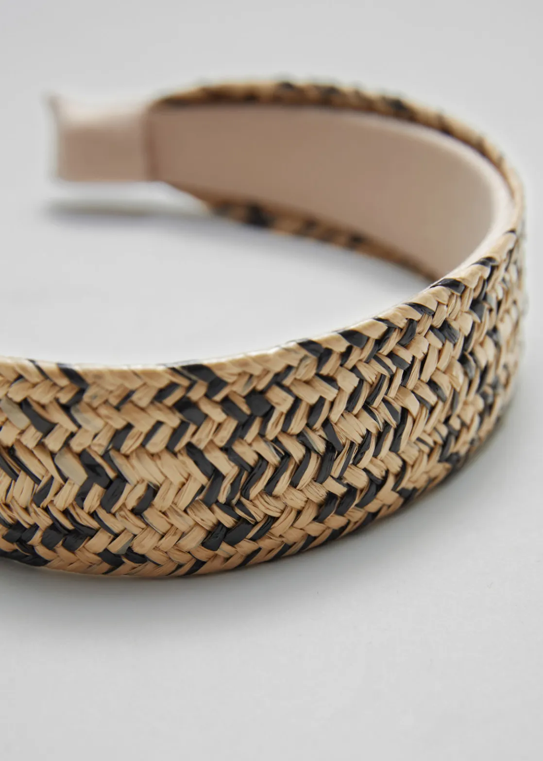 Headband with a braided, straw-inspired finish.