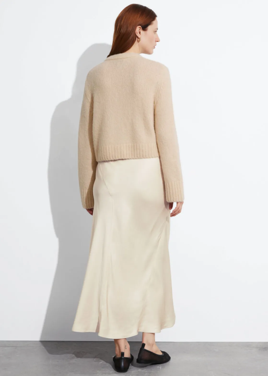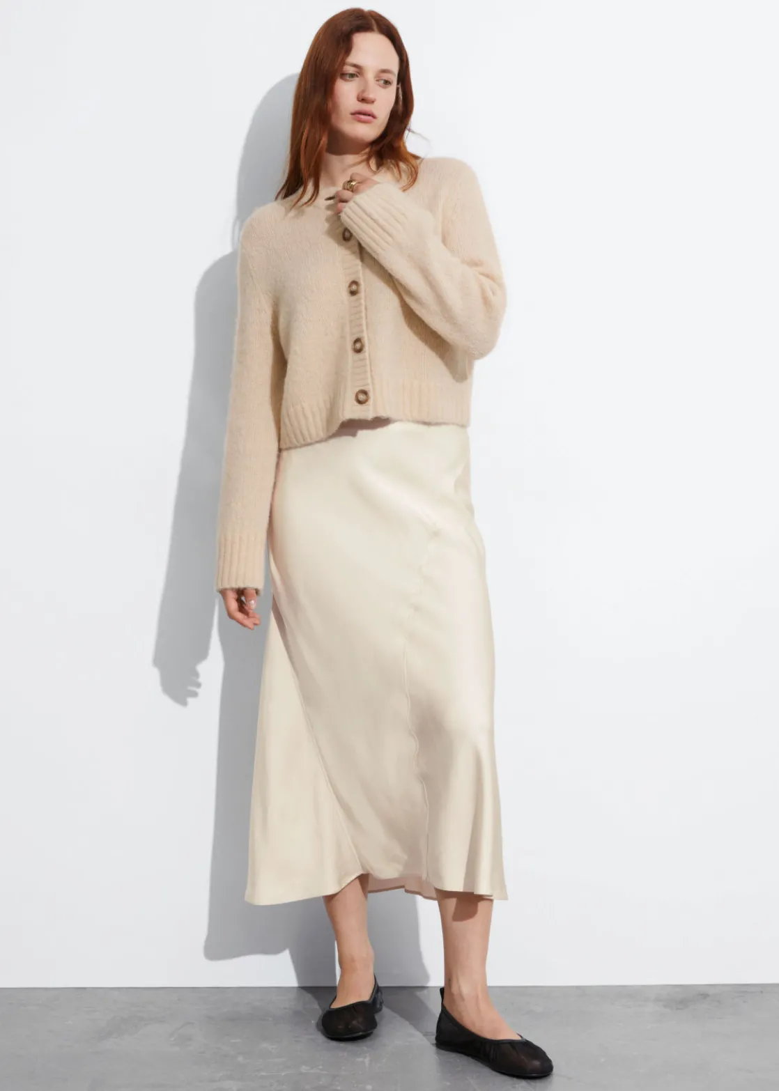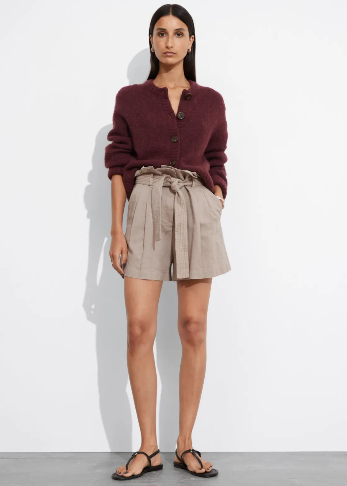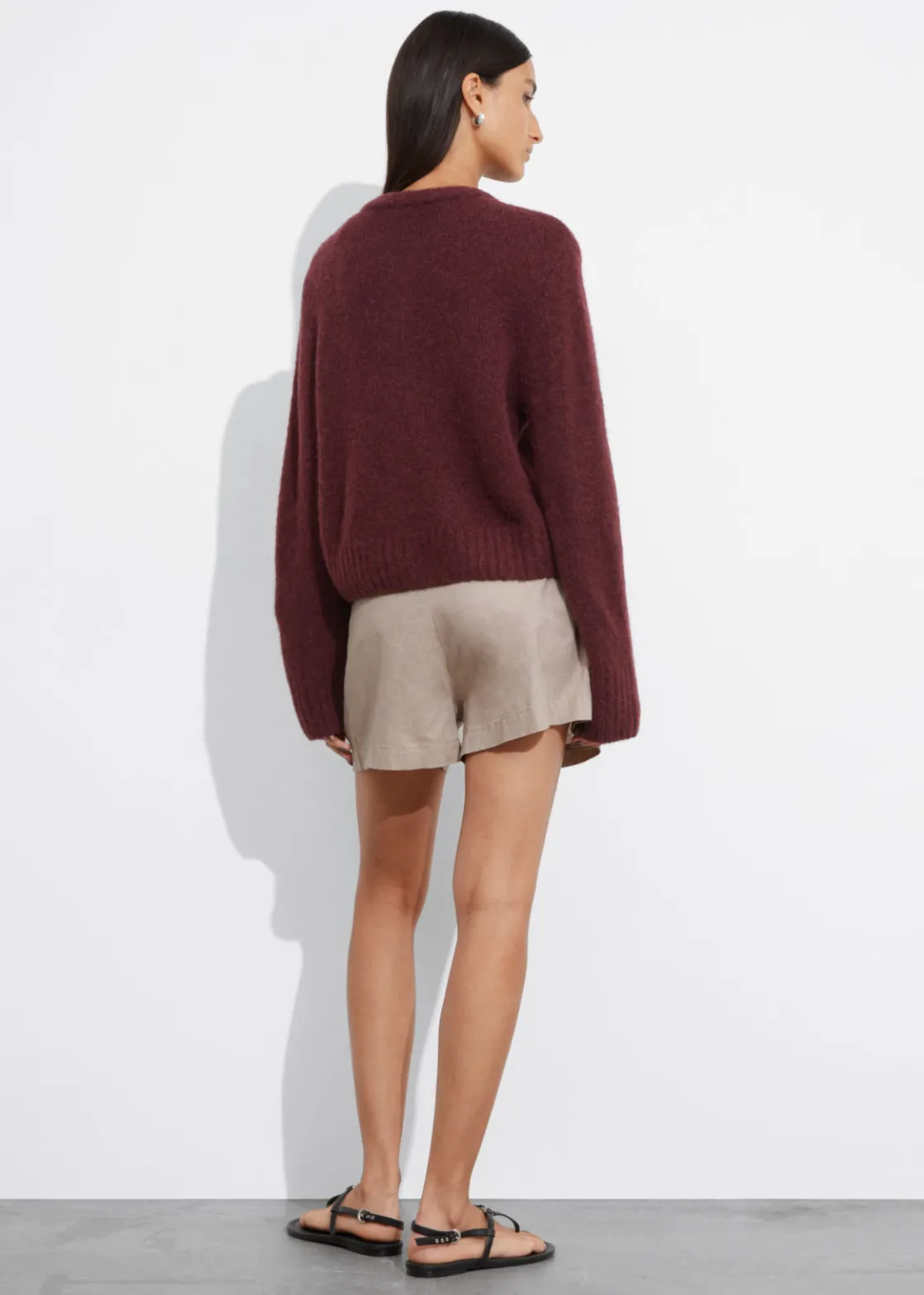 Cardigan knitted from a wool and alpaca blend. Traced with five button closures.