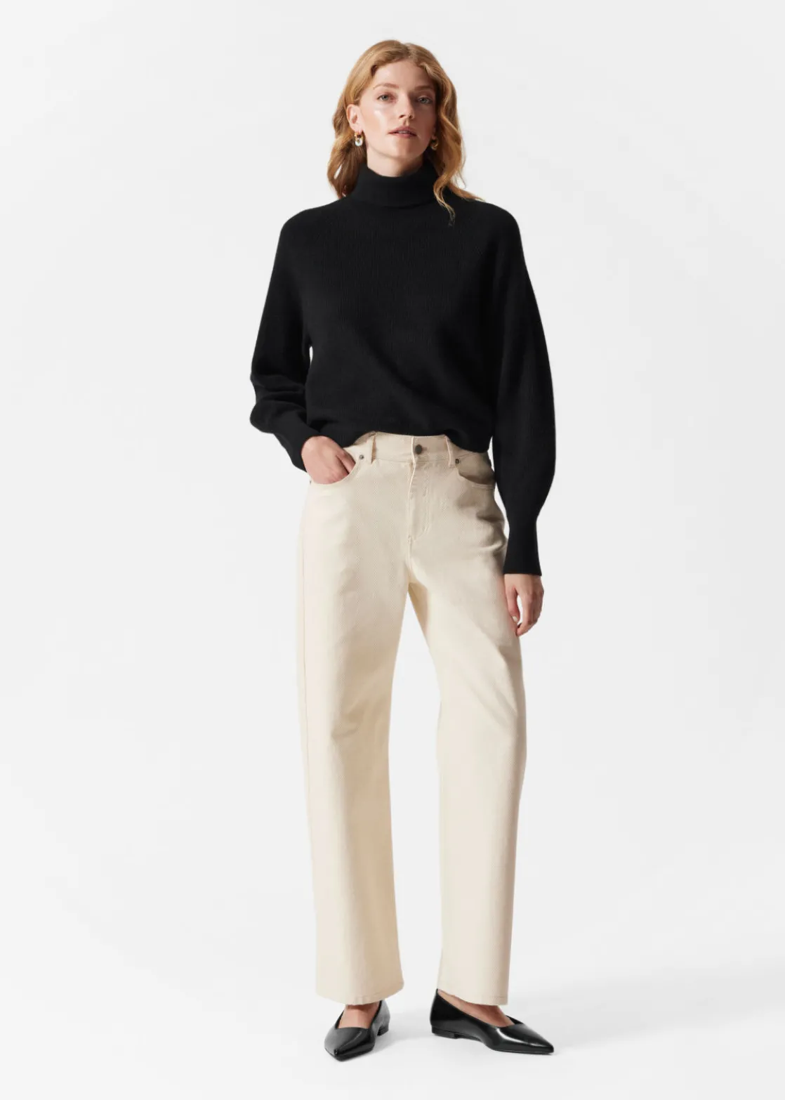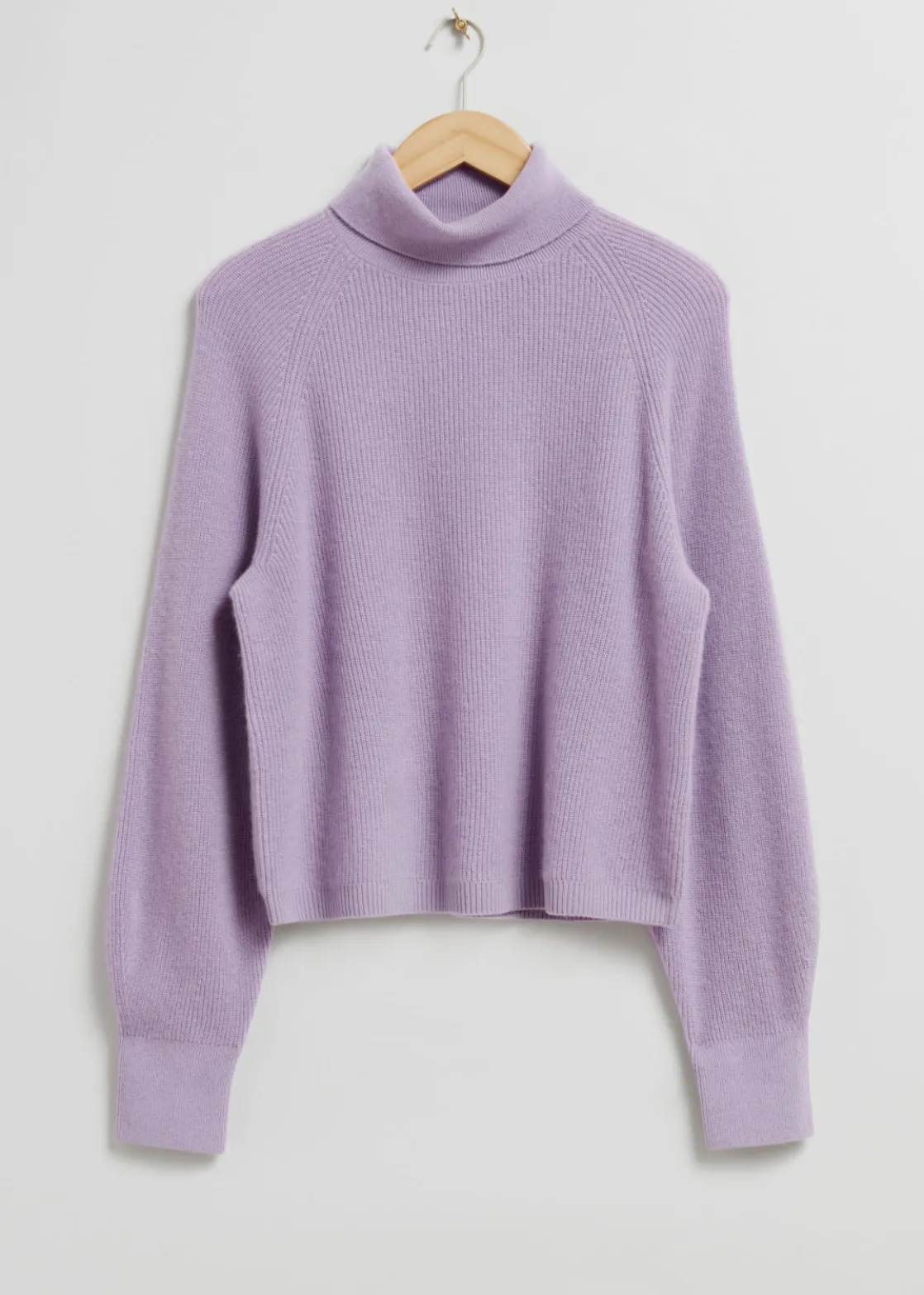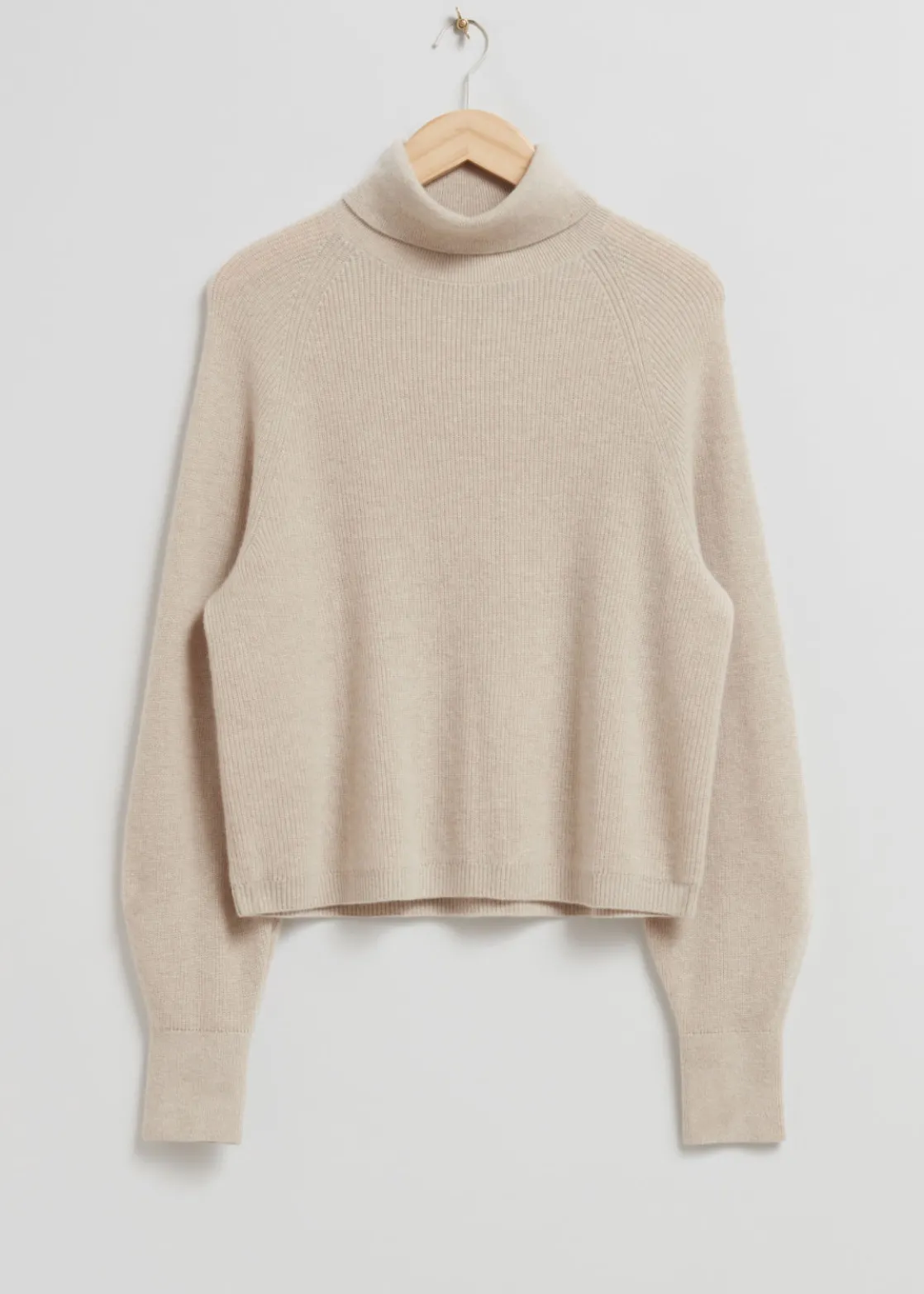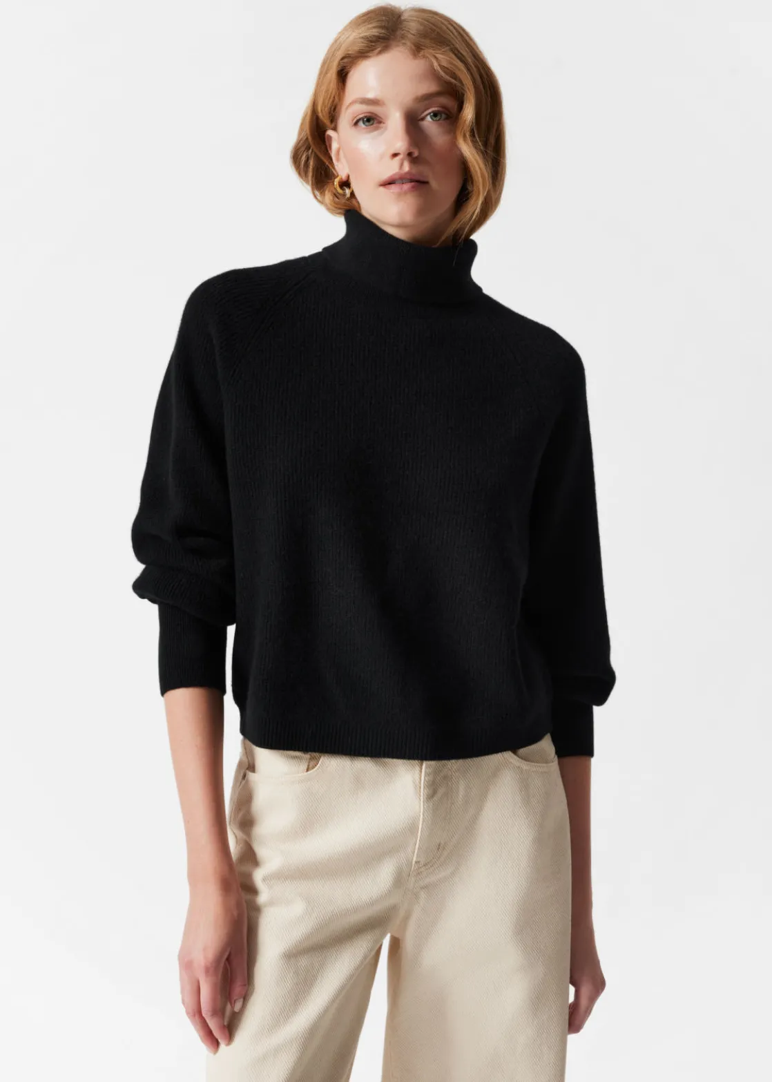 Cashmere turtleneck sweater with a boxy silhouette and long sleeves.