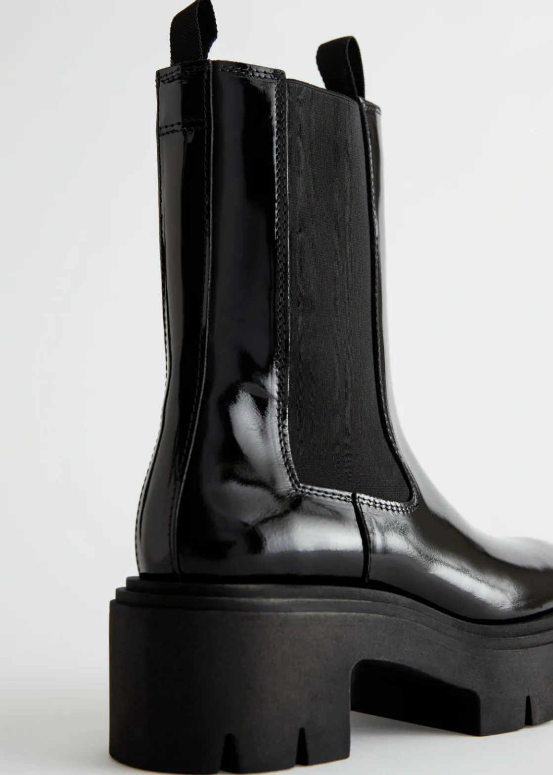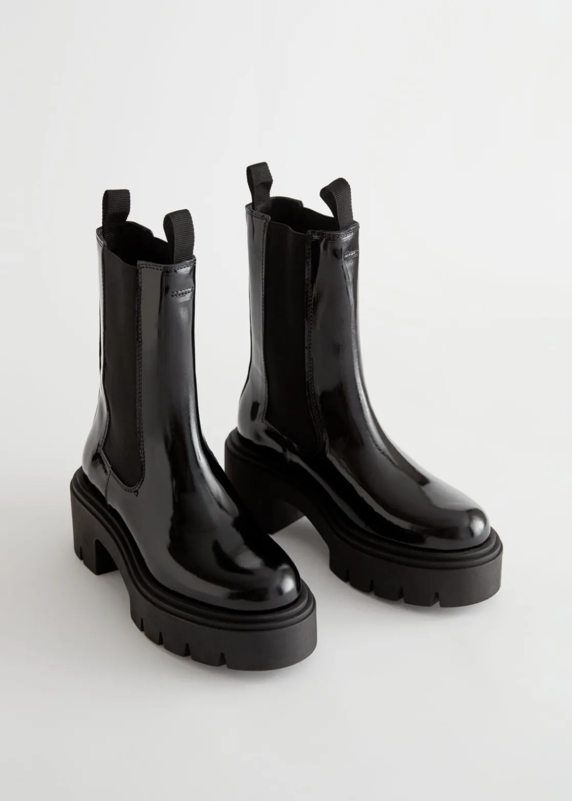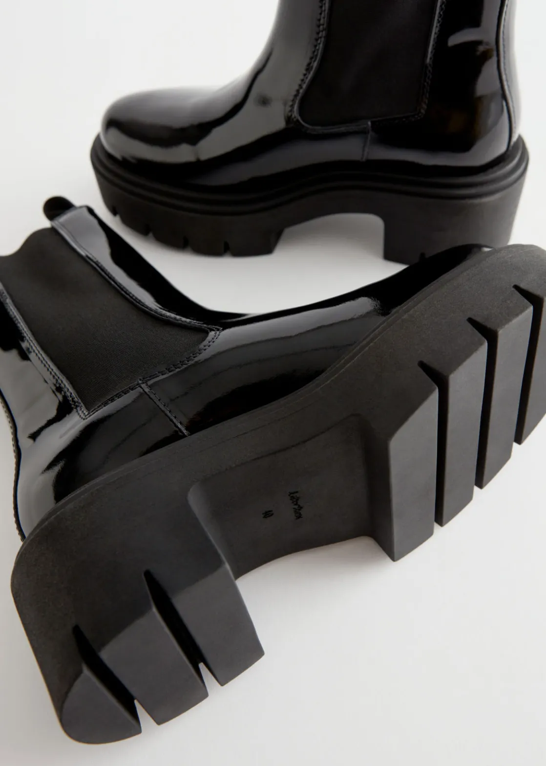Chelsea leather boots with a chunky platform and elasticated side panels.