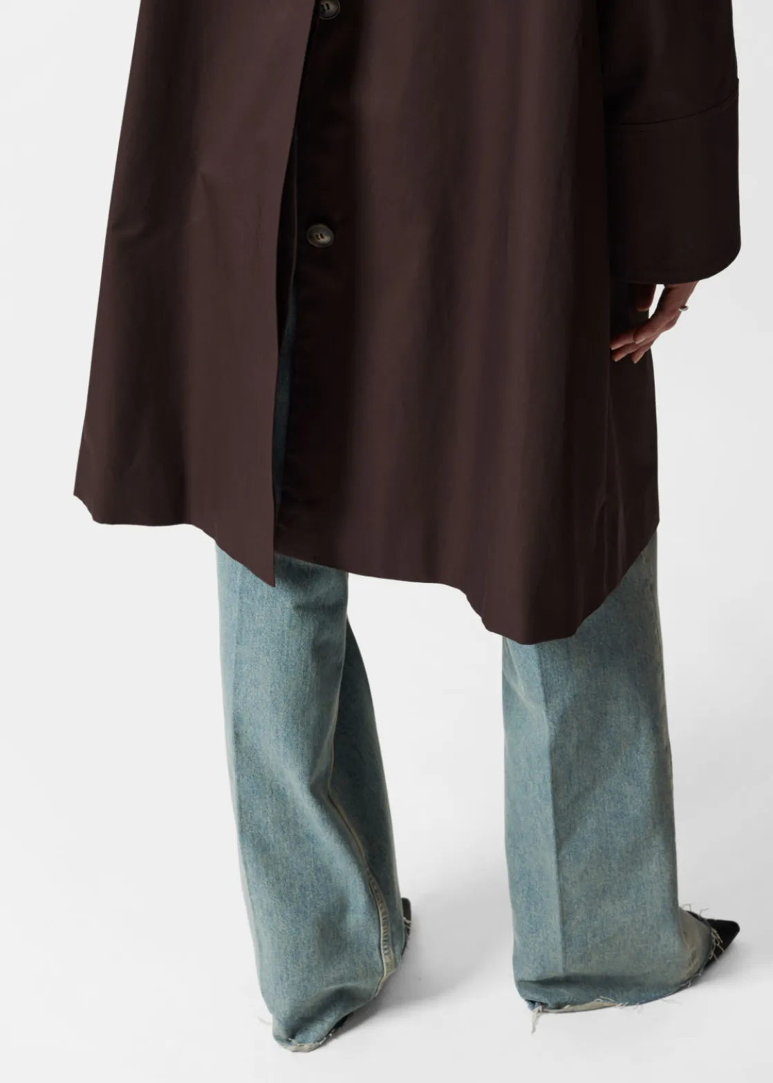 Car coat featuring a clean finish with a concealed button placket.