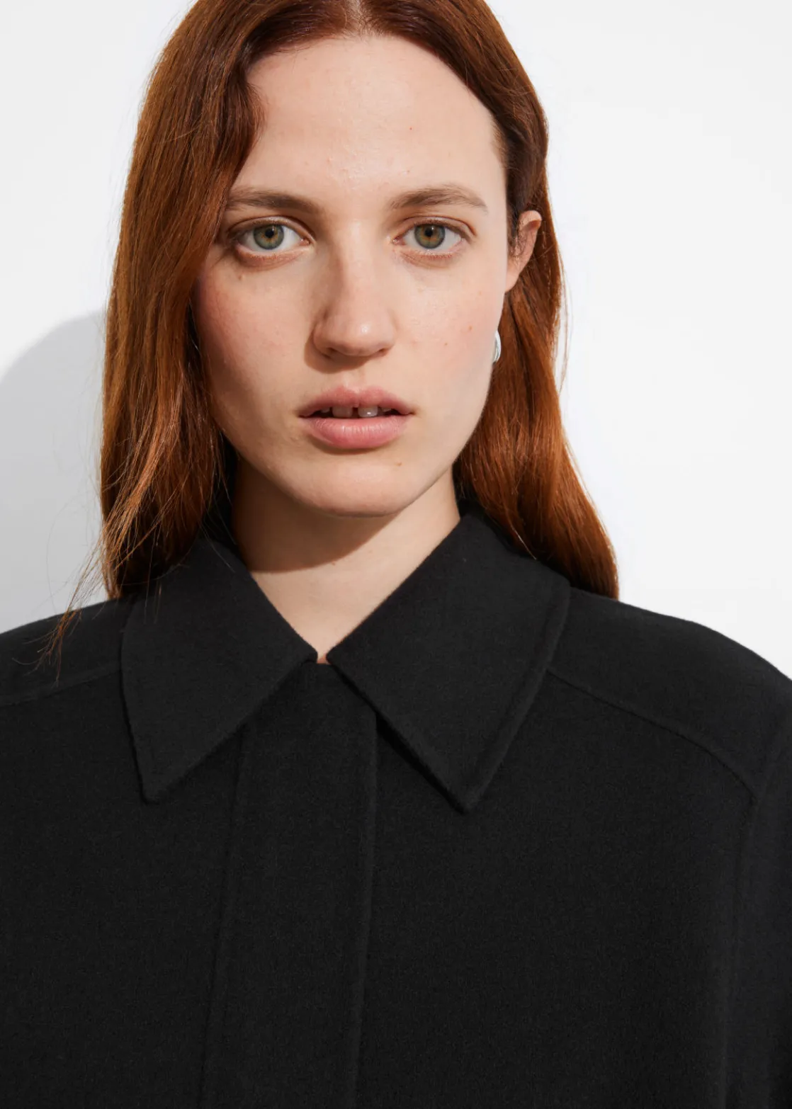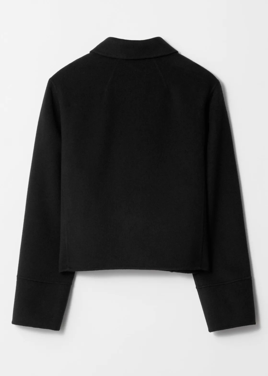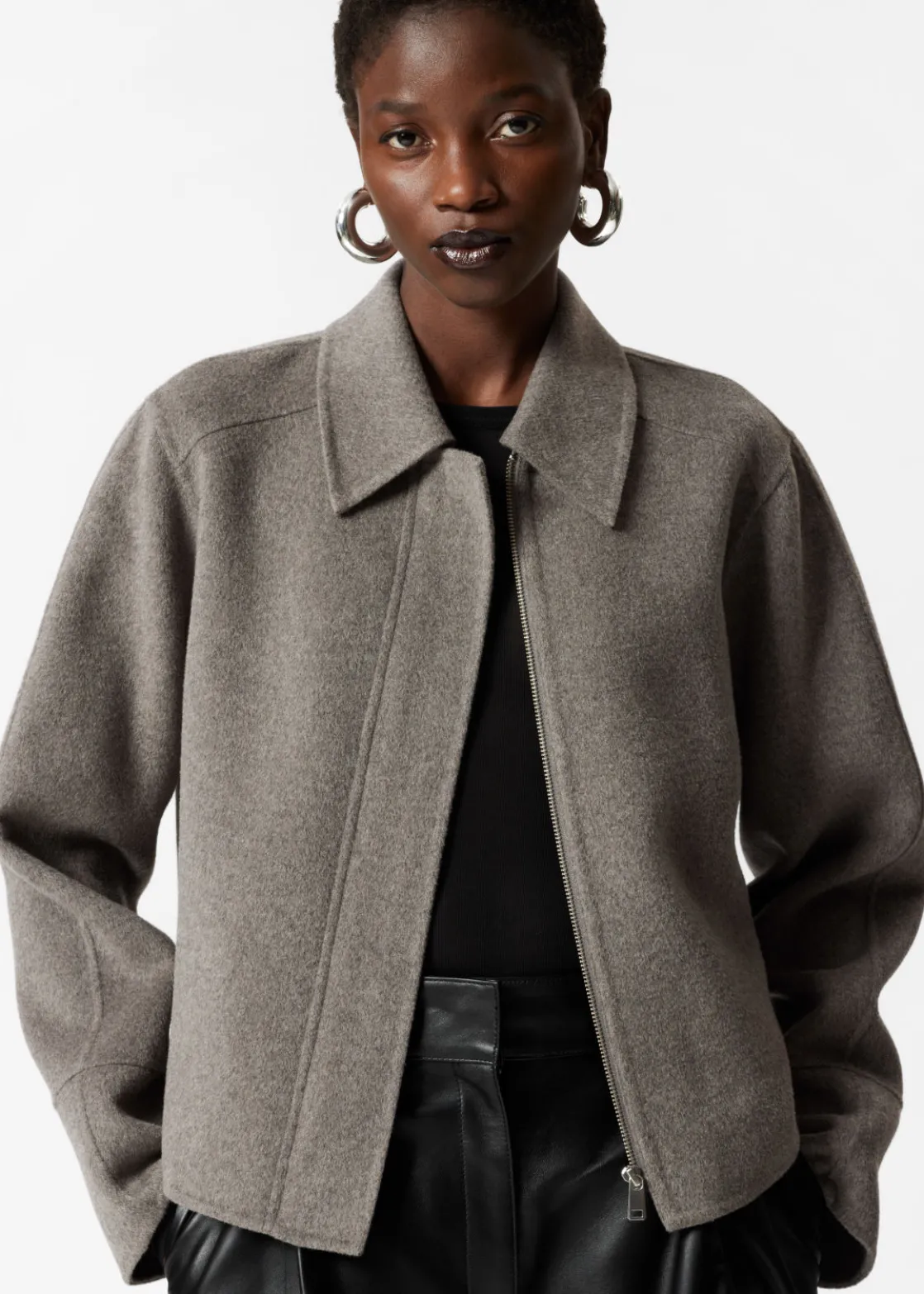 Jacket made from a wool-blend, fastened with a concealed zipper closure.