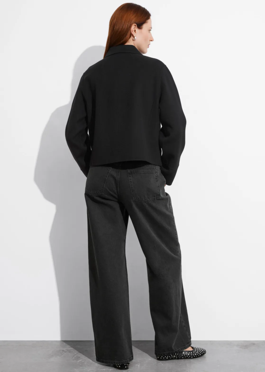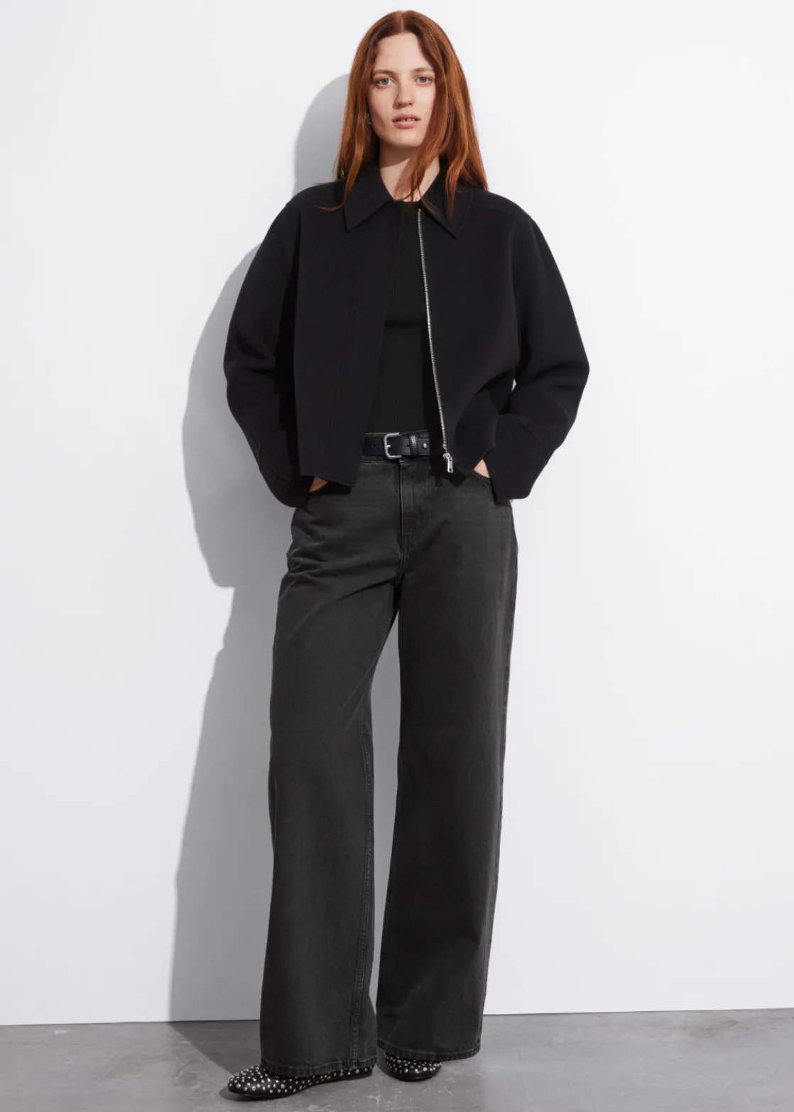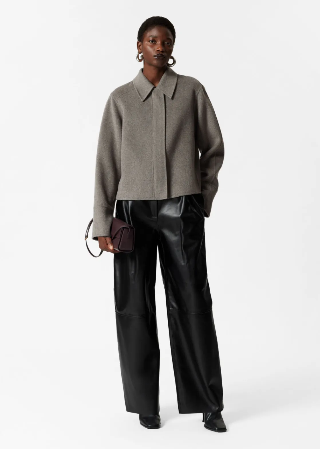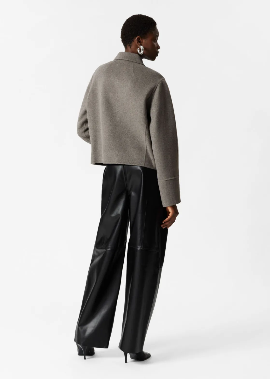 Jacket made from a wool-blend, fastened with a concealed zipper closure.