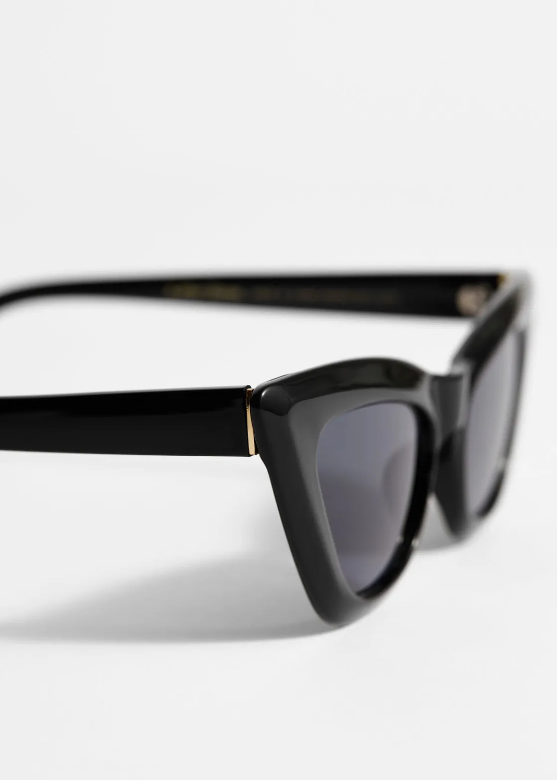 Cat-eye sunglasses are an invariable classic. These have black lenses that match the glossy angular frames.