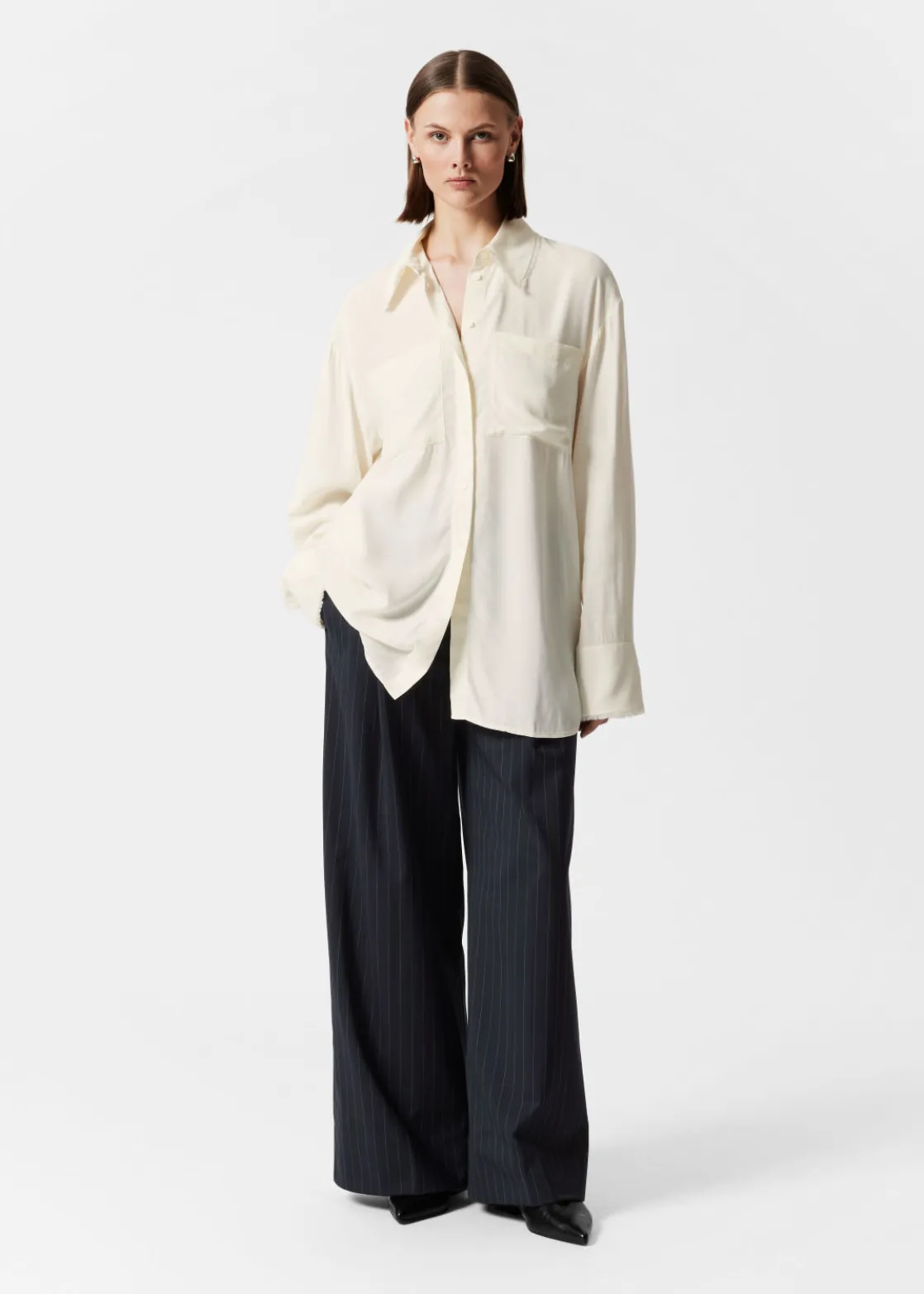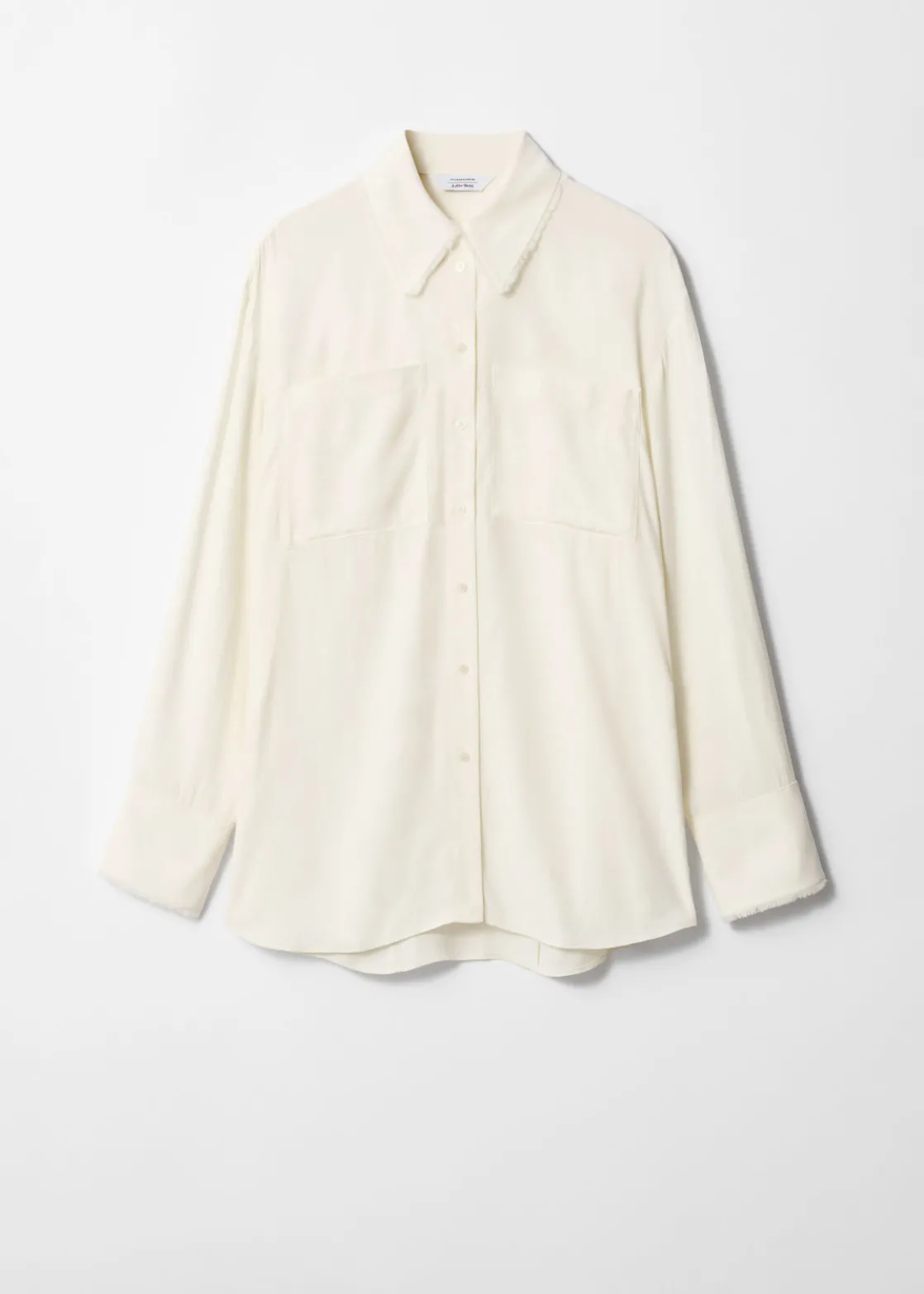 Long-sleeve shirt designed with duo chest patch pockets and frayed detailing at the collar and cuffs.