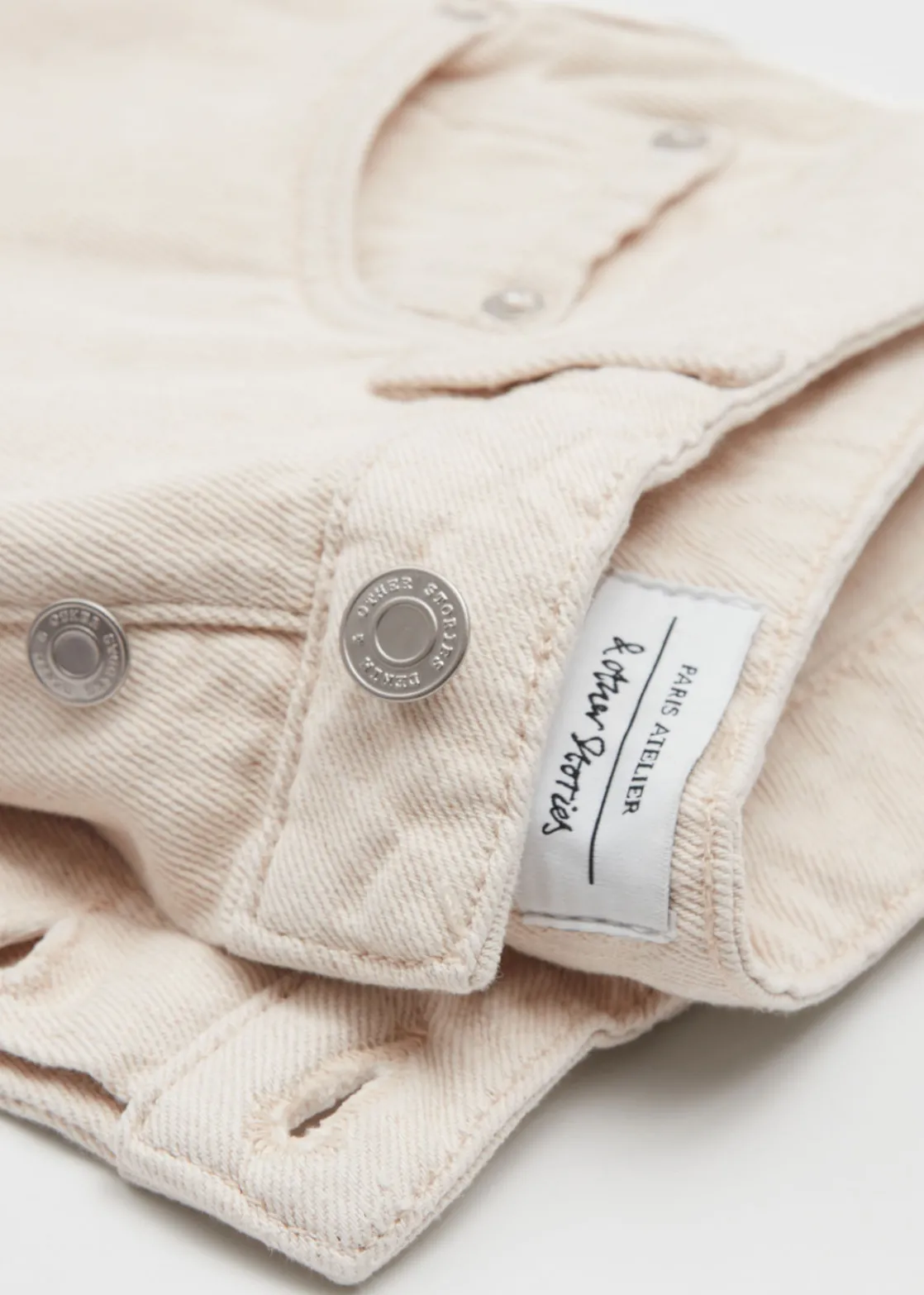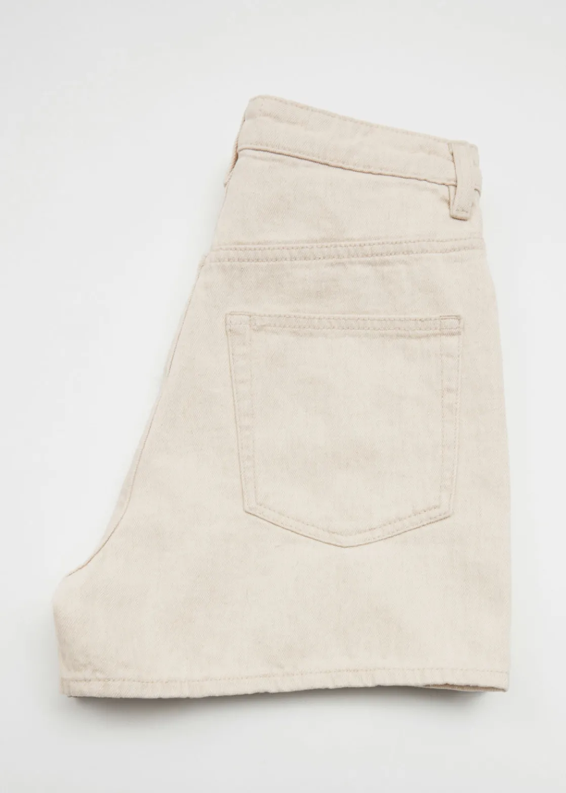 Denim shorts offering a high waist and a classic 5-pocket jeans silhouette.