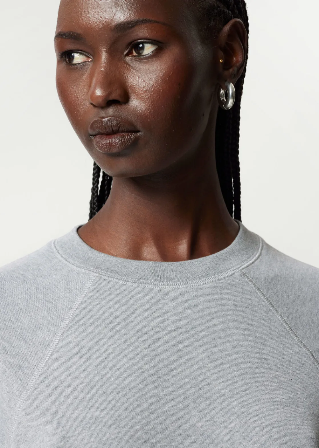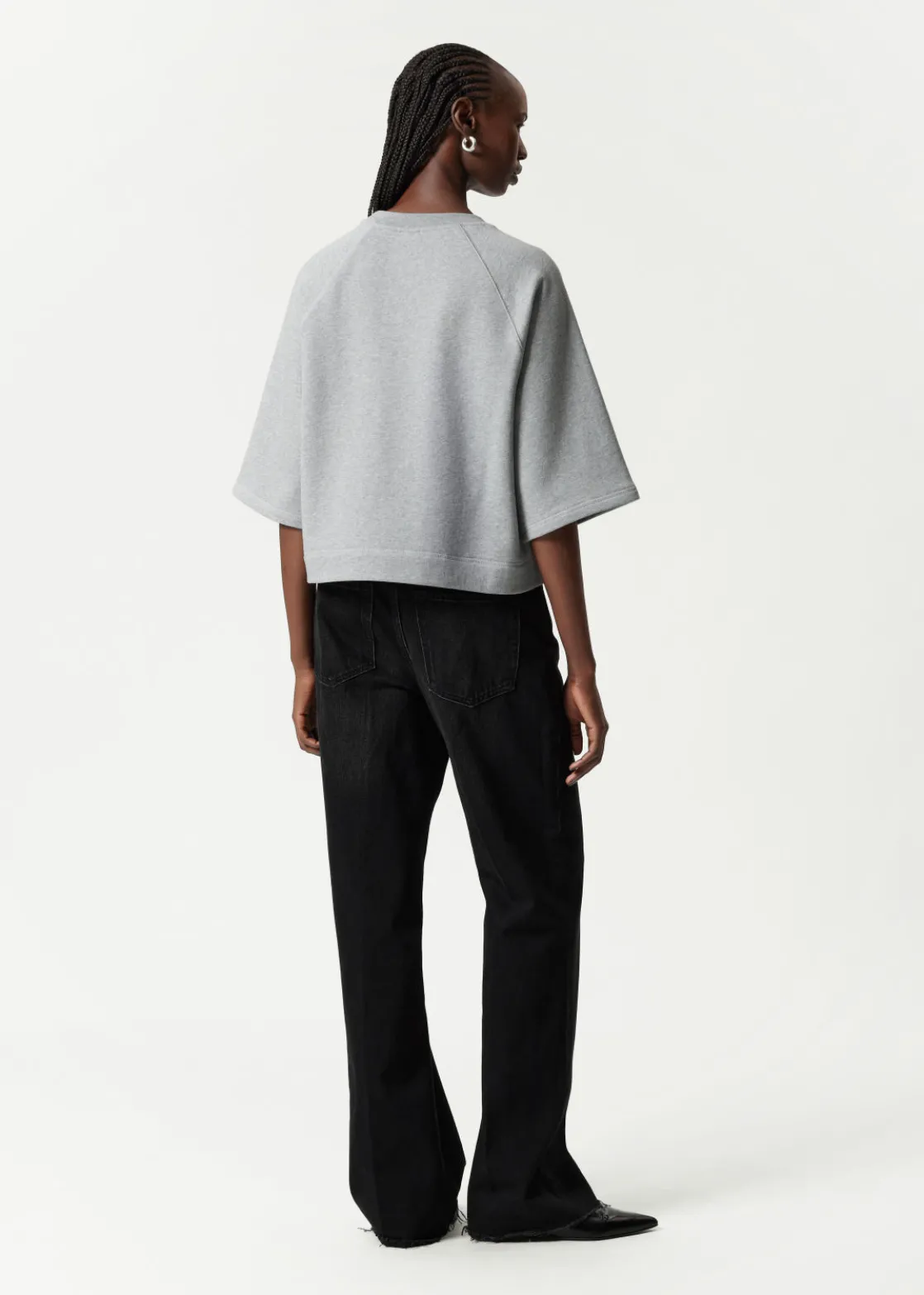 Cotton jersey sweater featuring three-quarter raglan sleeves.