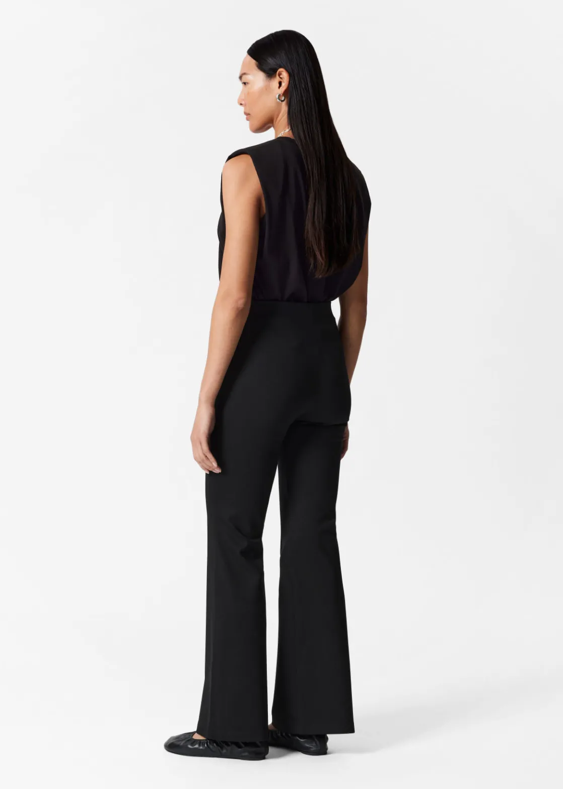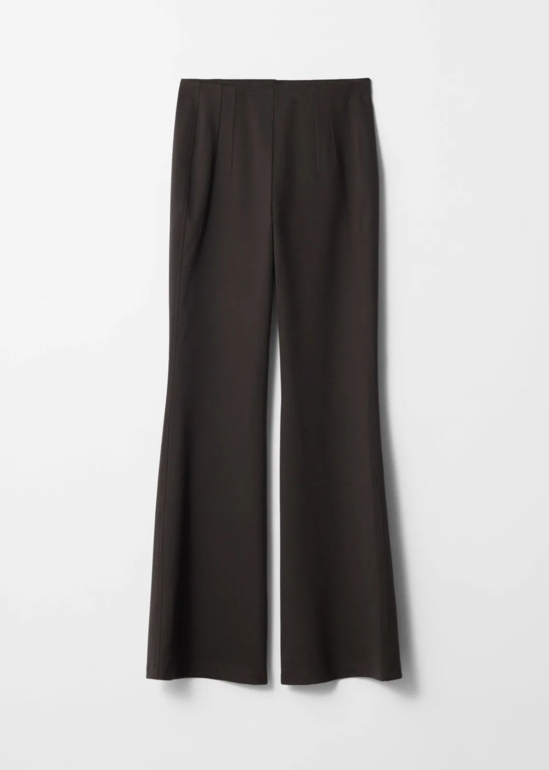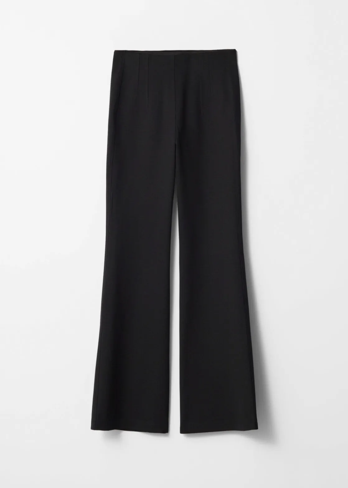 Trousers with a kick-flare leg. Finished with a high, elasticated waistline.