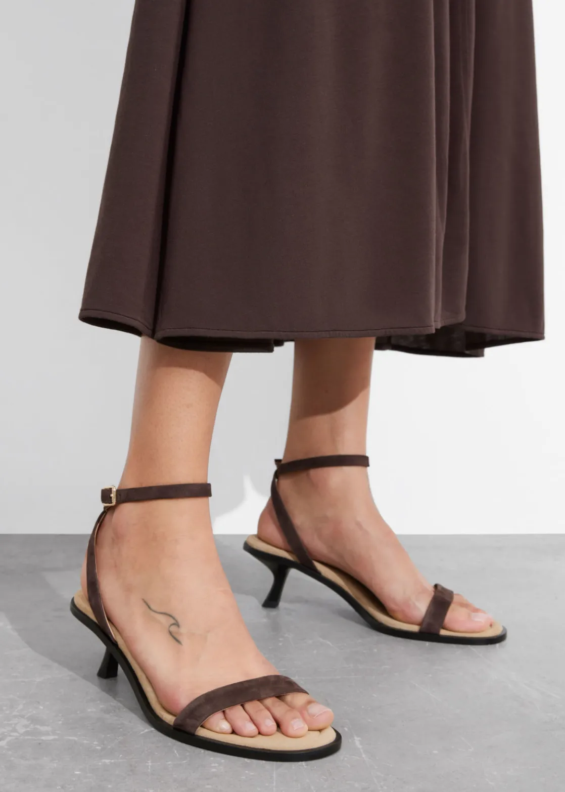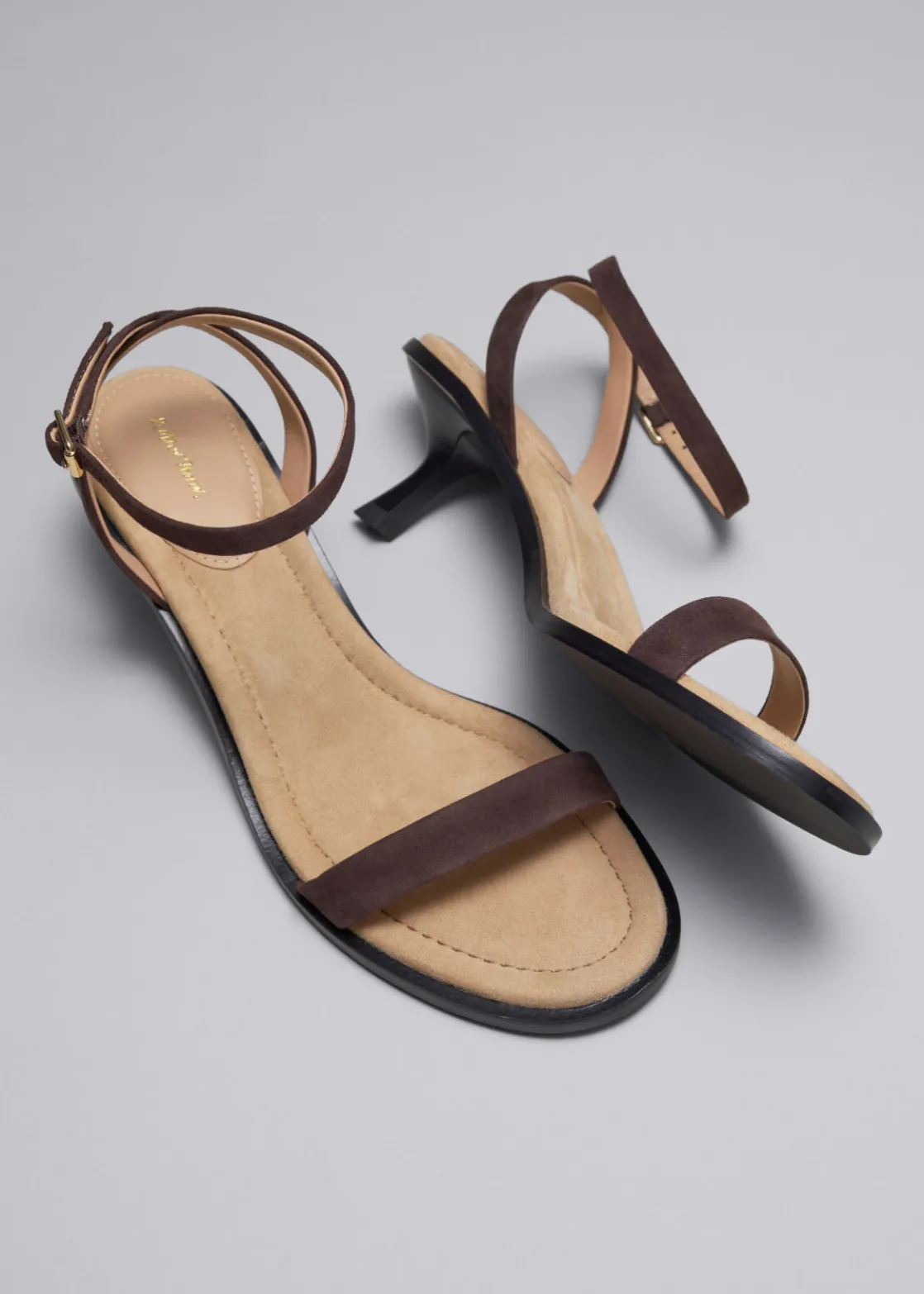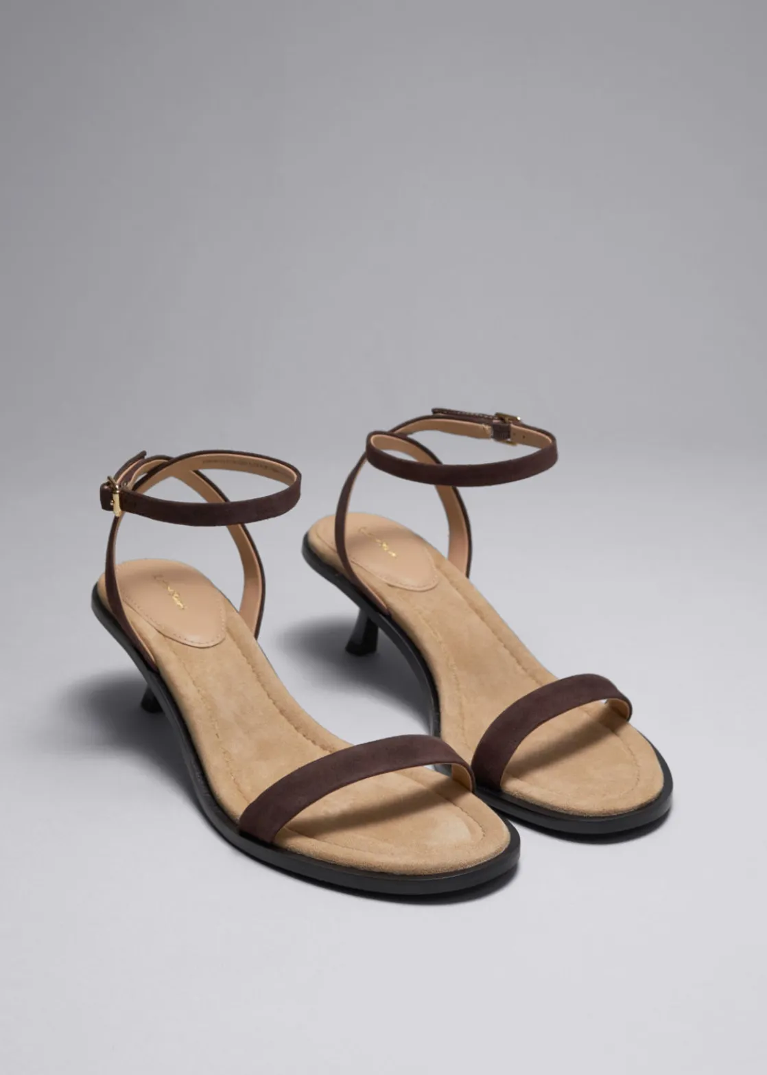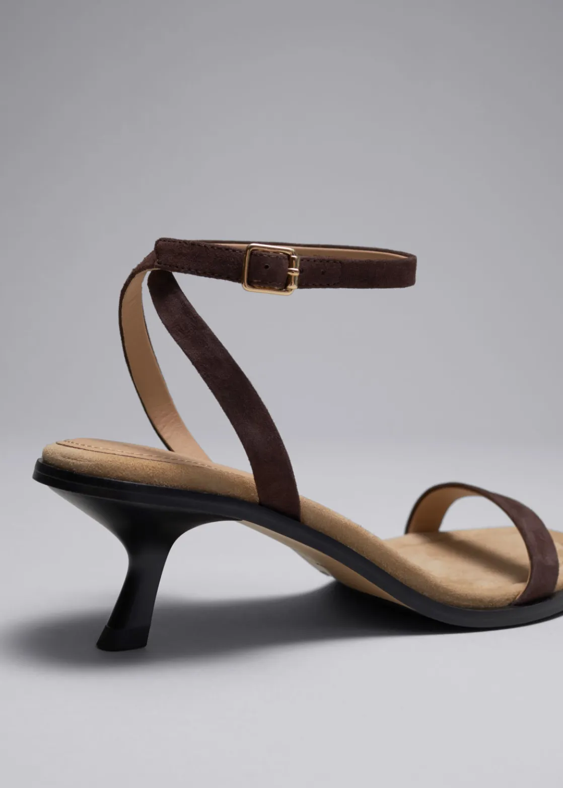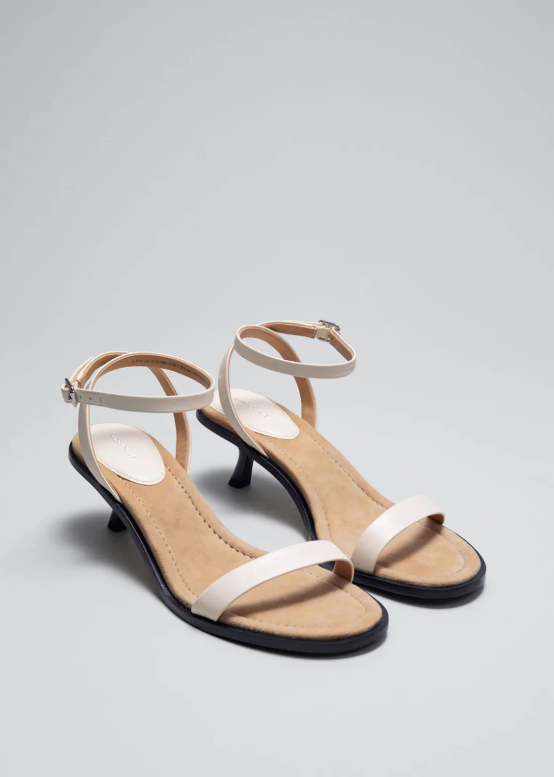 These sandals are crafted from leather and have rounded toes contrasted by geometric curved kitten heels and slim buckle-fastening straps. Finished with comfortably padded insole.
