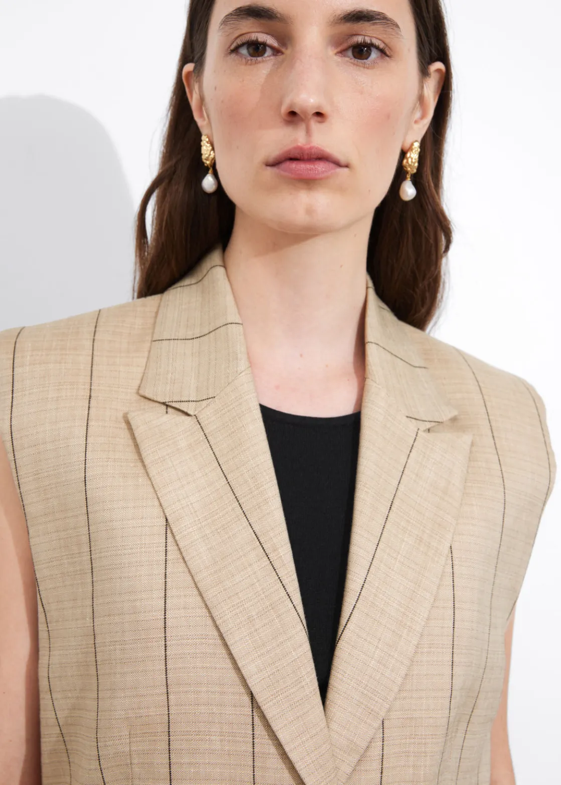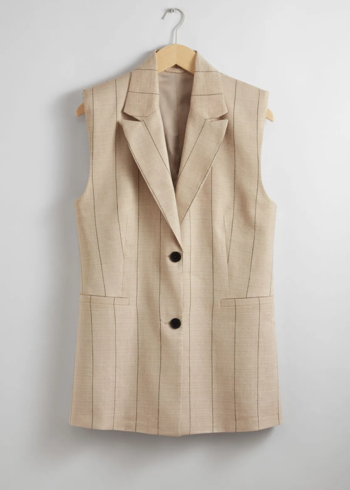 Linen-blend vest featuring a tailored, blazer-inspired finish with padded shoulders.