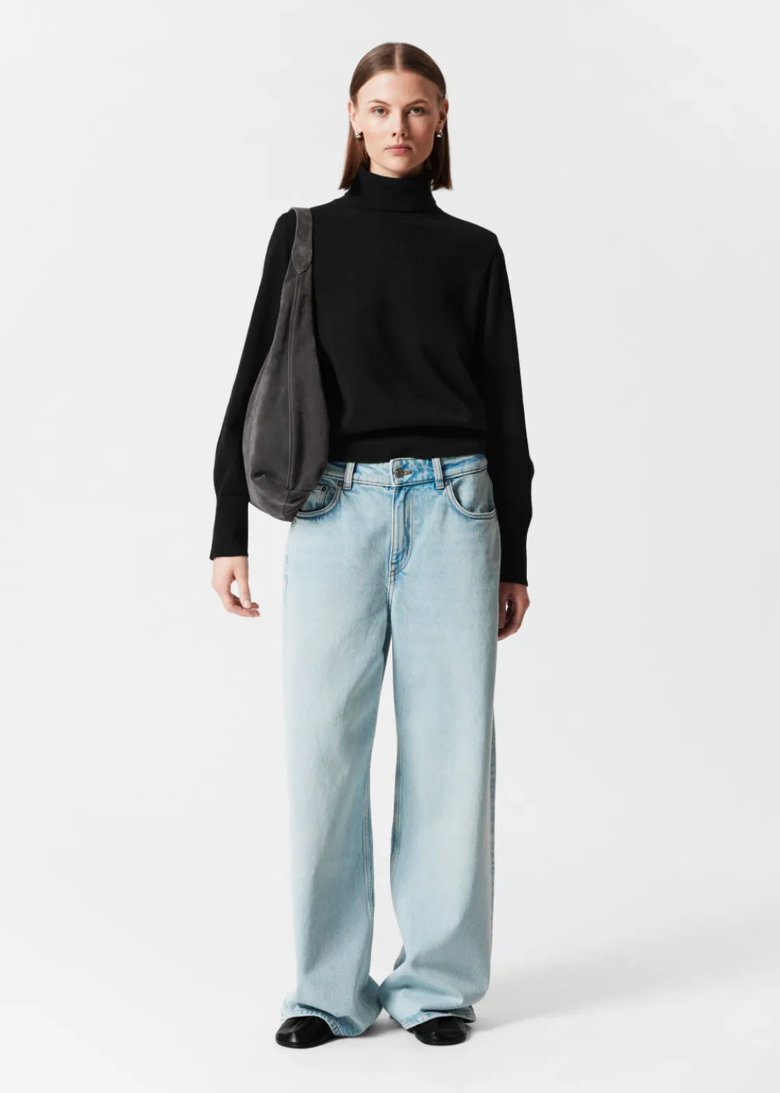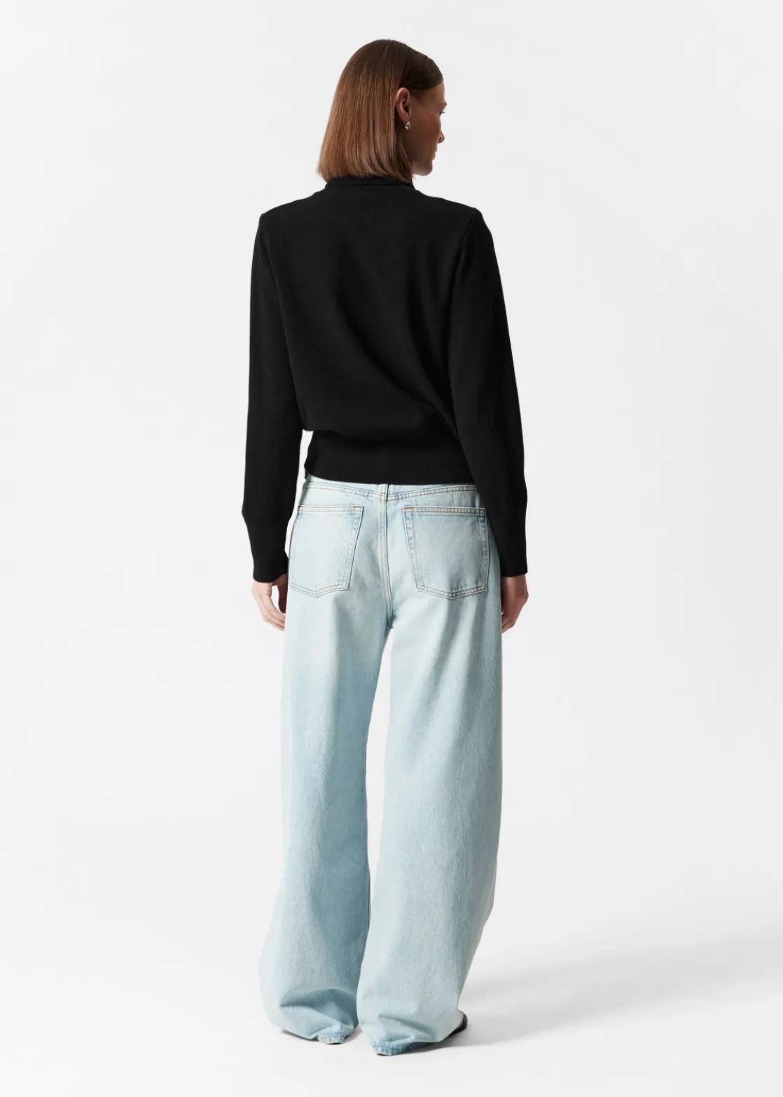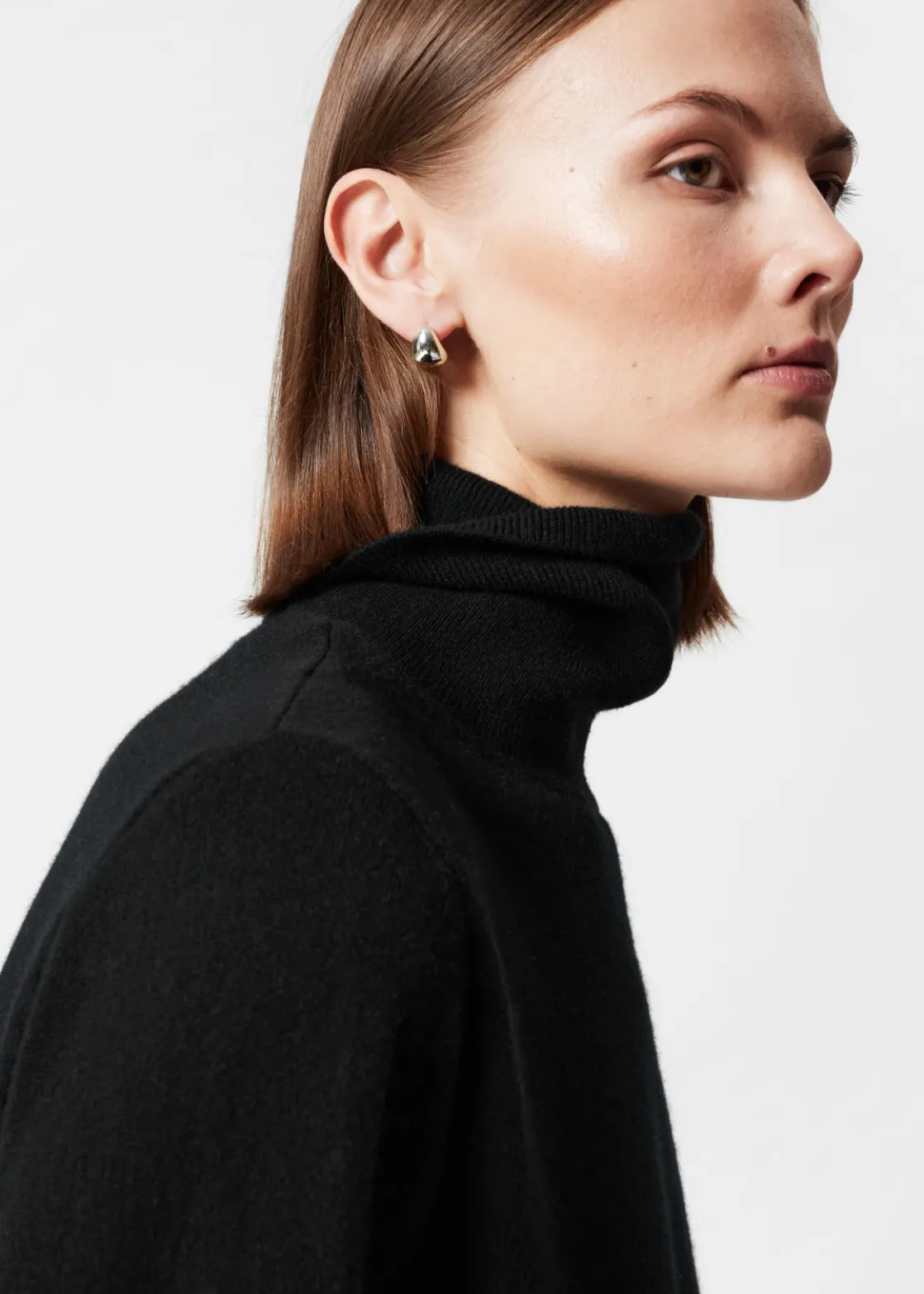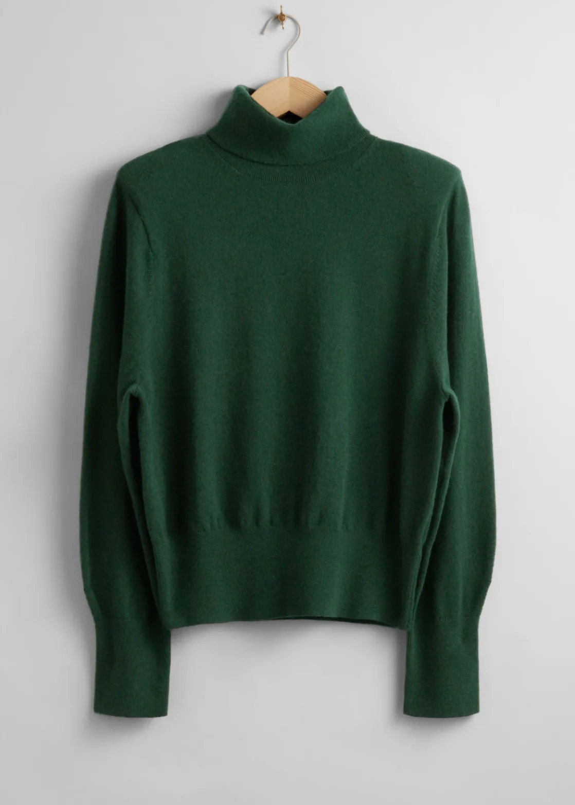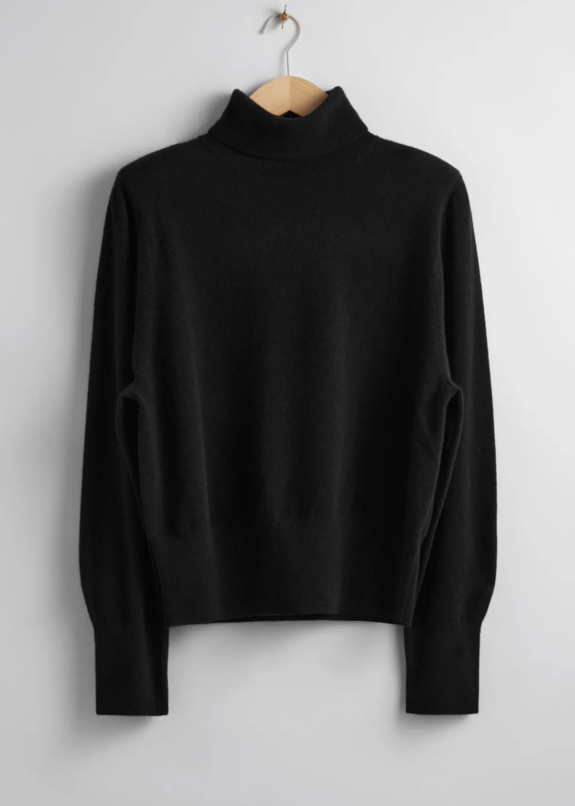 Turtleneck sweater knitted from merino wool. Finished with padded shoulders.