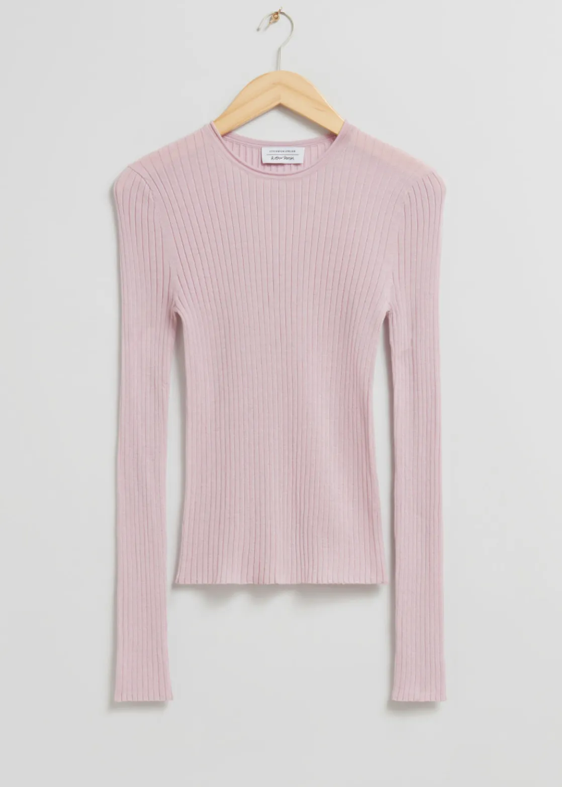 Merino wool rib top designed with a round-cut neckline. Cut in a flattering form-fitting silhouette.