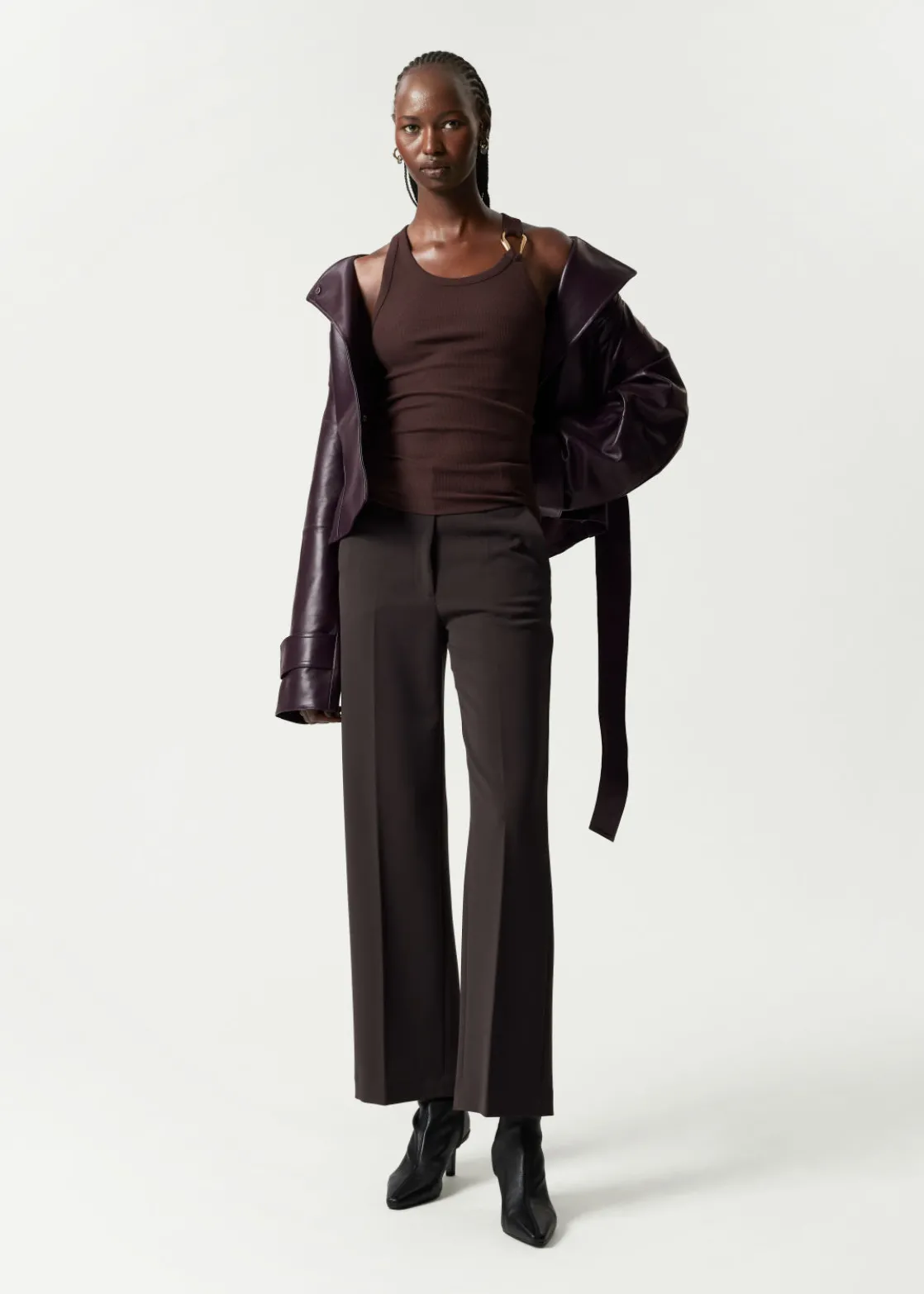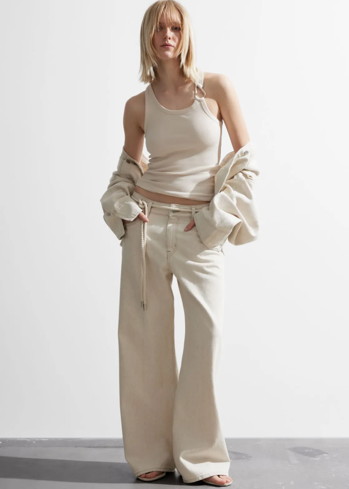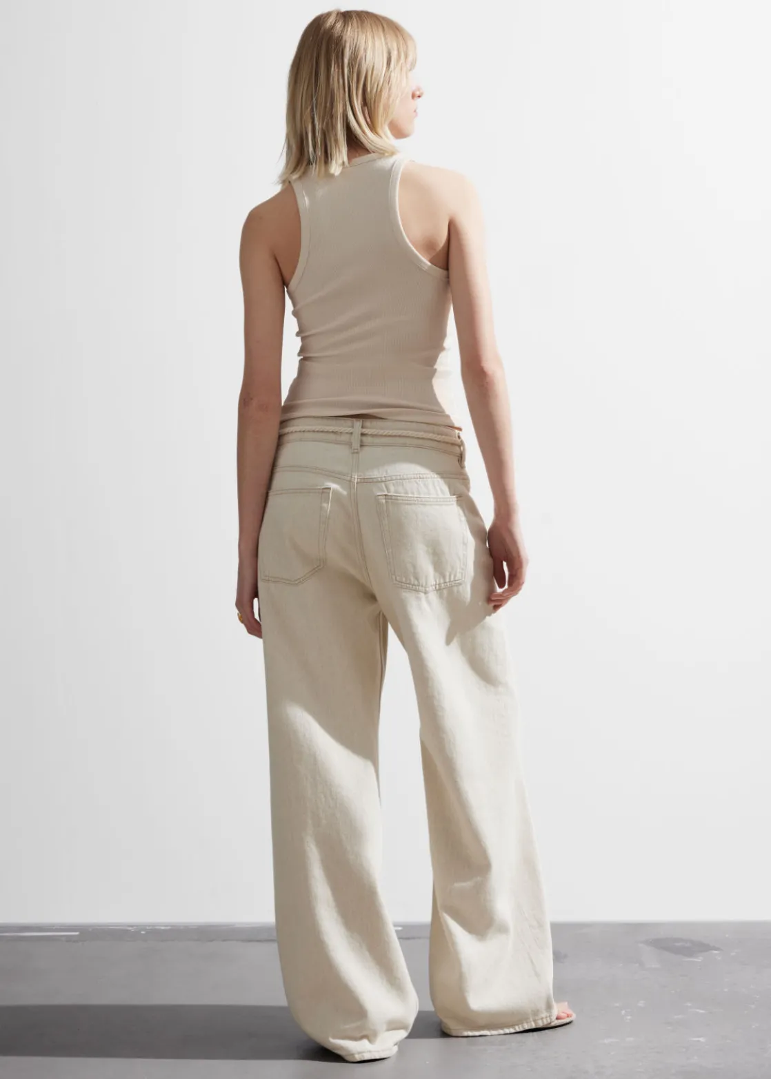 Tank top defined by a gold-toned metal buckle at the shoulder.