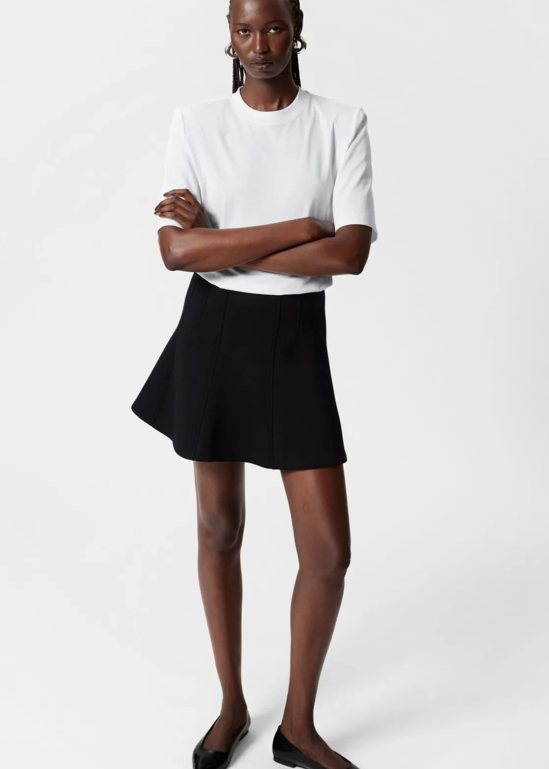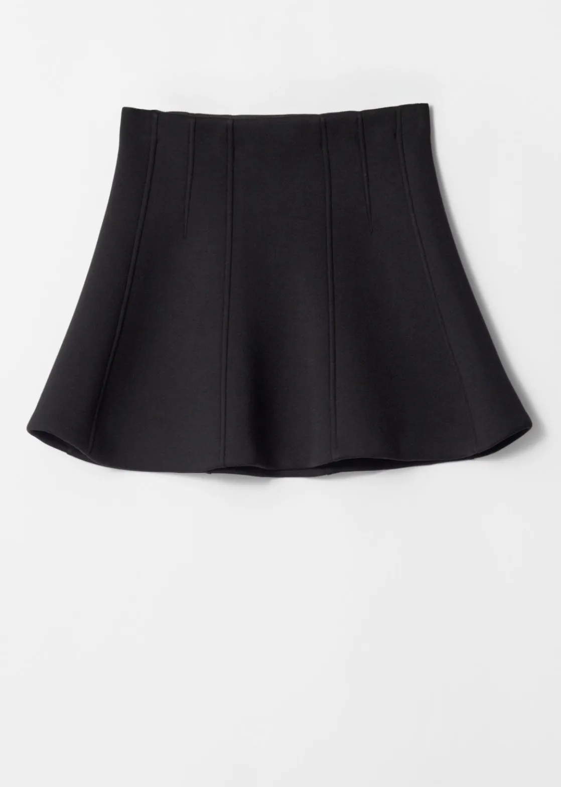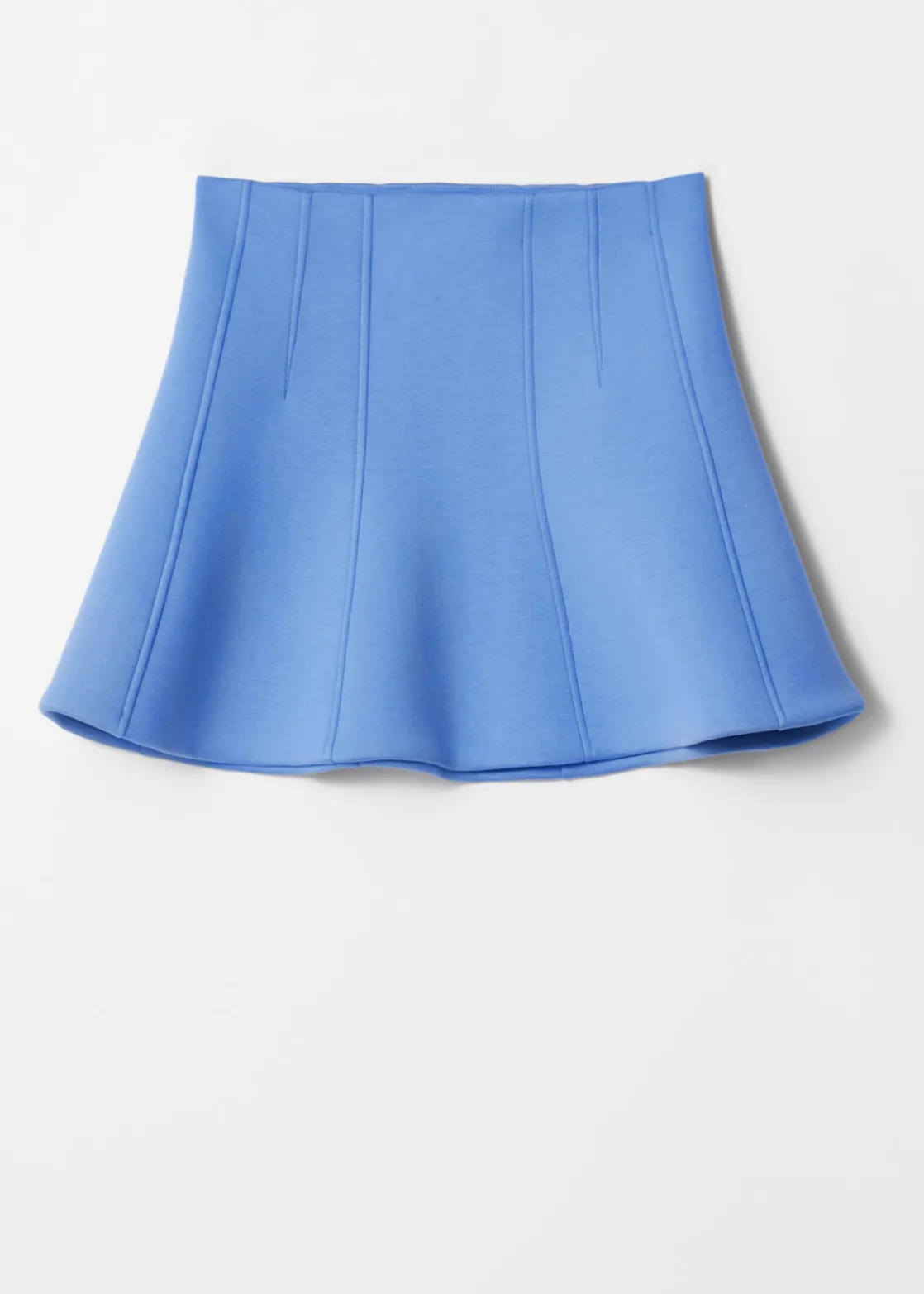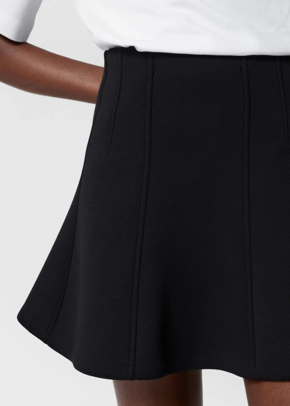 A-line mini skirt in a scuba finish. Detailed with vertical seams and an elasticated waistline.