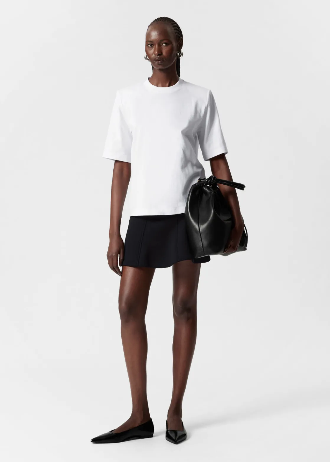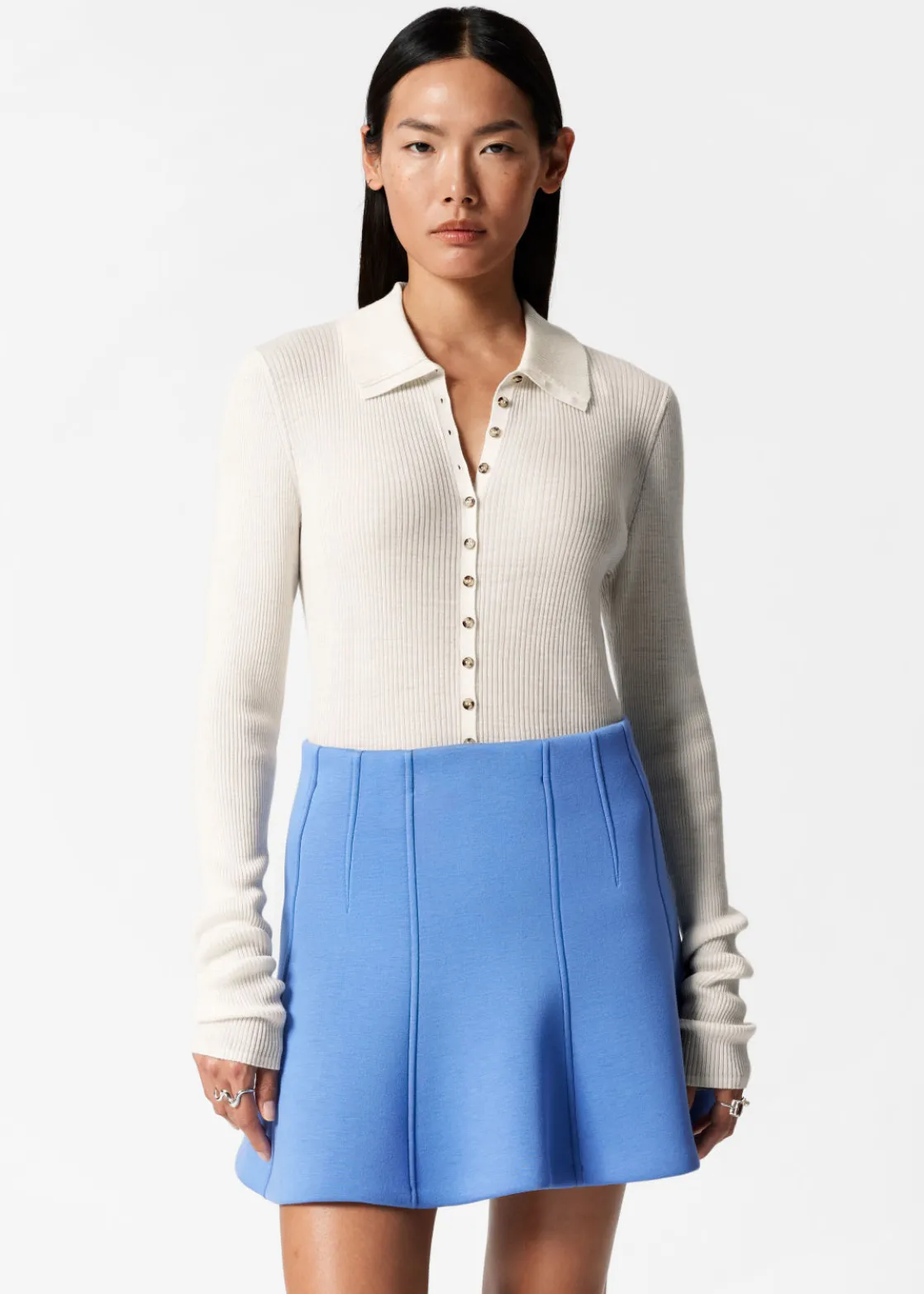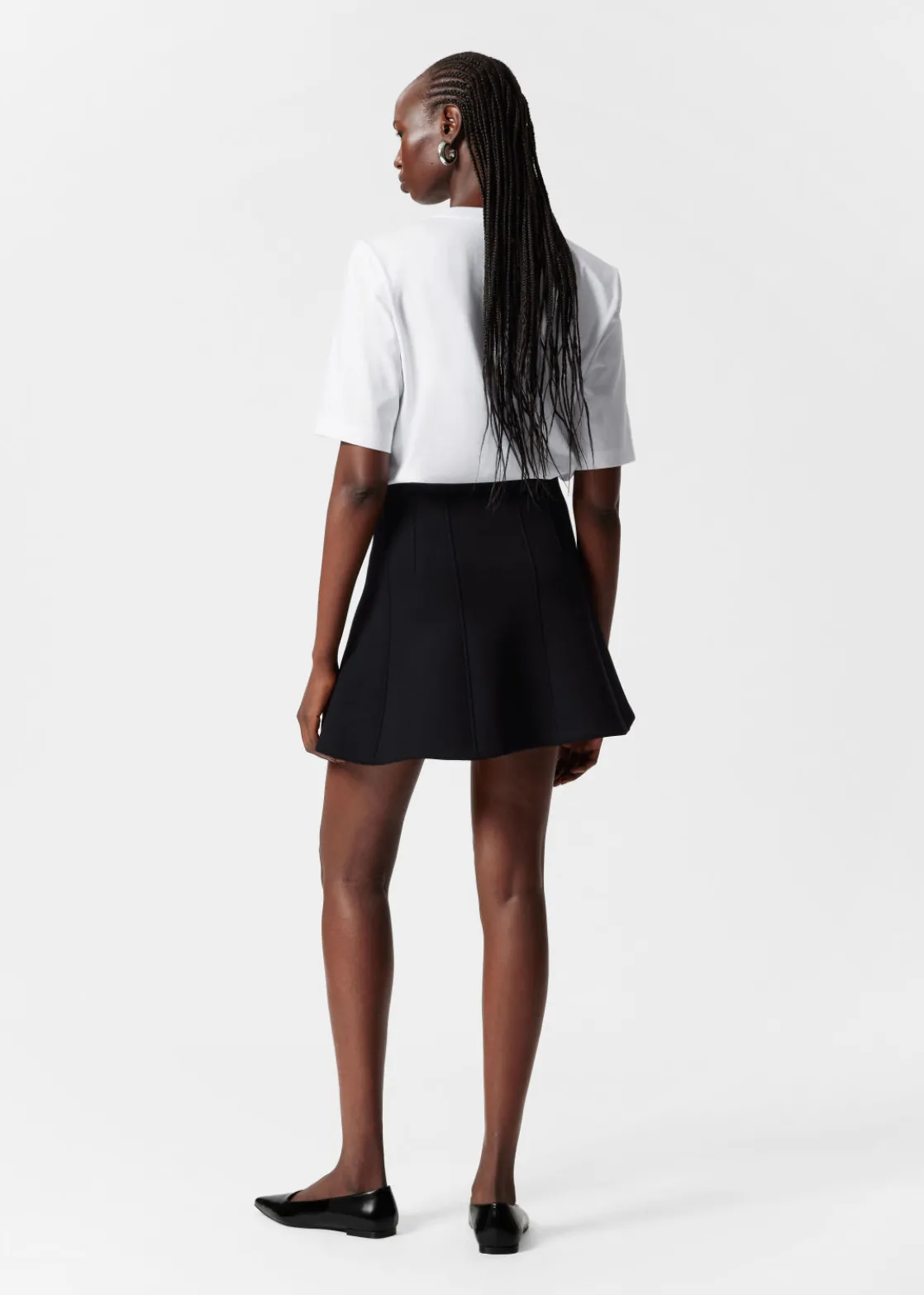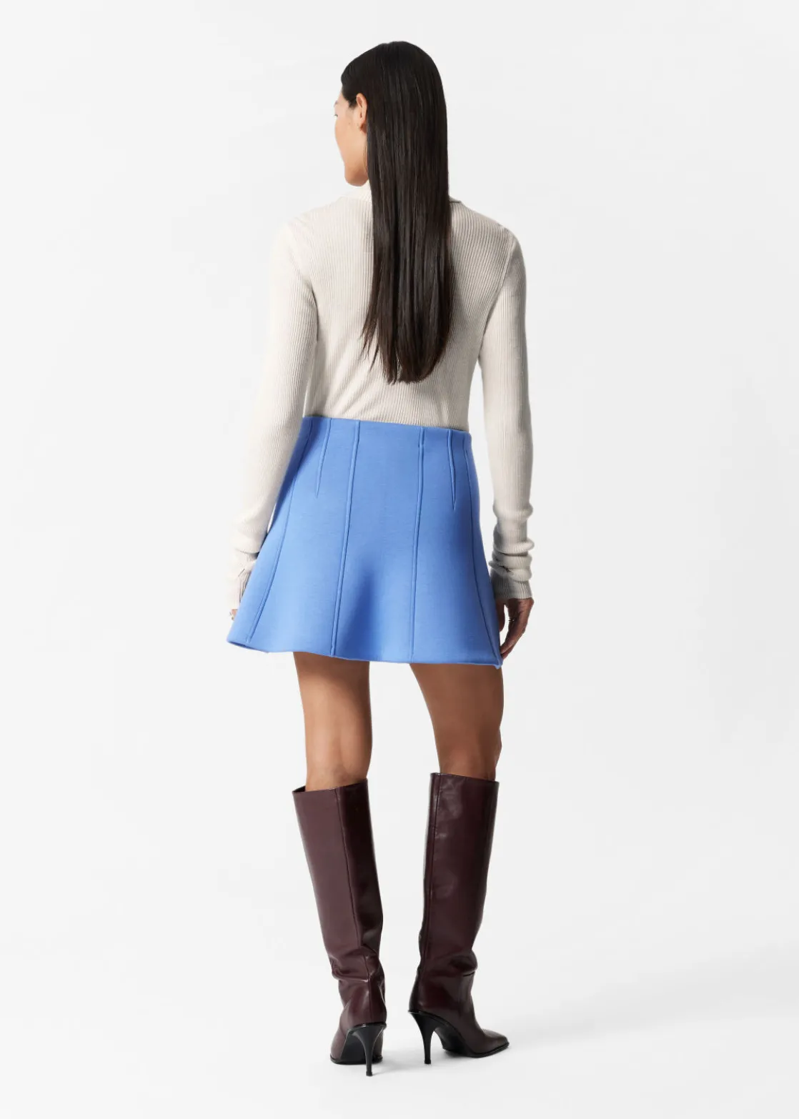 A-line mini skirt in a scuba finish. Detailed with vertical seams and an elasticated waistline.
