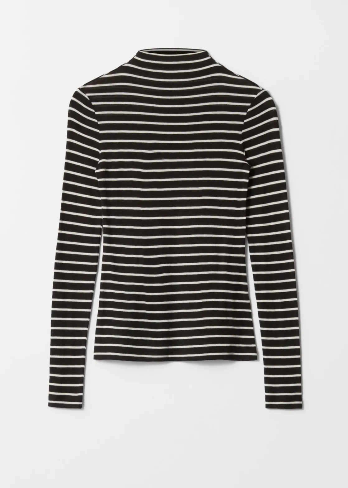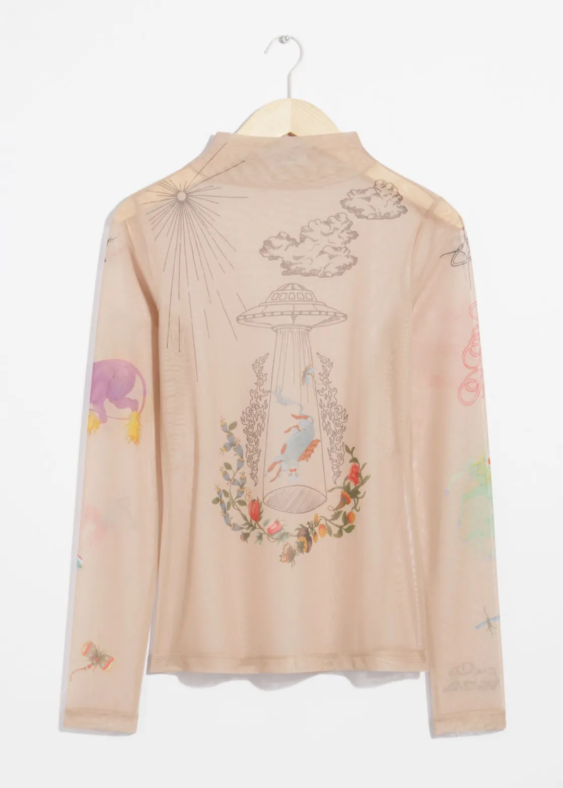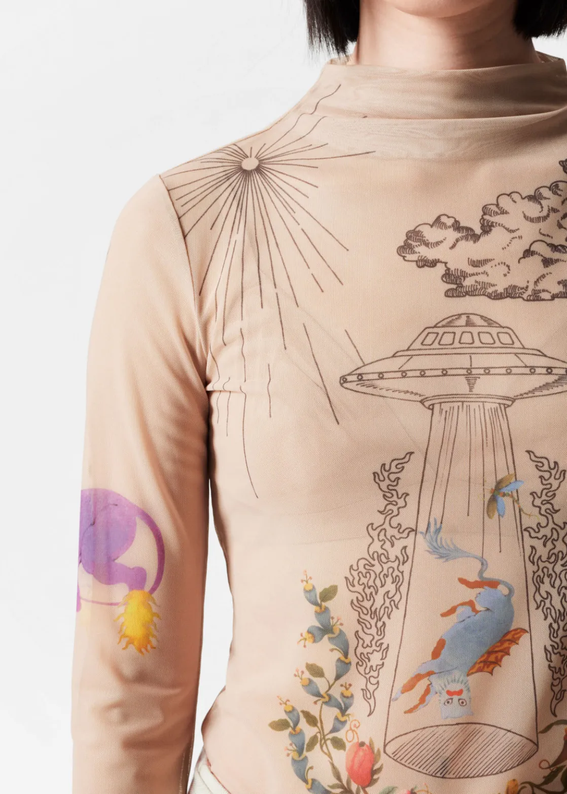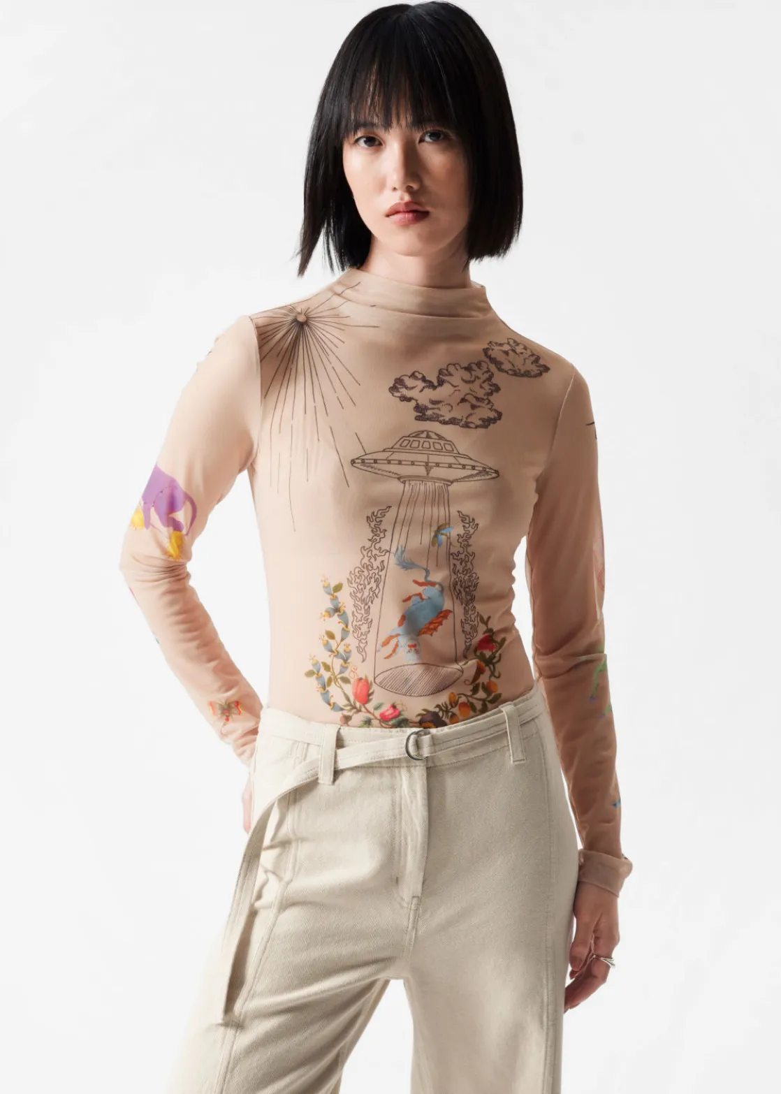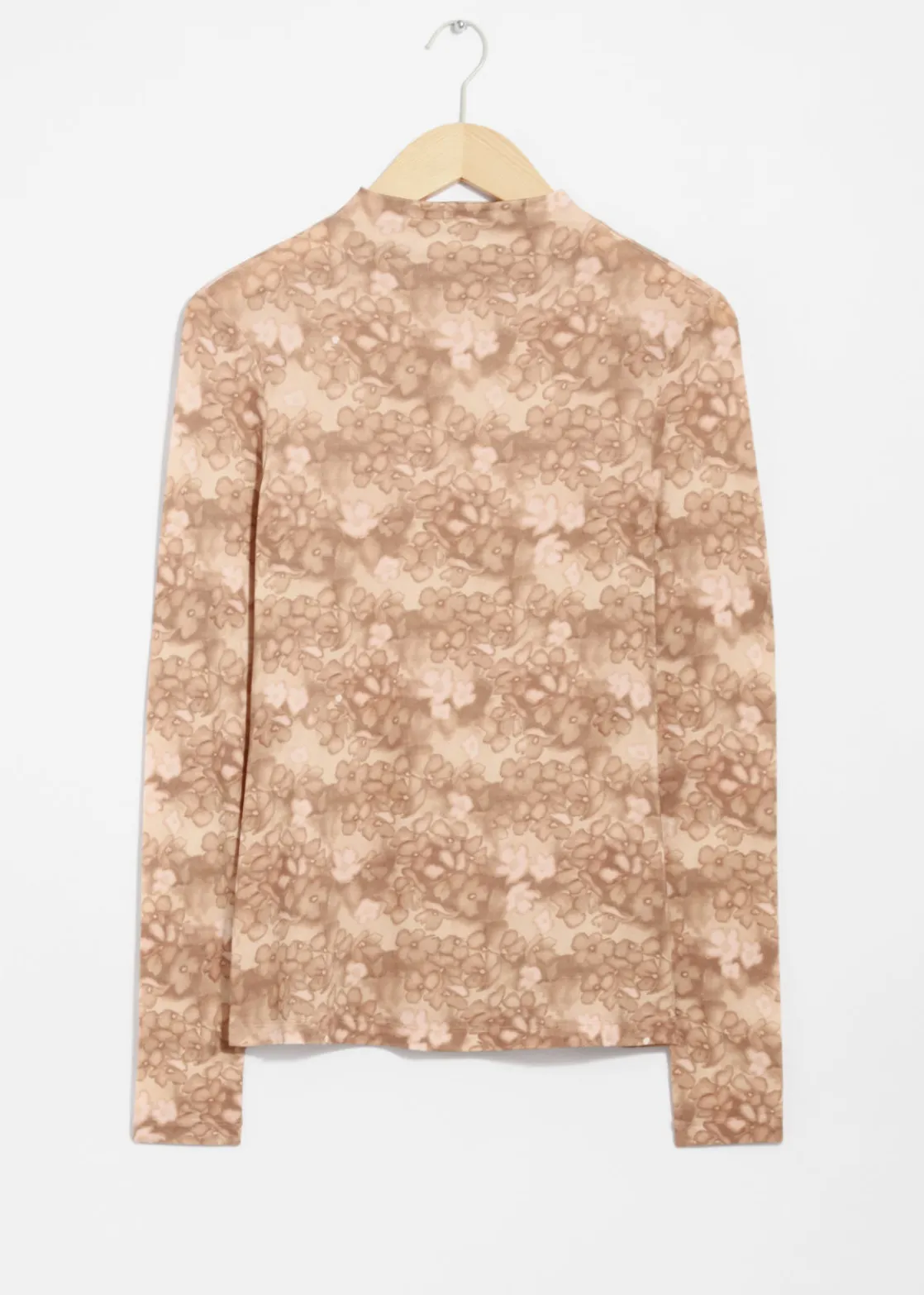 Printed long-sleeve mock-neck top finished with a slim silhouette.