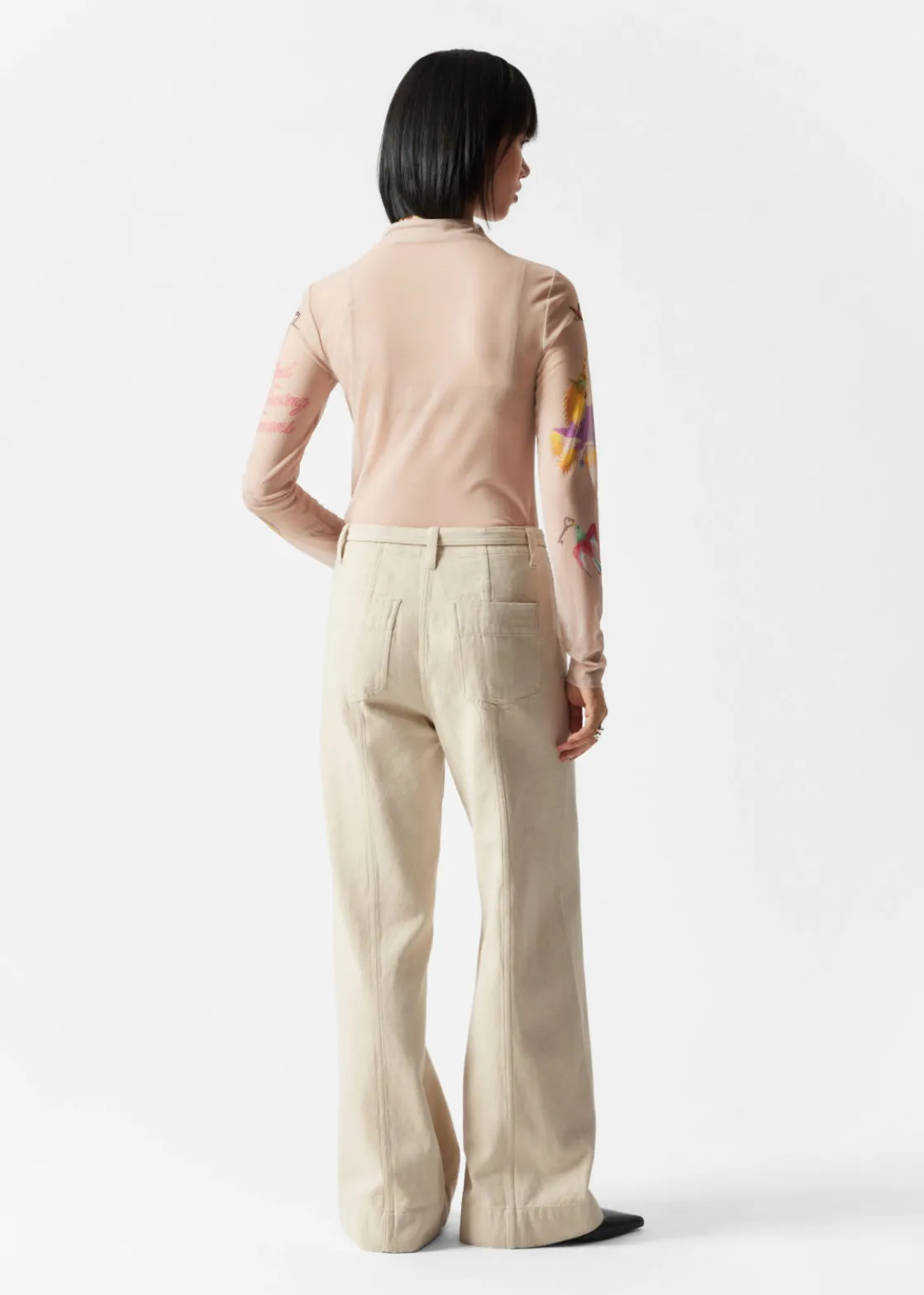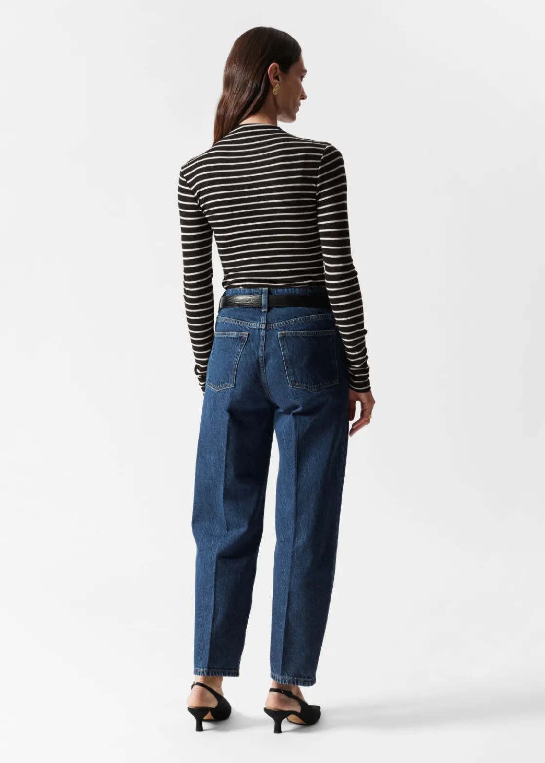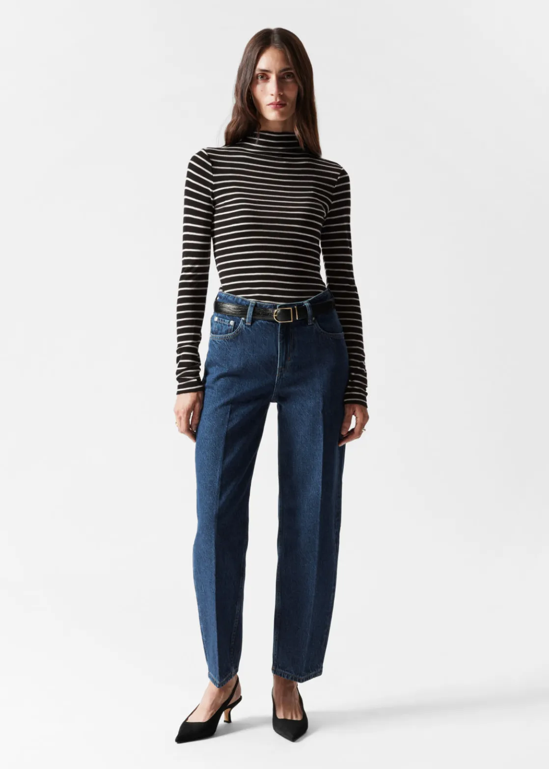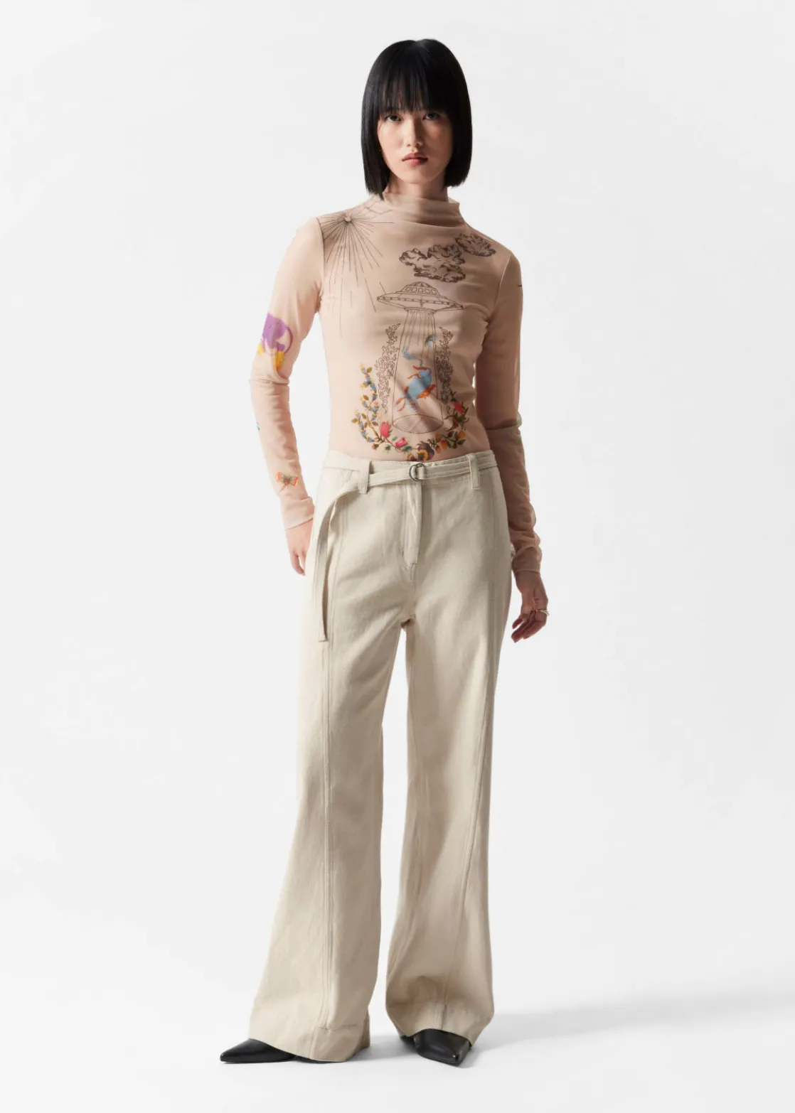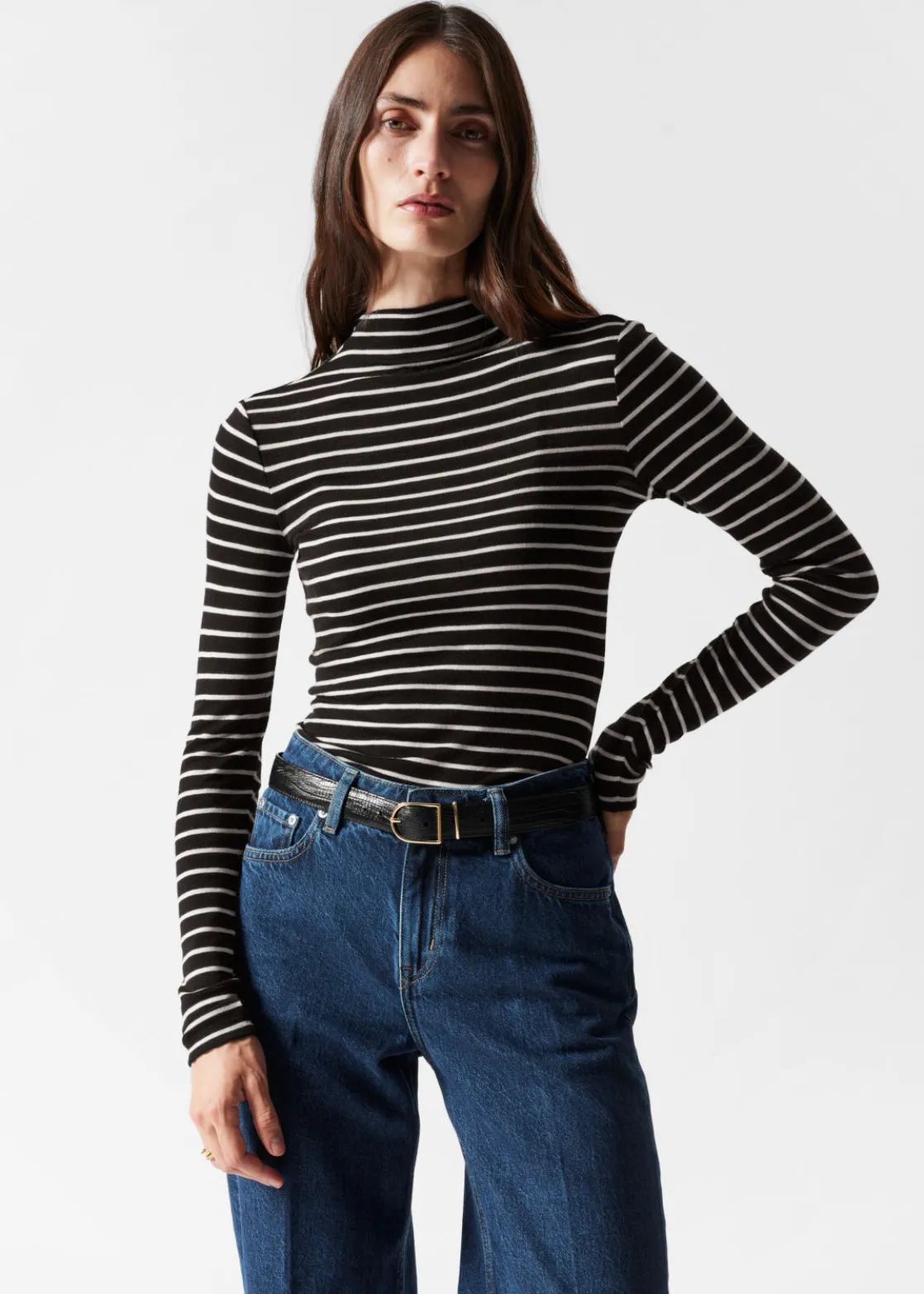 Printed long-sleeve mock-neck top finished with a slim silhouette.