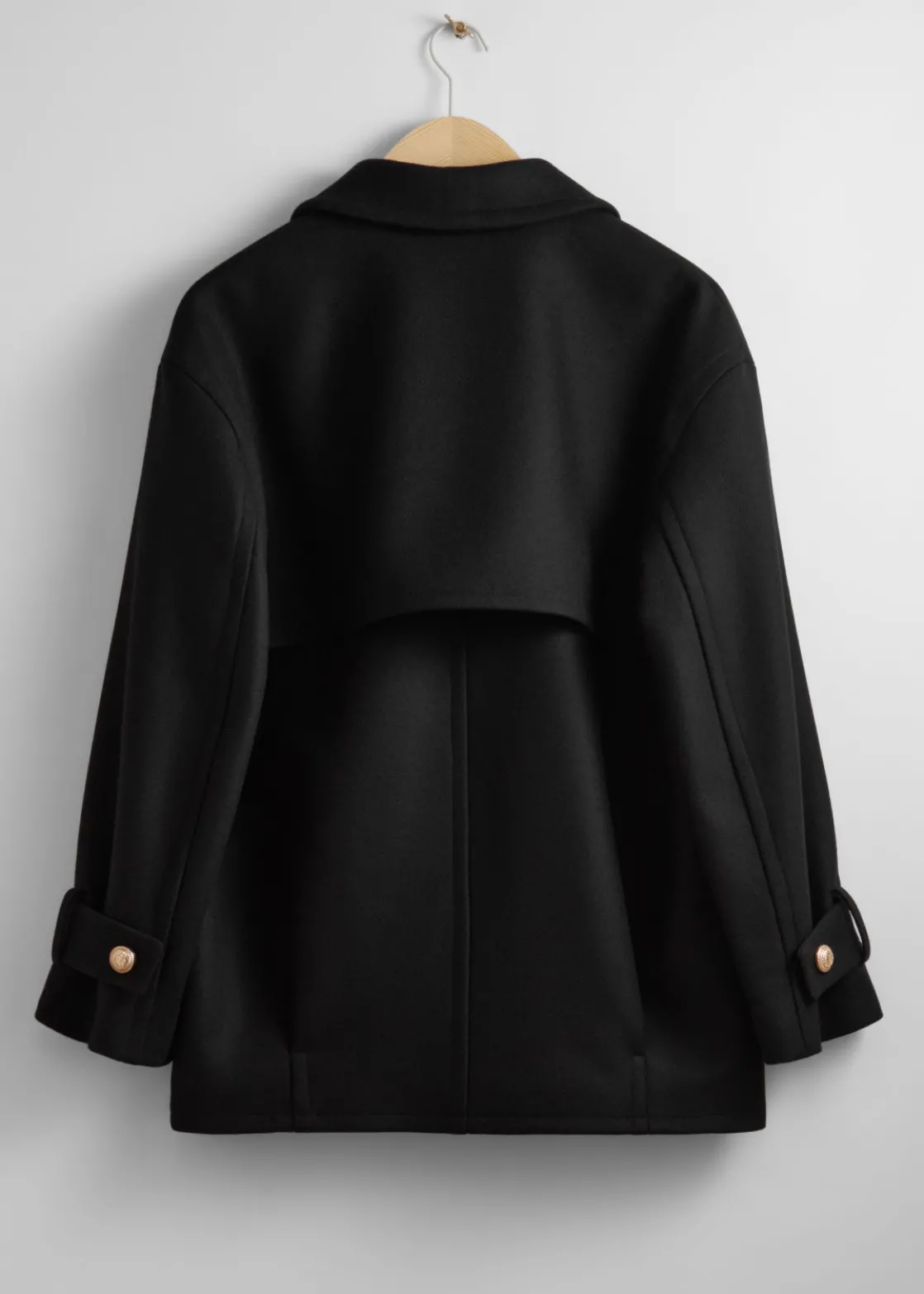 Oversized peacoat with a double-breasted silhouette.
