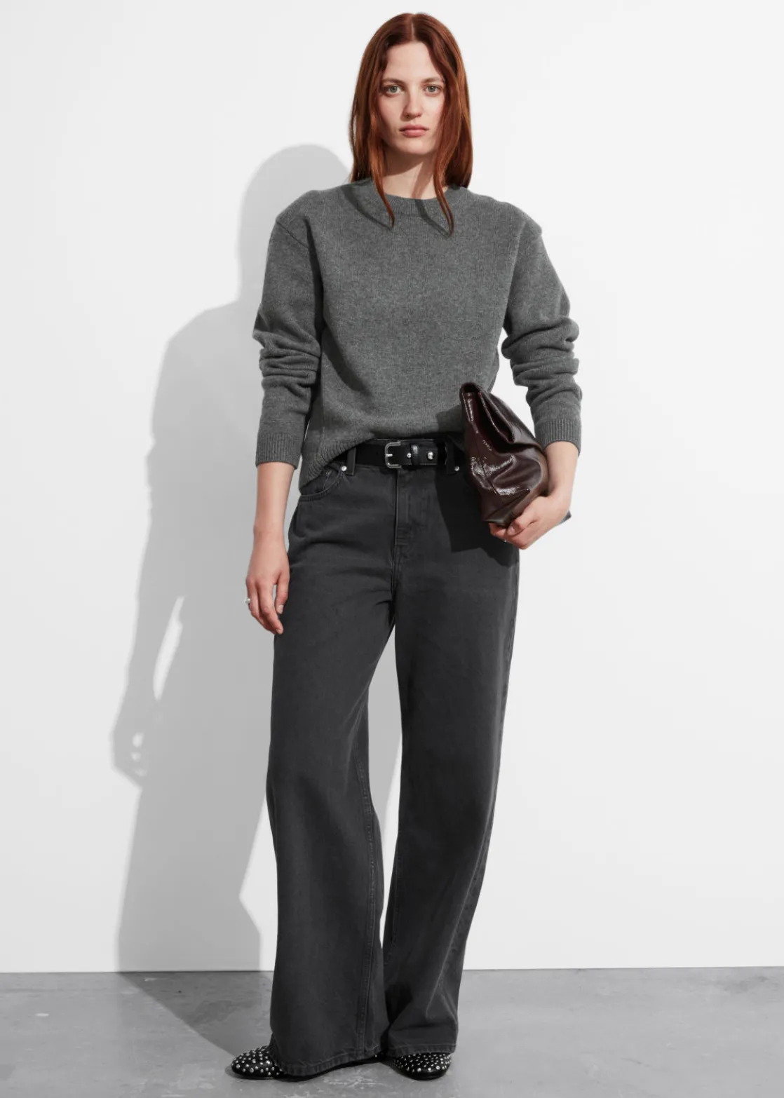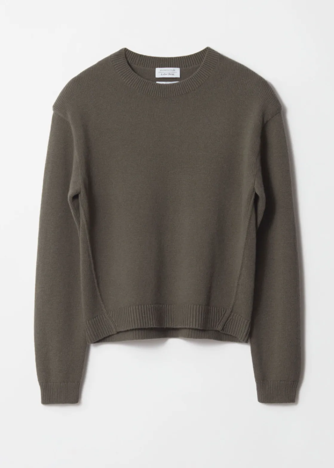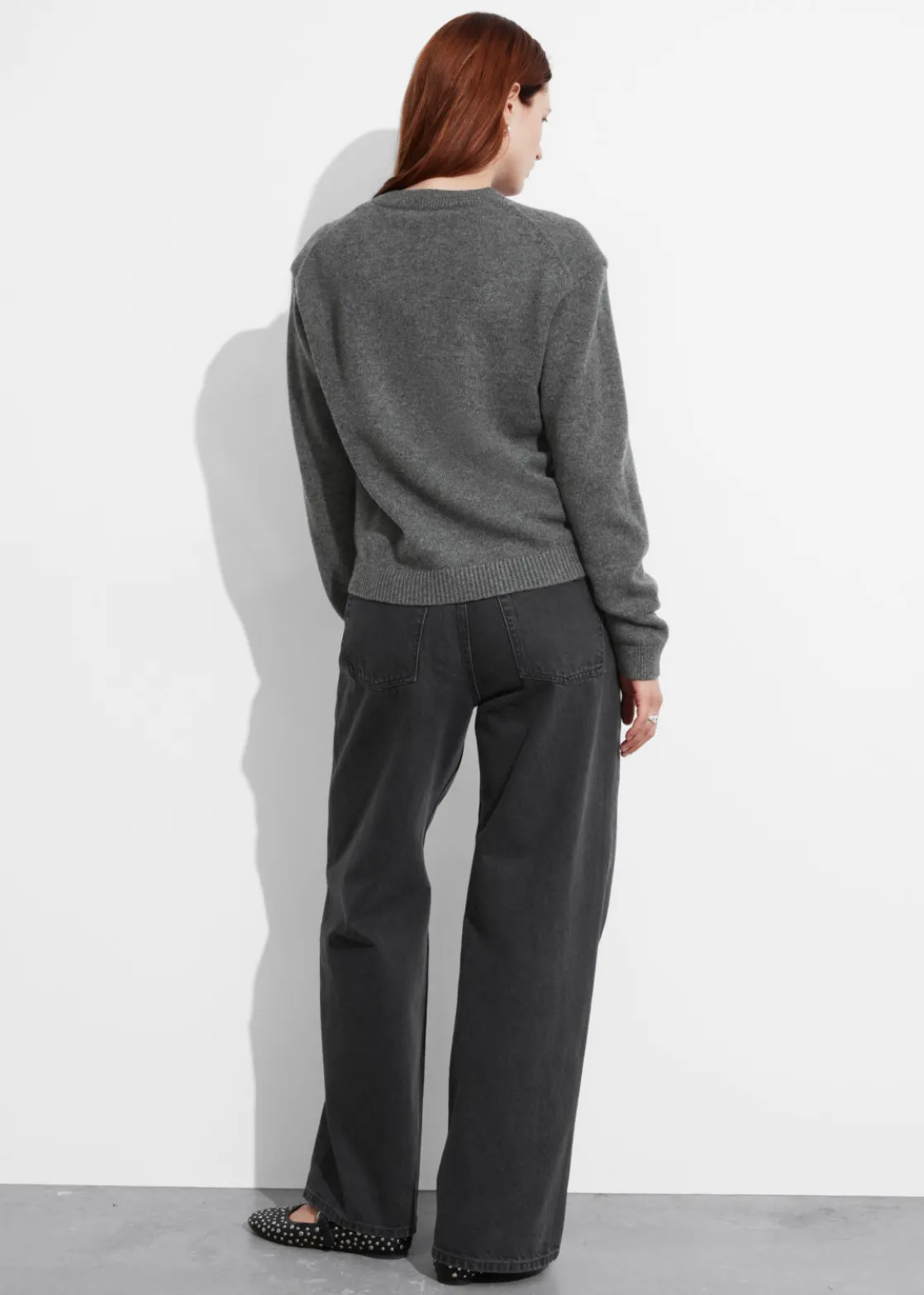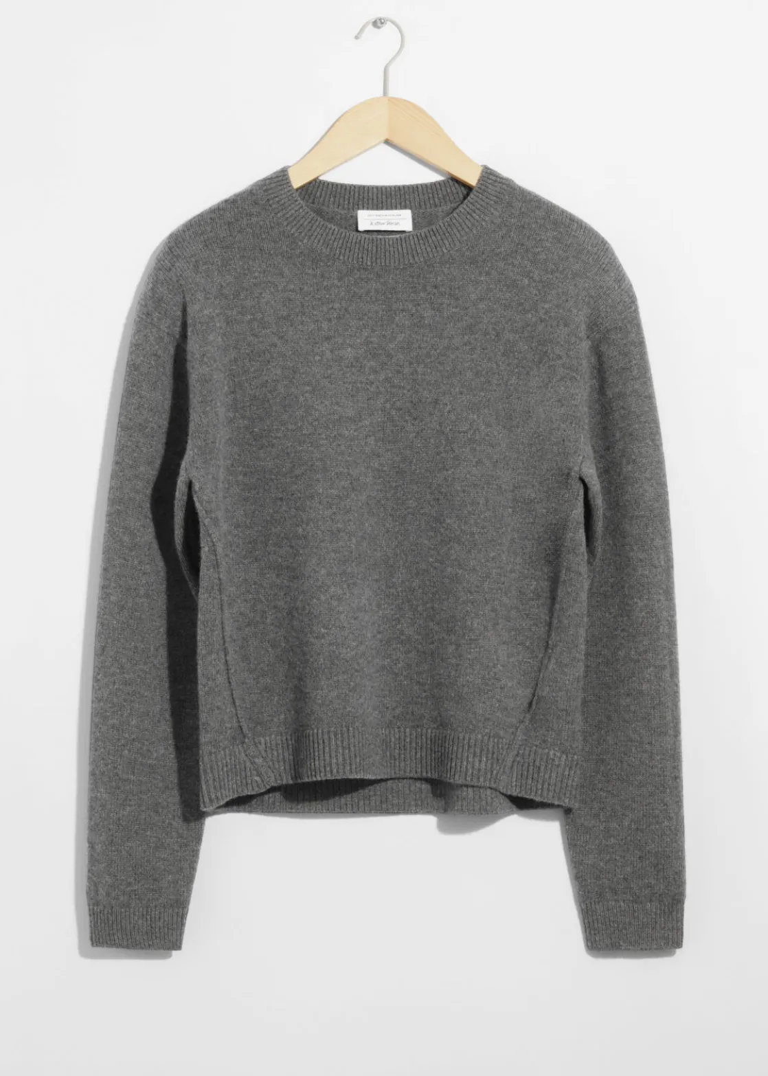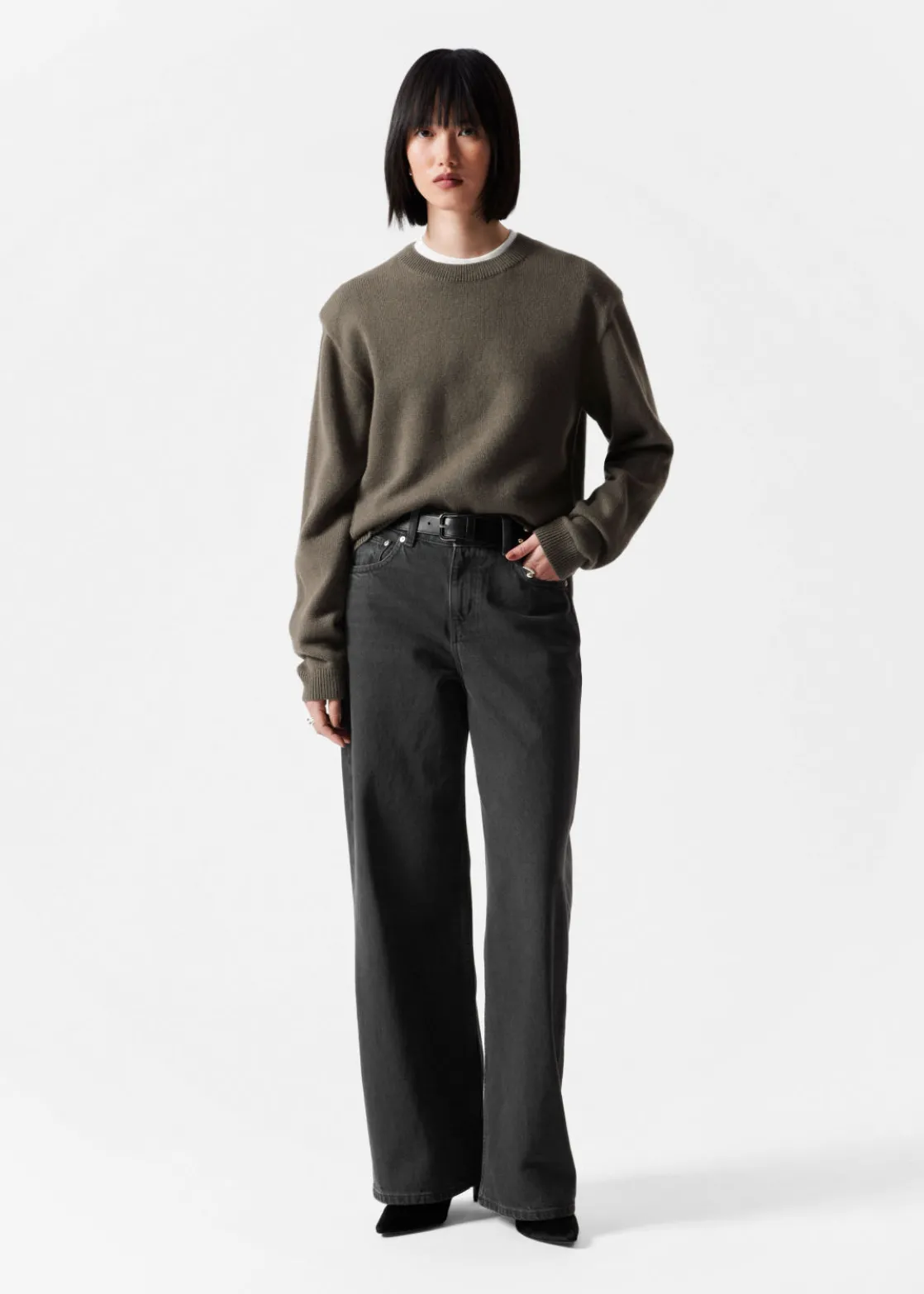 Long-sleeve jumper knitted from merino wool. Designed with padded shoulders.