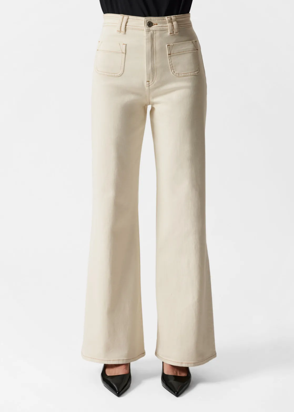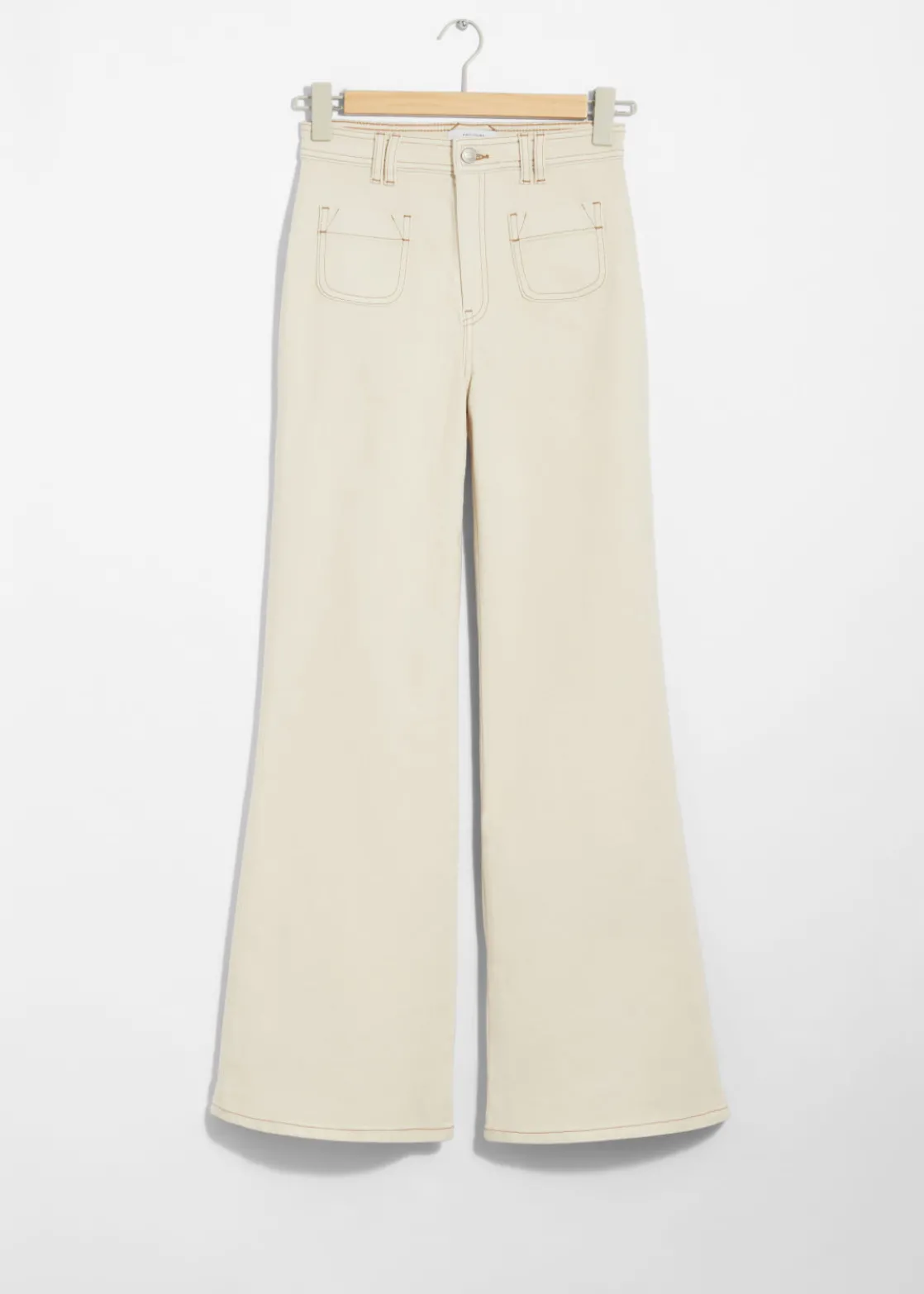 High-waist bootcut jeans detailed with patch pockets at the front and back.