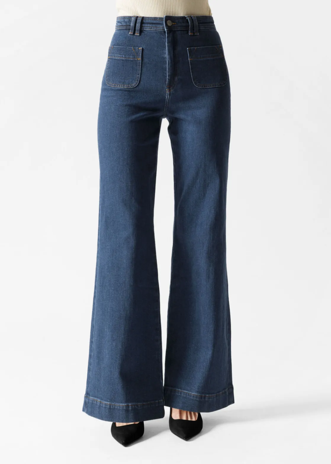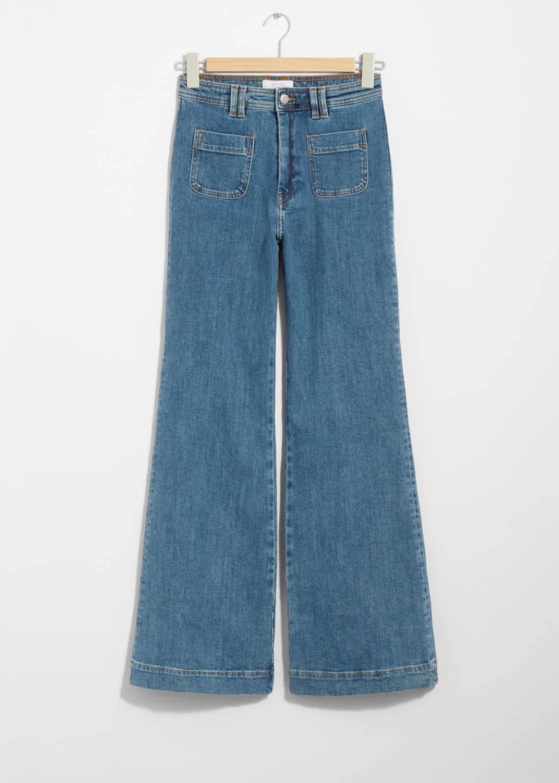 Bootcut jeans designed with duo patch pockets at the front and back. Featuring topstitched detailing.