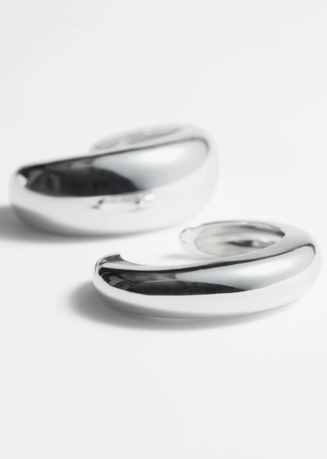 These two cuff bracelets are made from silver-tone metal and have a sculptural, domed shape and high-shine finish. The opening means it’ll slip on and off with ease. Wear them stacked together or one on each wrist.
