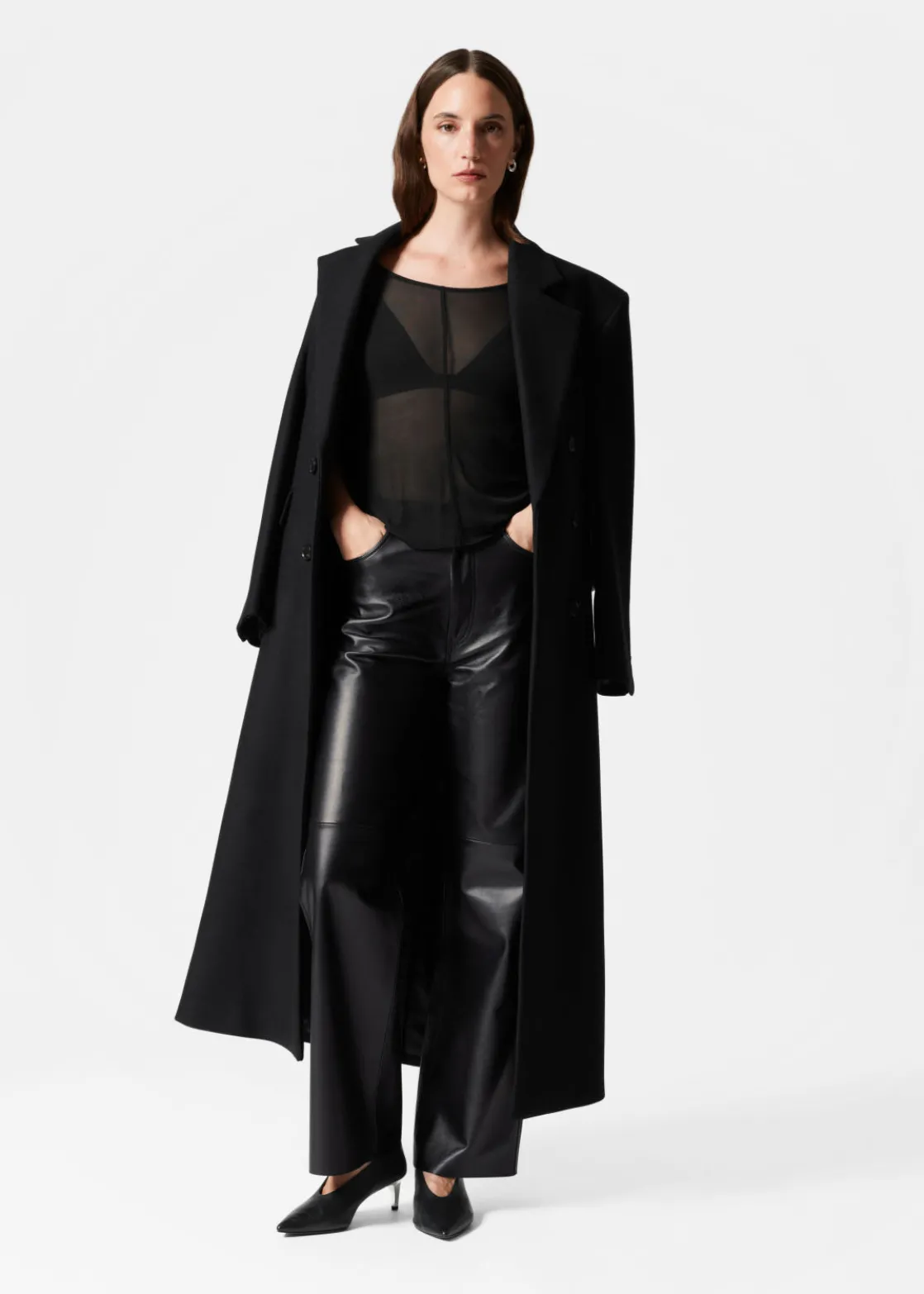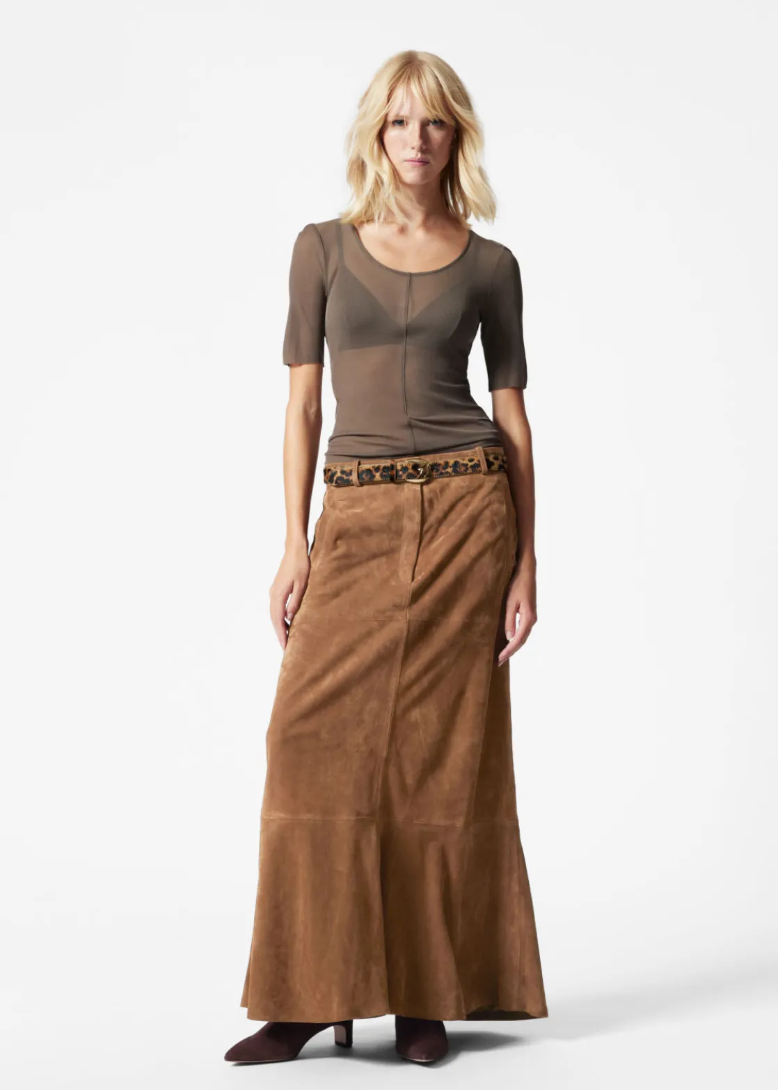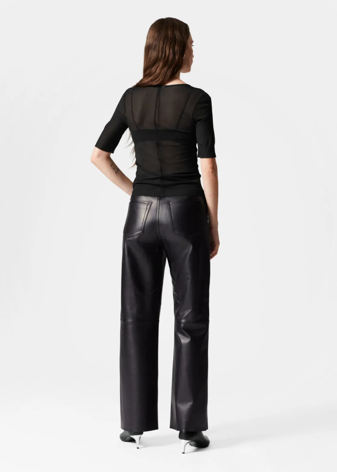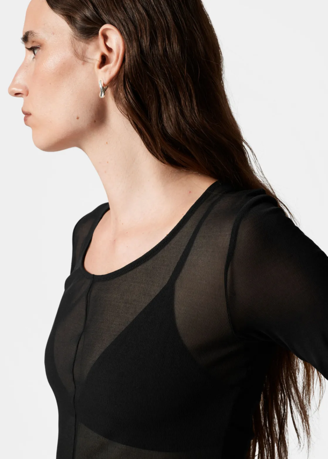 Sheer short-sleeve top cut from mulberry silk. Finished with an exposed vertical centre-front seam.