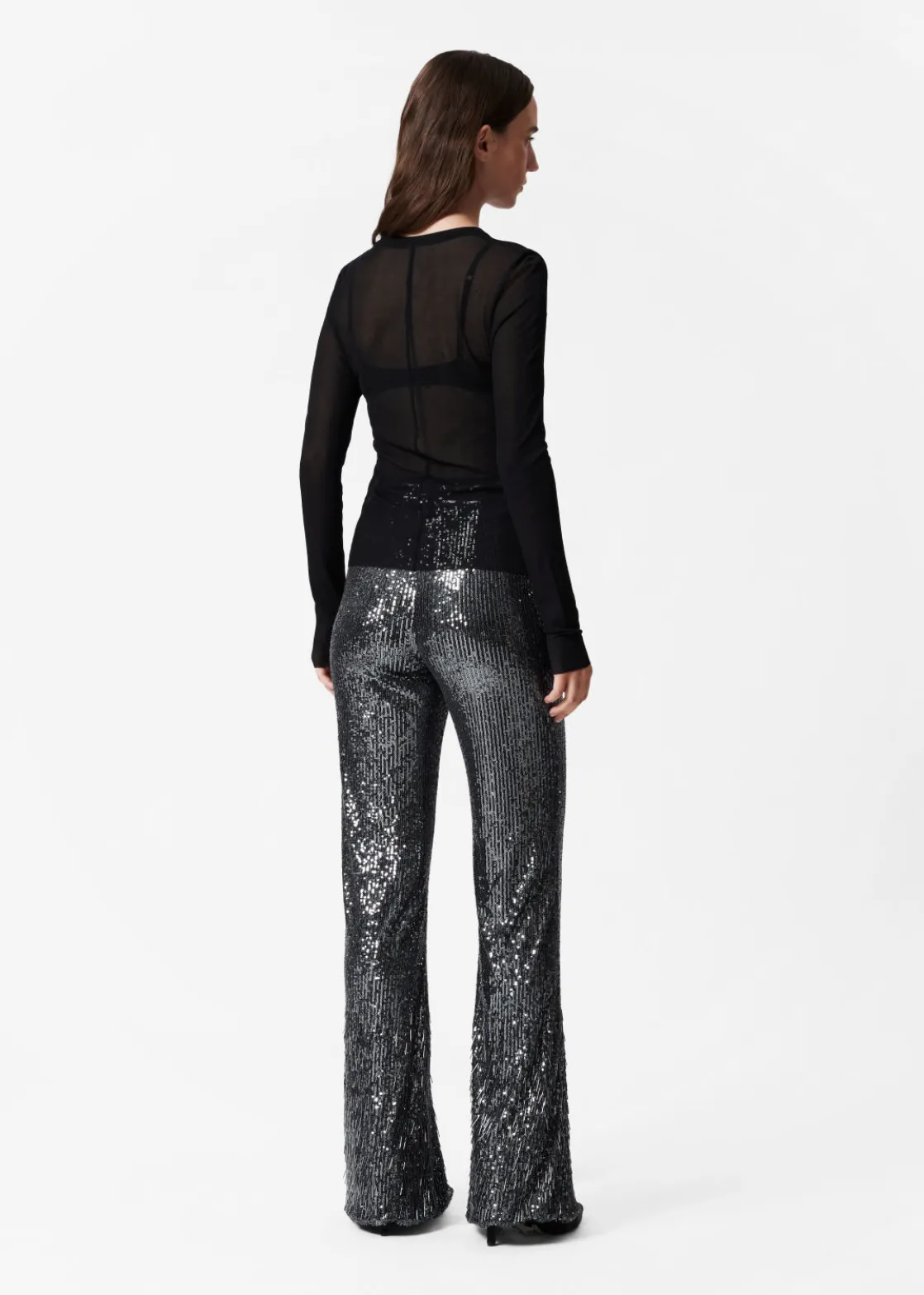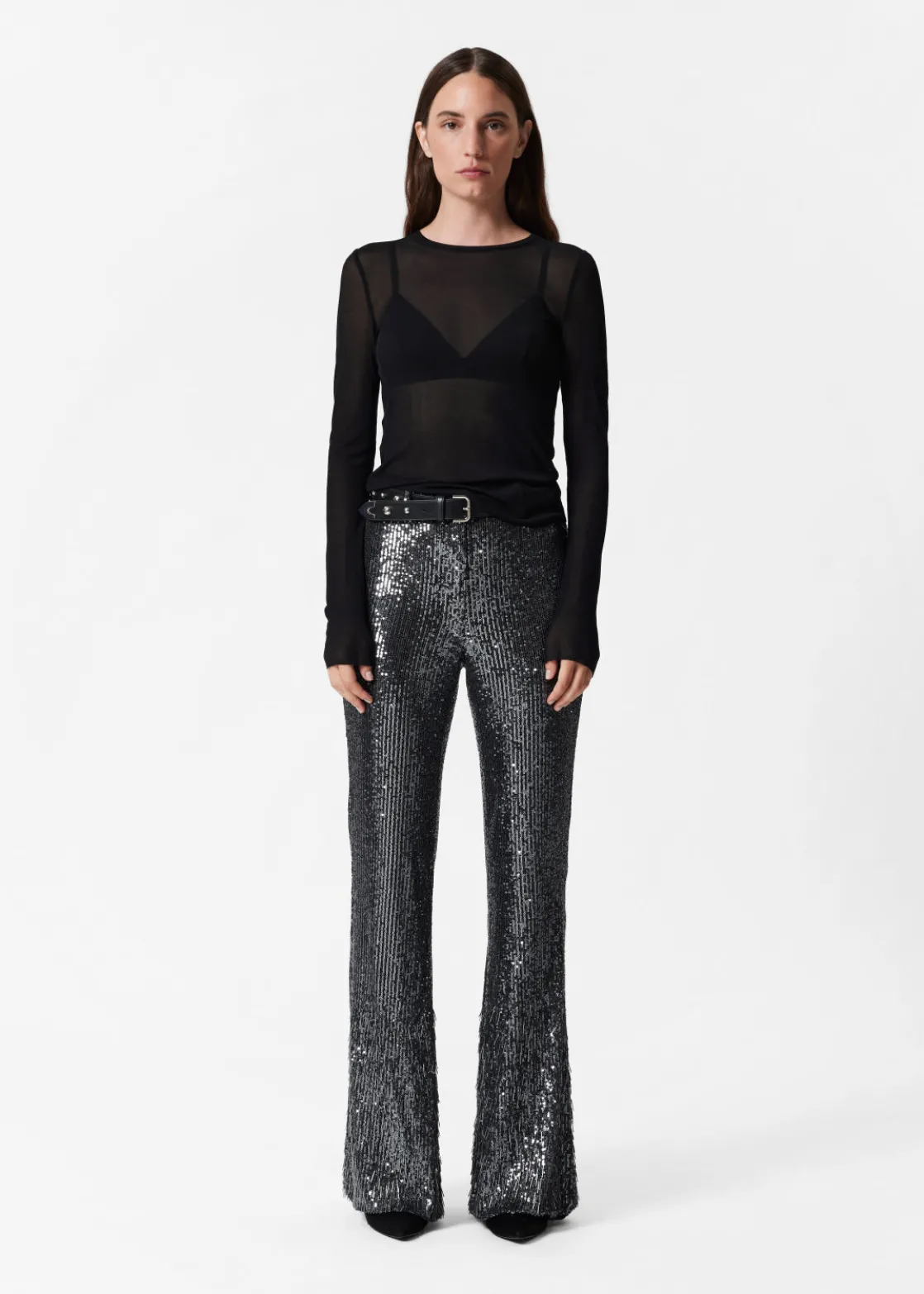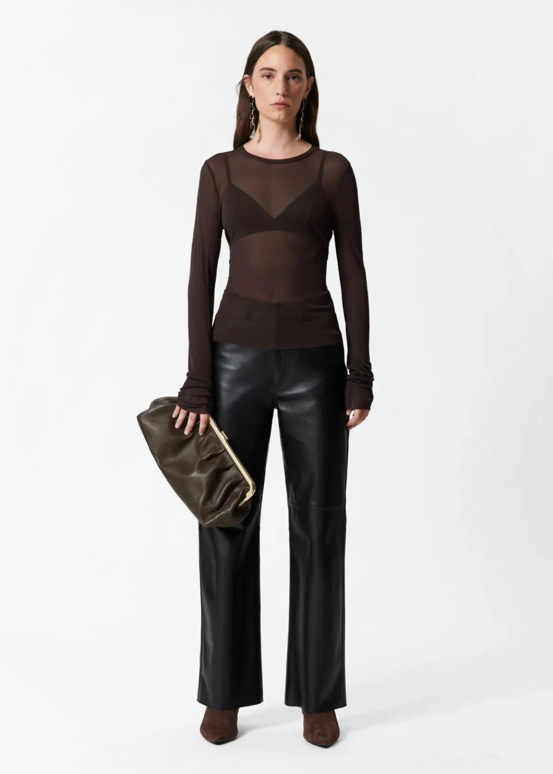 Long-sleeve top crafted from sumptous mulberry silk. Featuring a sheer finish.