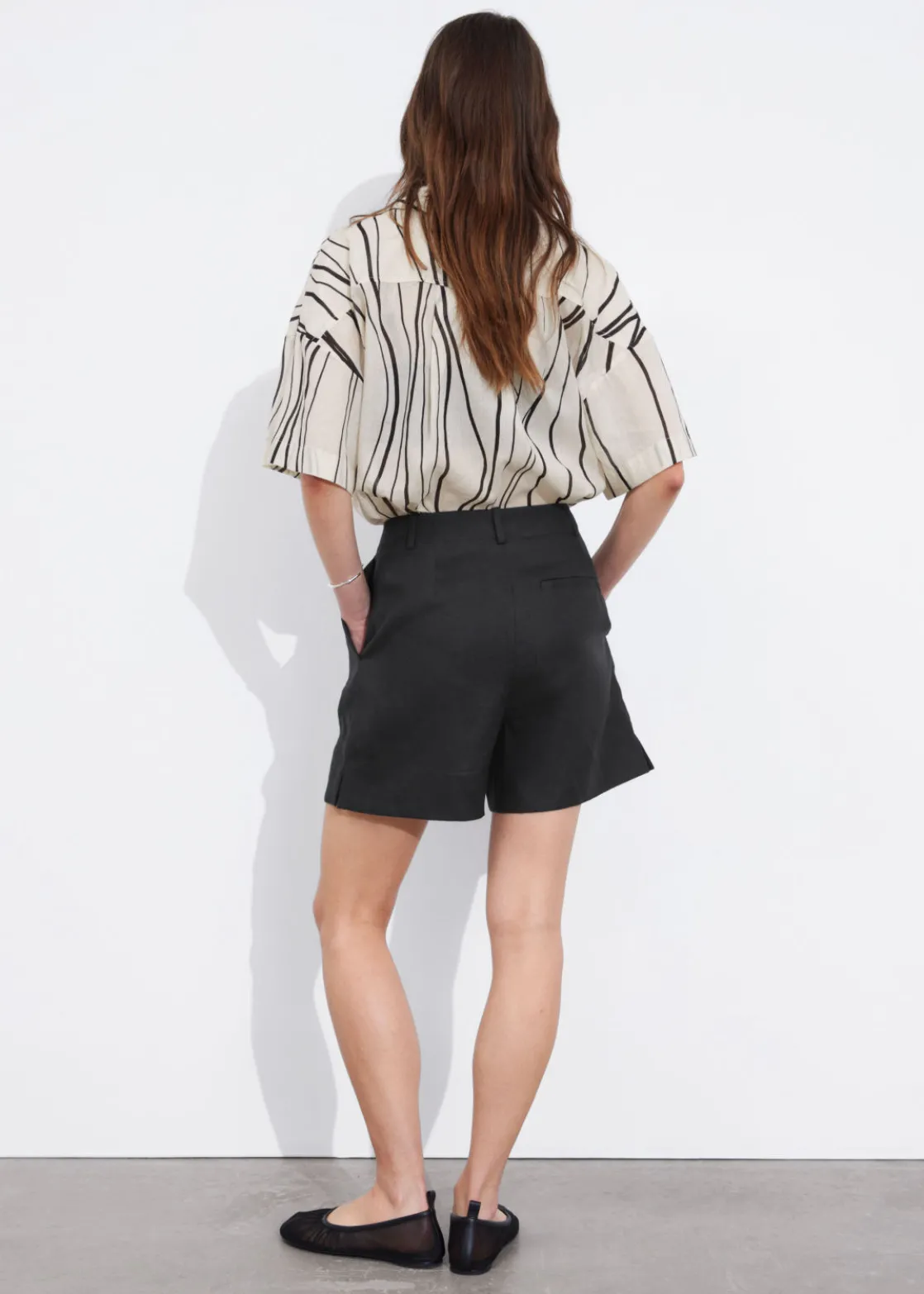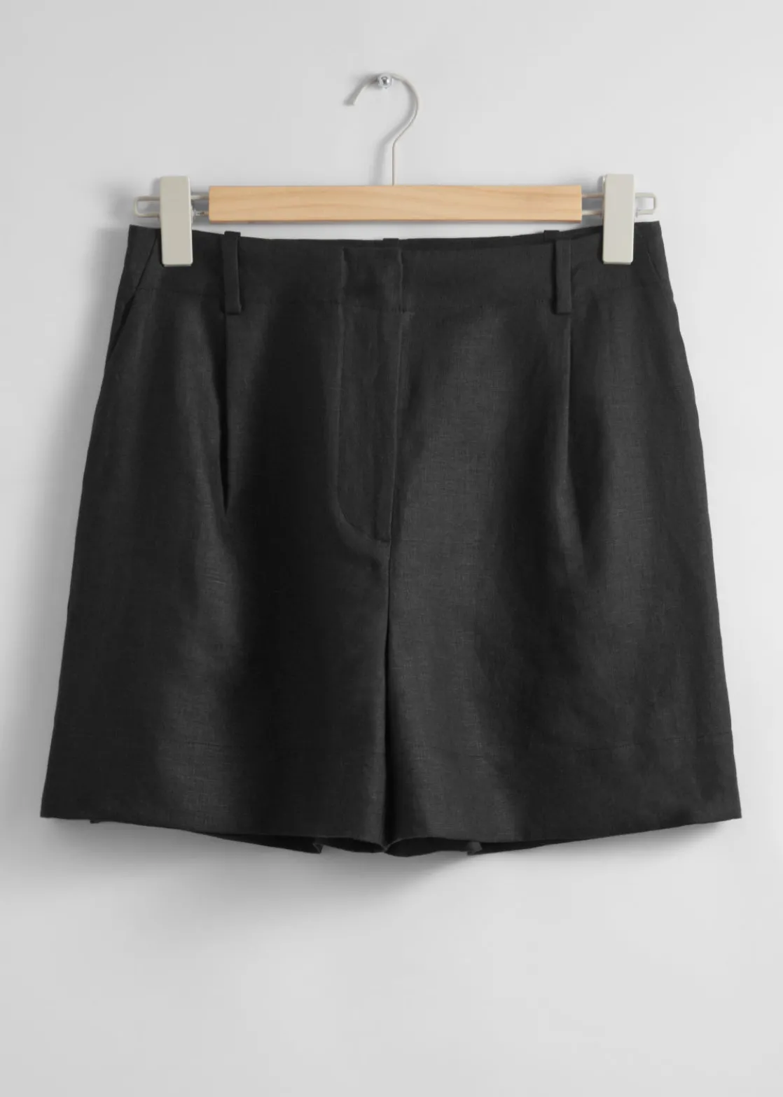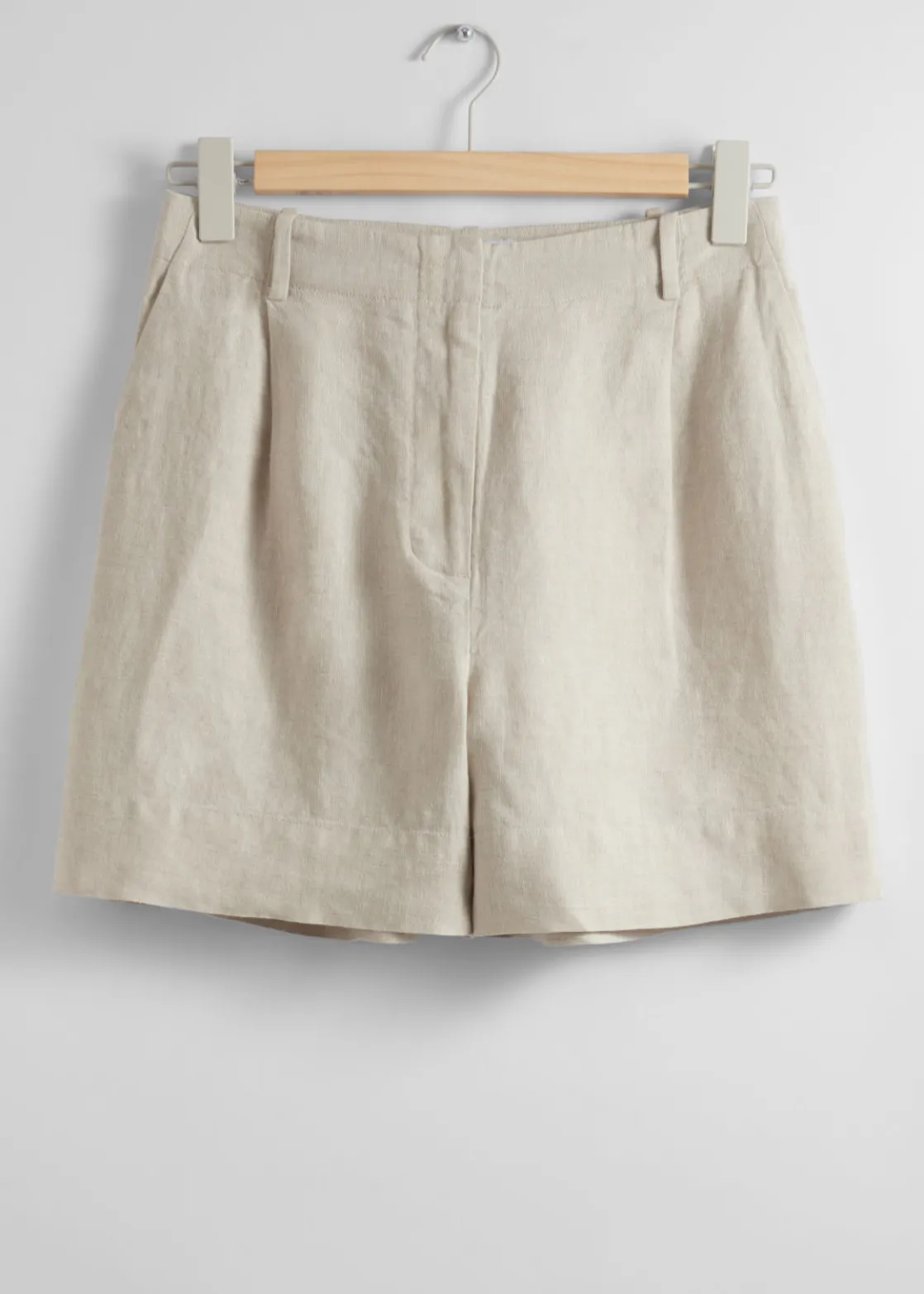 High-waist linen shorts detailed with centre front pleats for a tailored finish.