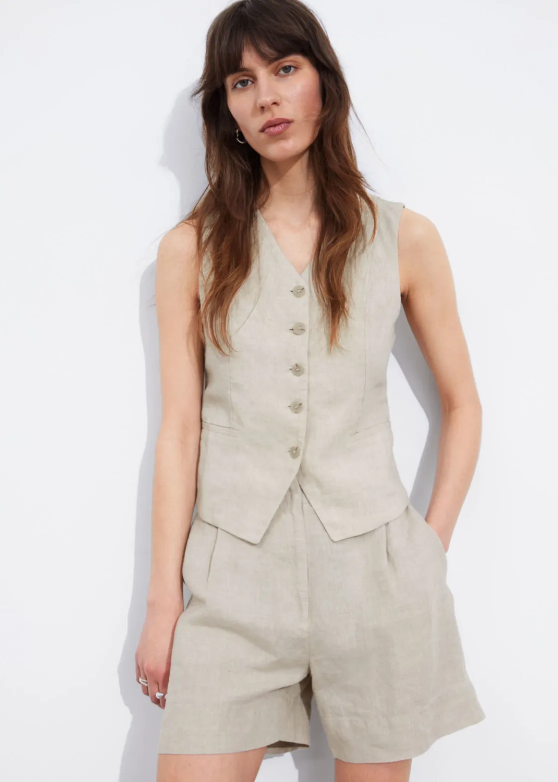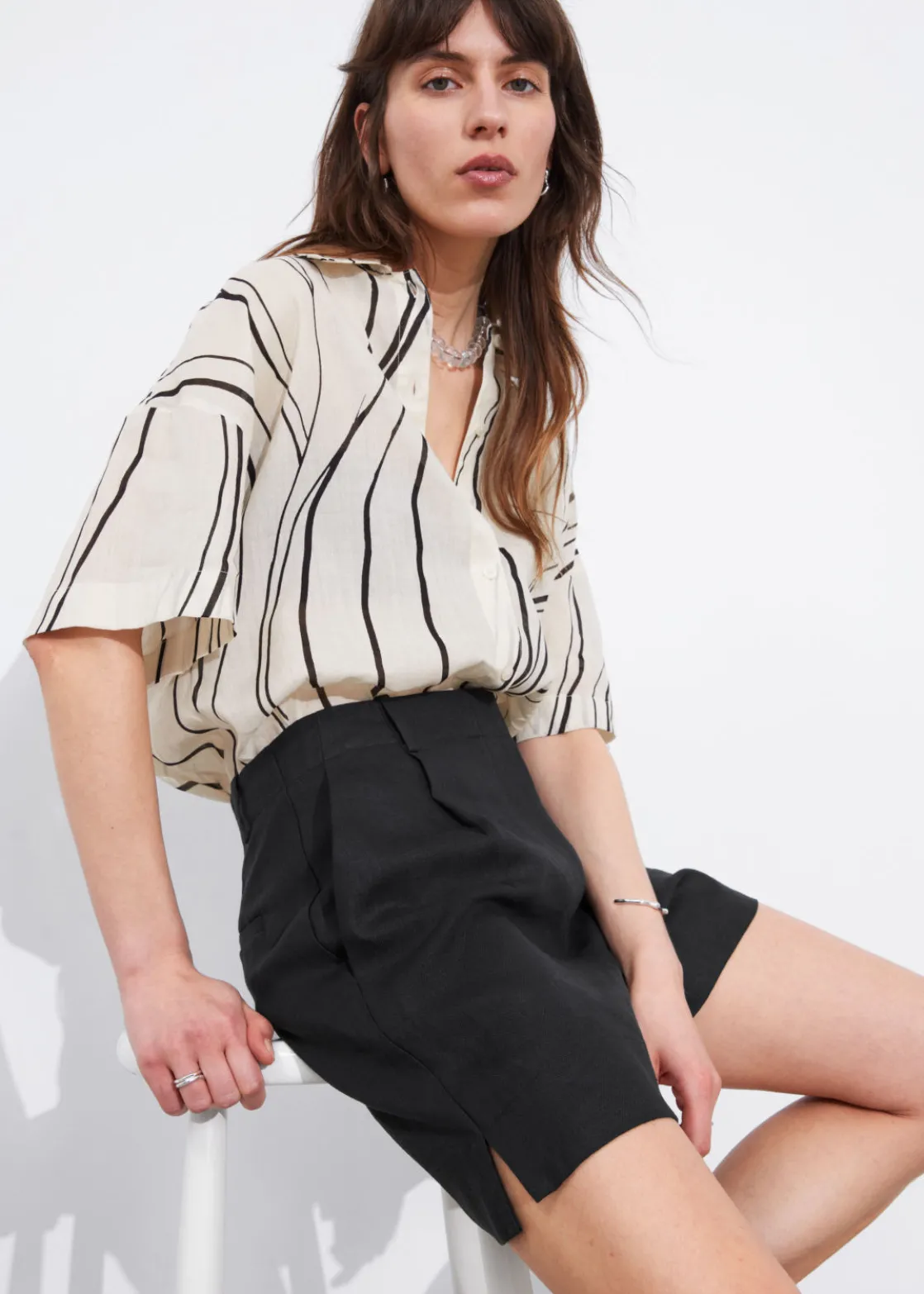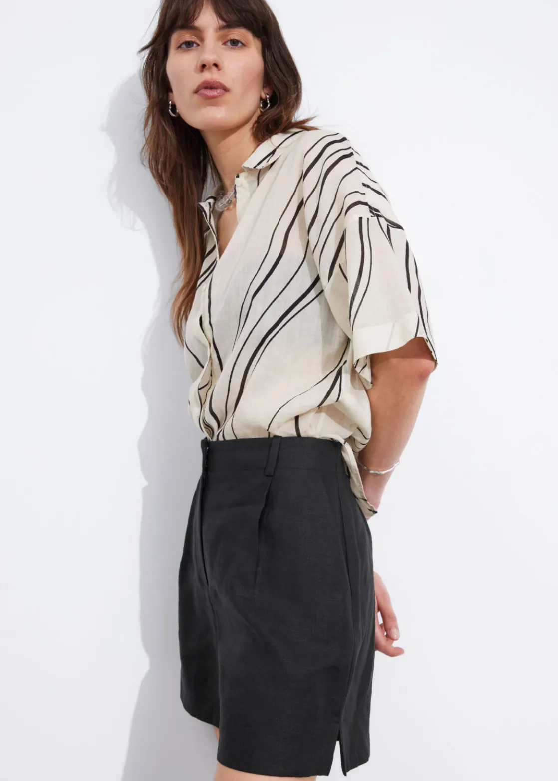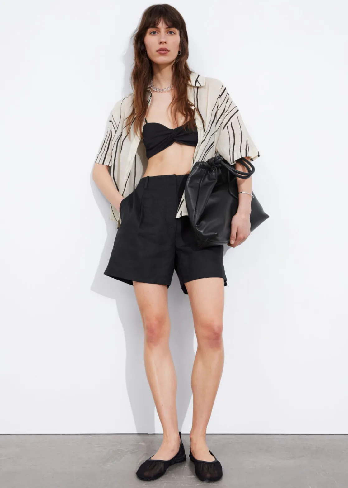 High-waist linen shorts detailed with centre front pleats for a tailored finish.
