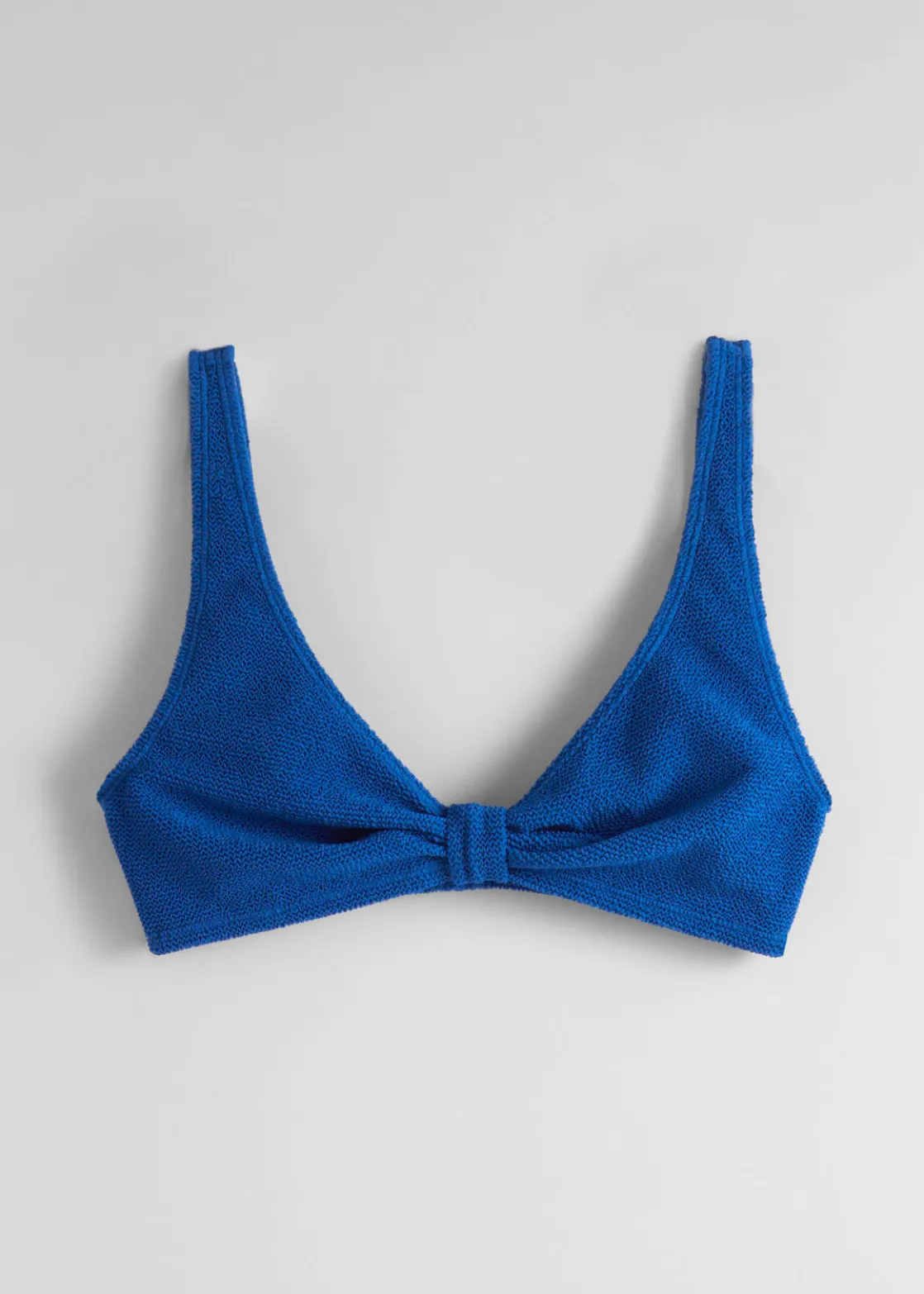 Triangle bikini top featuring a textured, terrycloth-inspired finish.