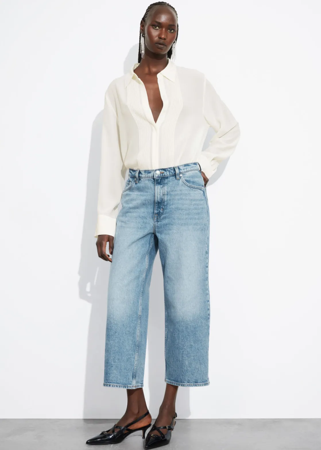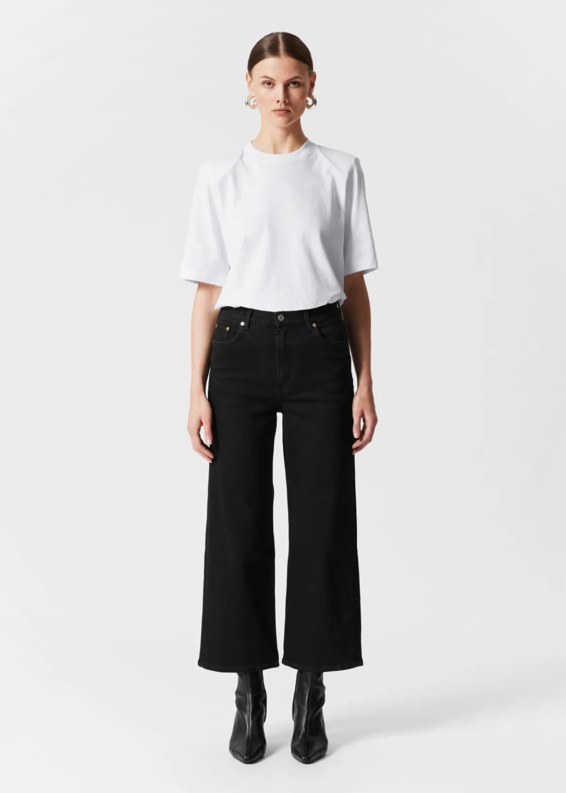 • Wide, cropped leg