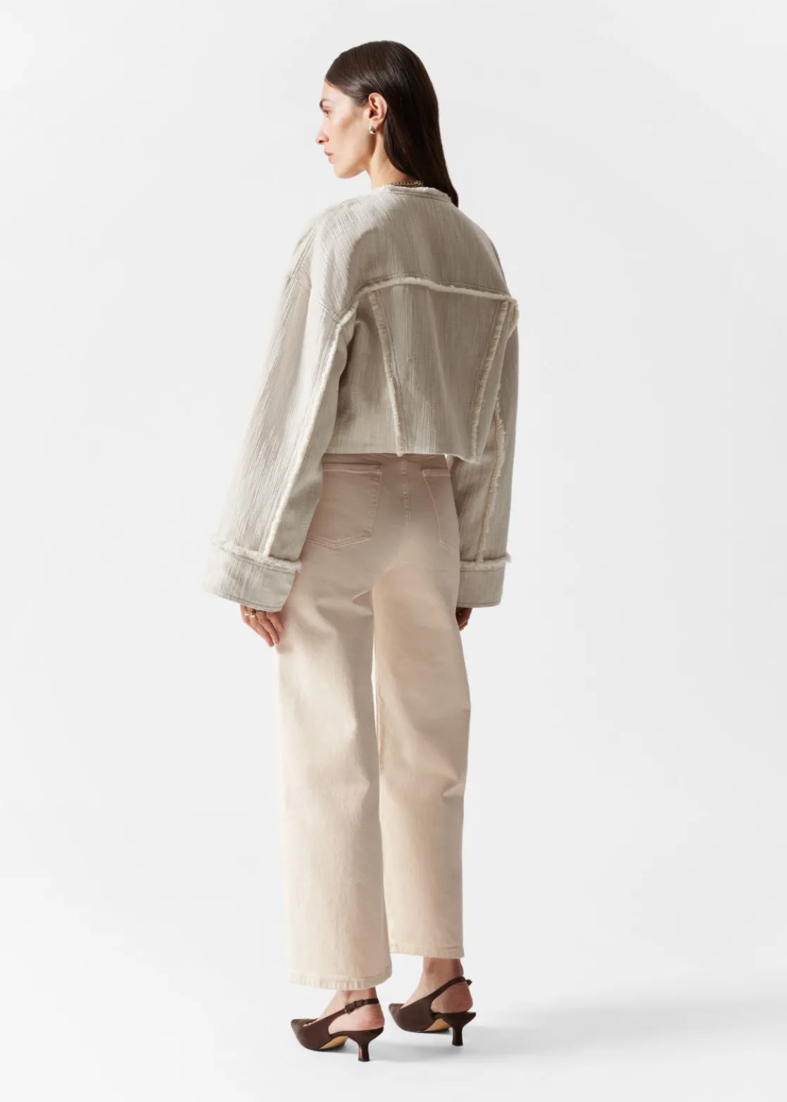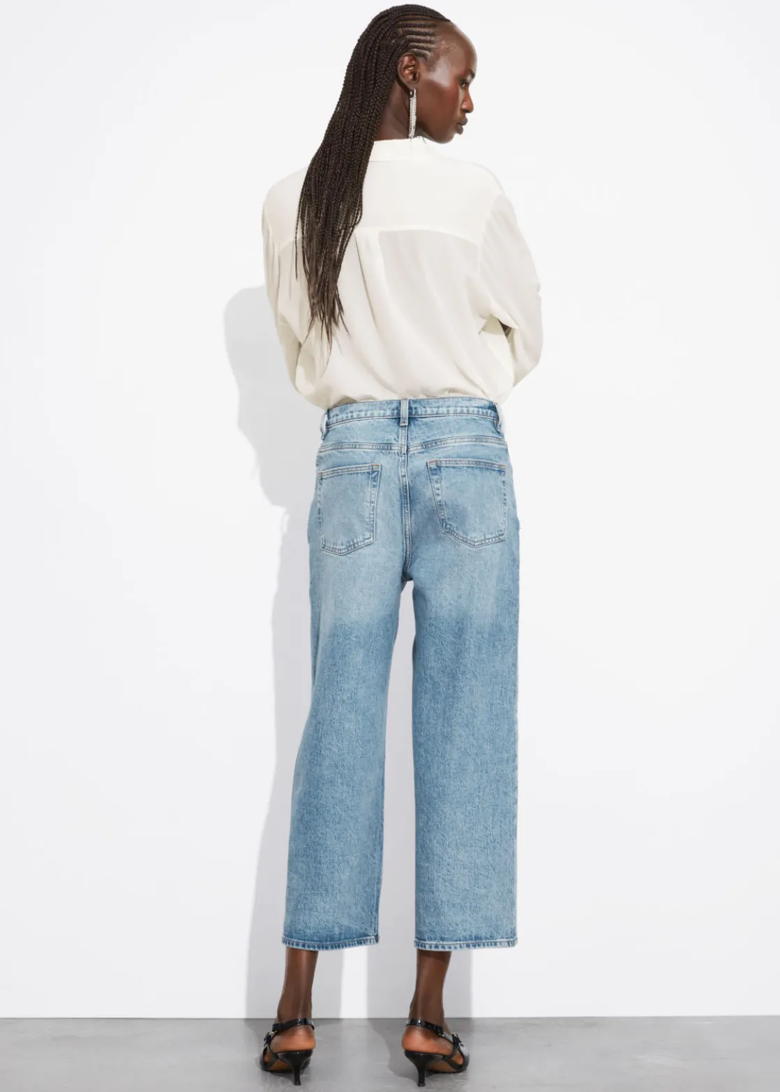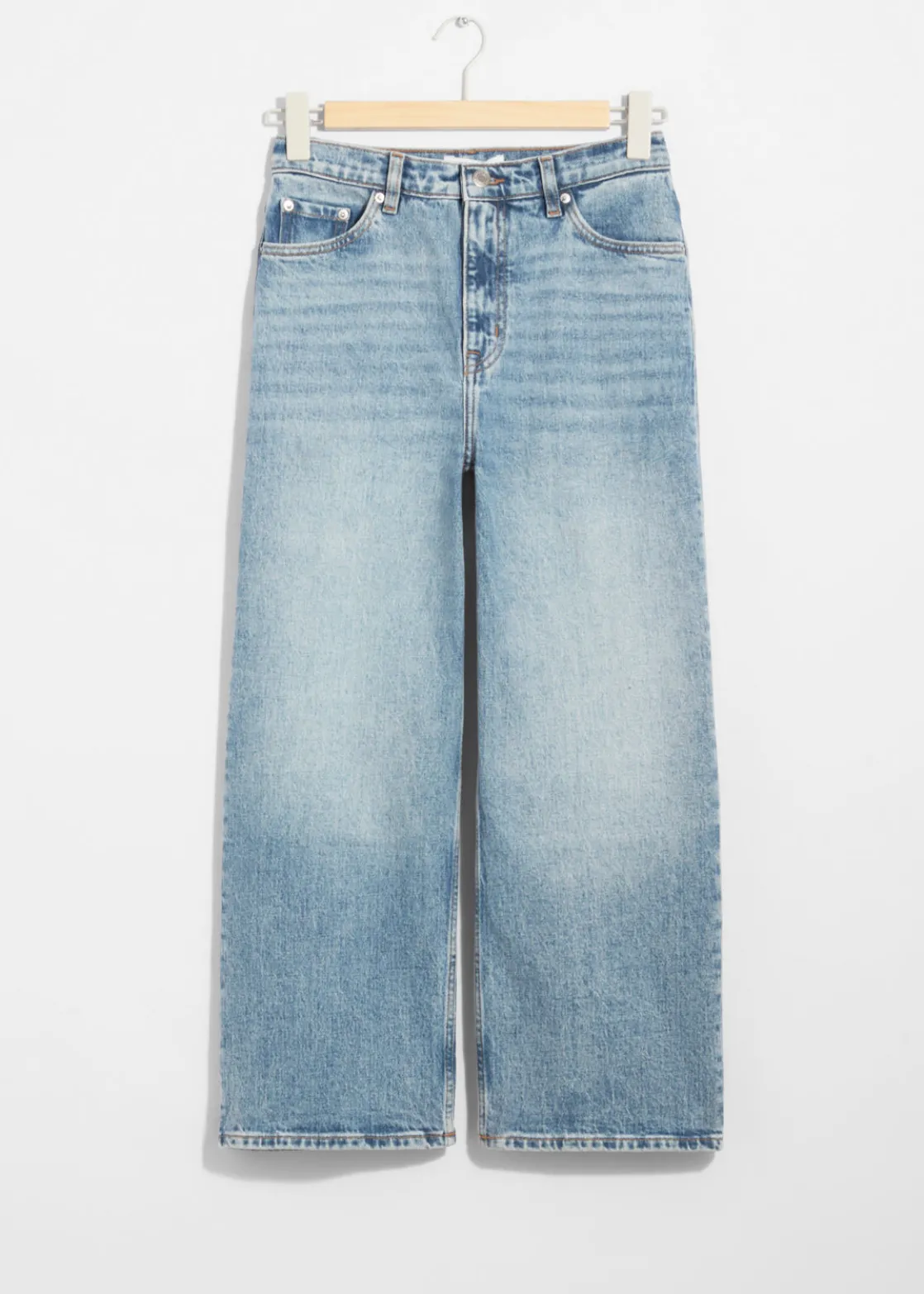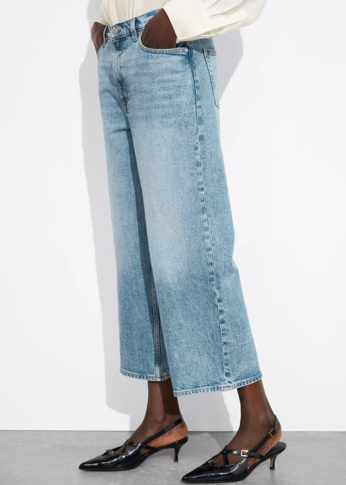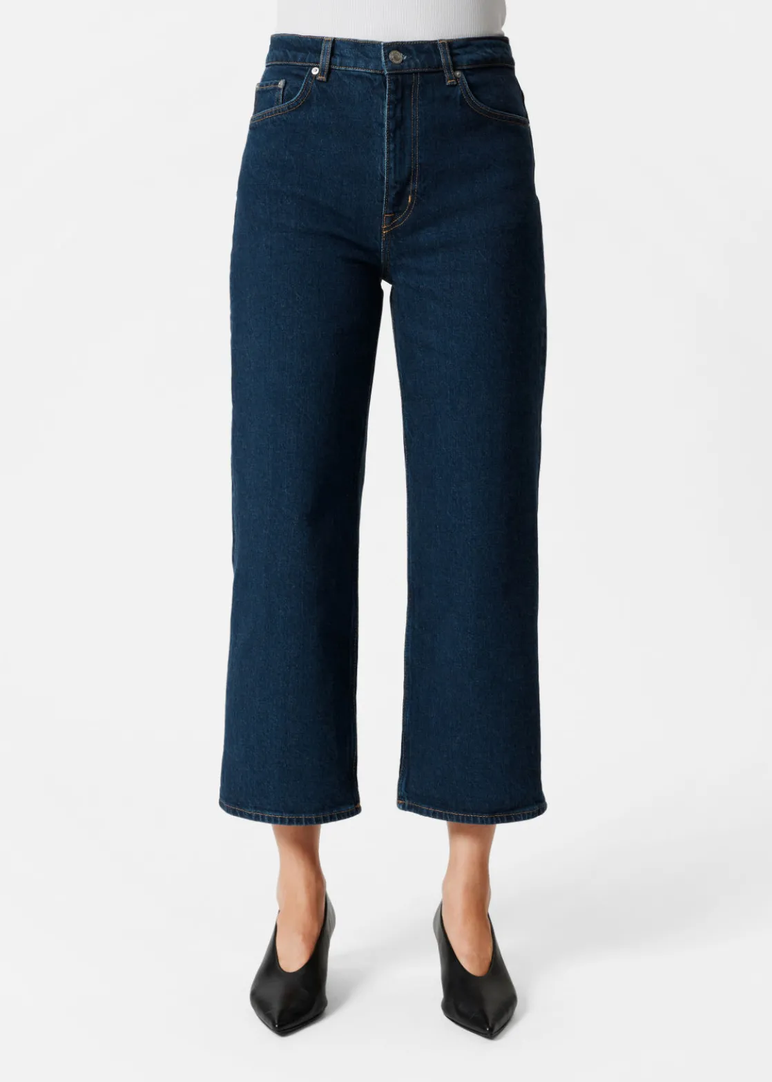A wardrobe saviour that goes great with any look and any mood, these 5-pocket jeans feature a high waist and a wide, cropped leg.