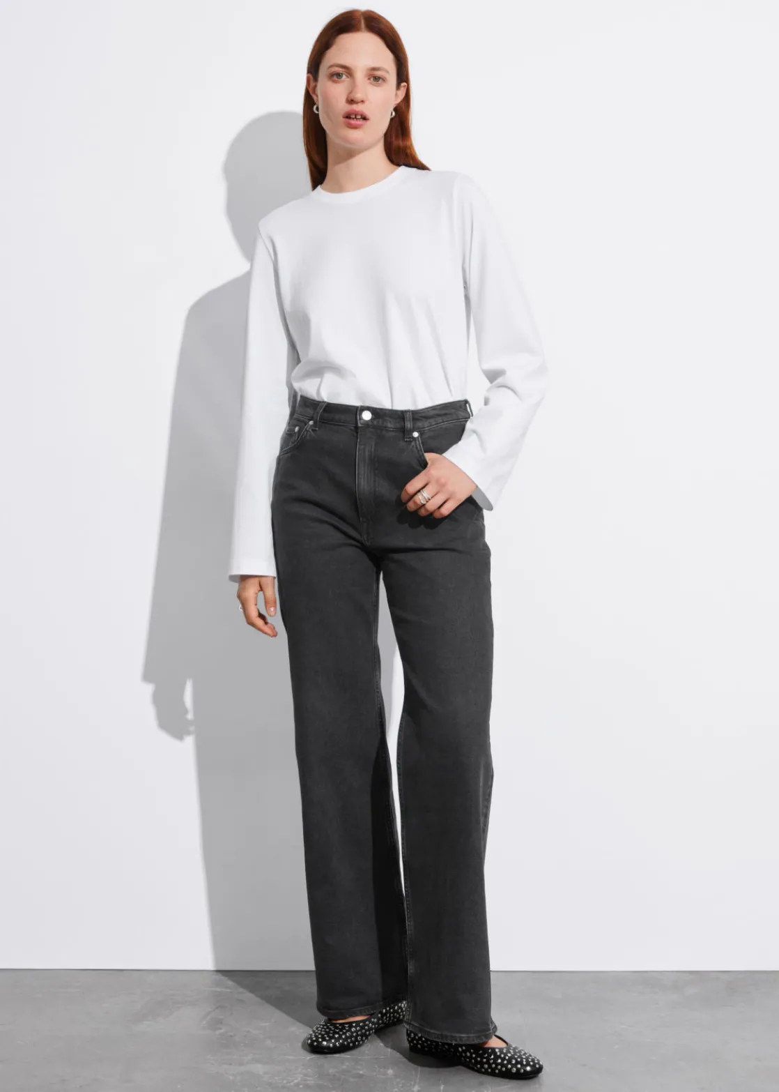 A wardrobe saviour that goes great with any look or mood, these 5-pocket jeans feature a high waist and a wide leg.